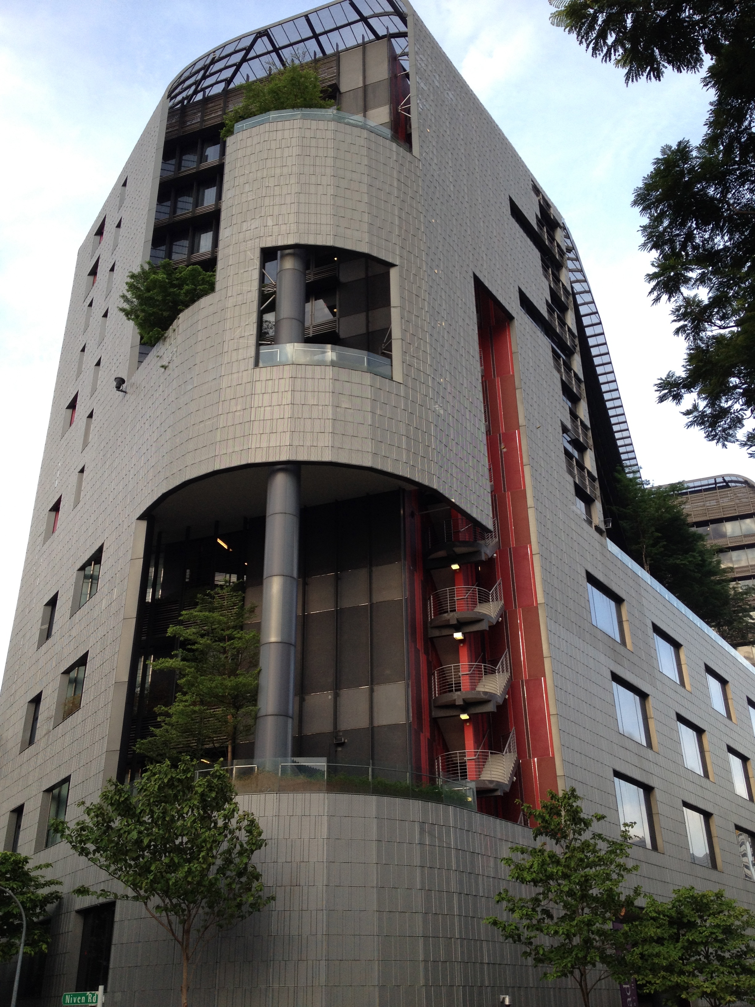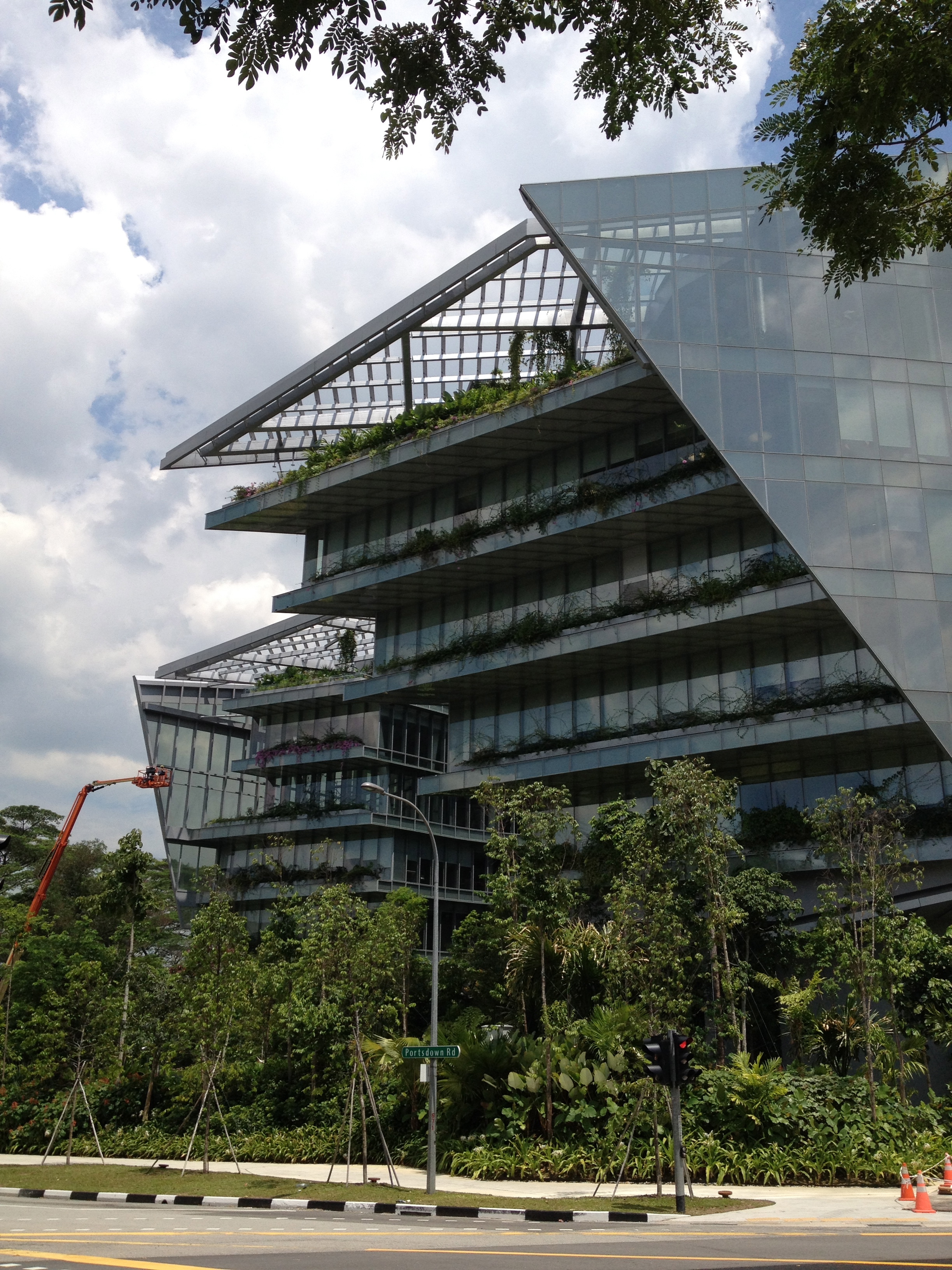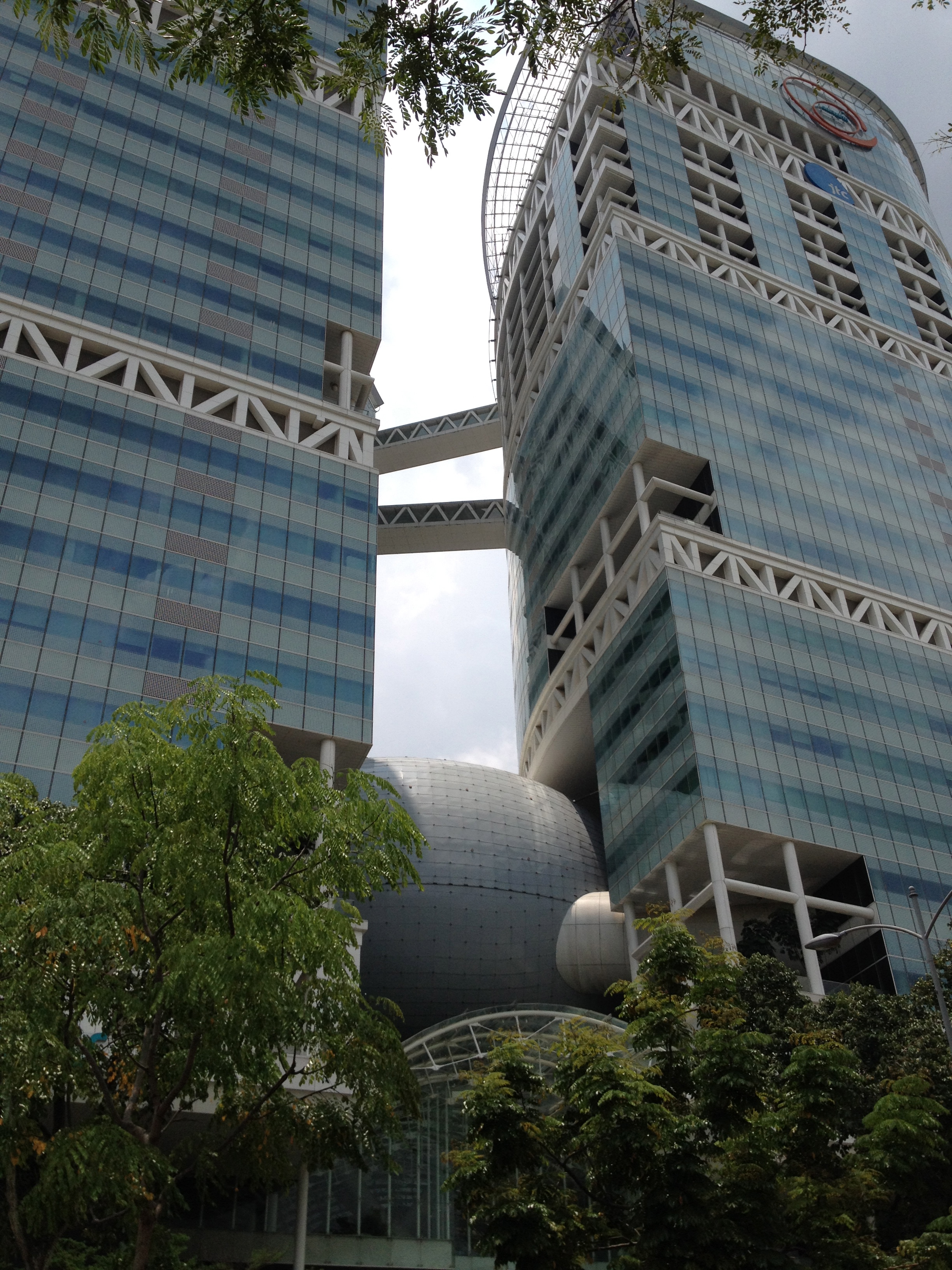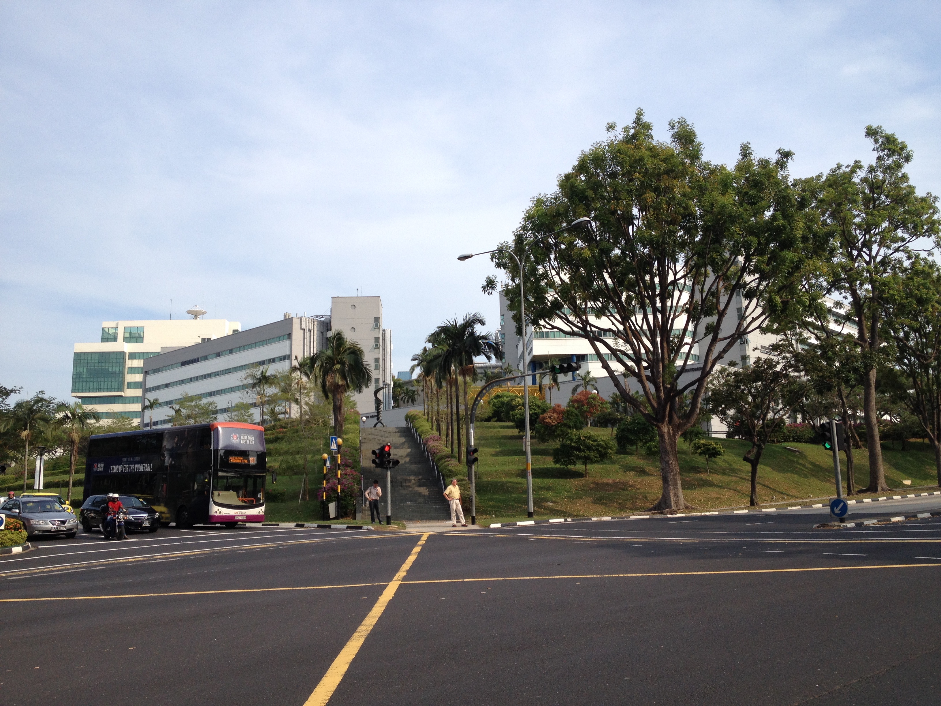Ma direction première est le quartier de One-North, que j’atteins presque les yeux fermés avec le bus 33. Les grues se dressent autour des bâtiments de l’Insead et de Fusionpolis, que je repère toujours de loin et que je trouve assez original. Il abrite des organismes de recherche et développement, des entreprises High Tech, des offices gouvernementaux, des commerces et des logements.