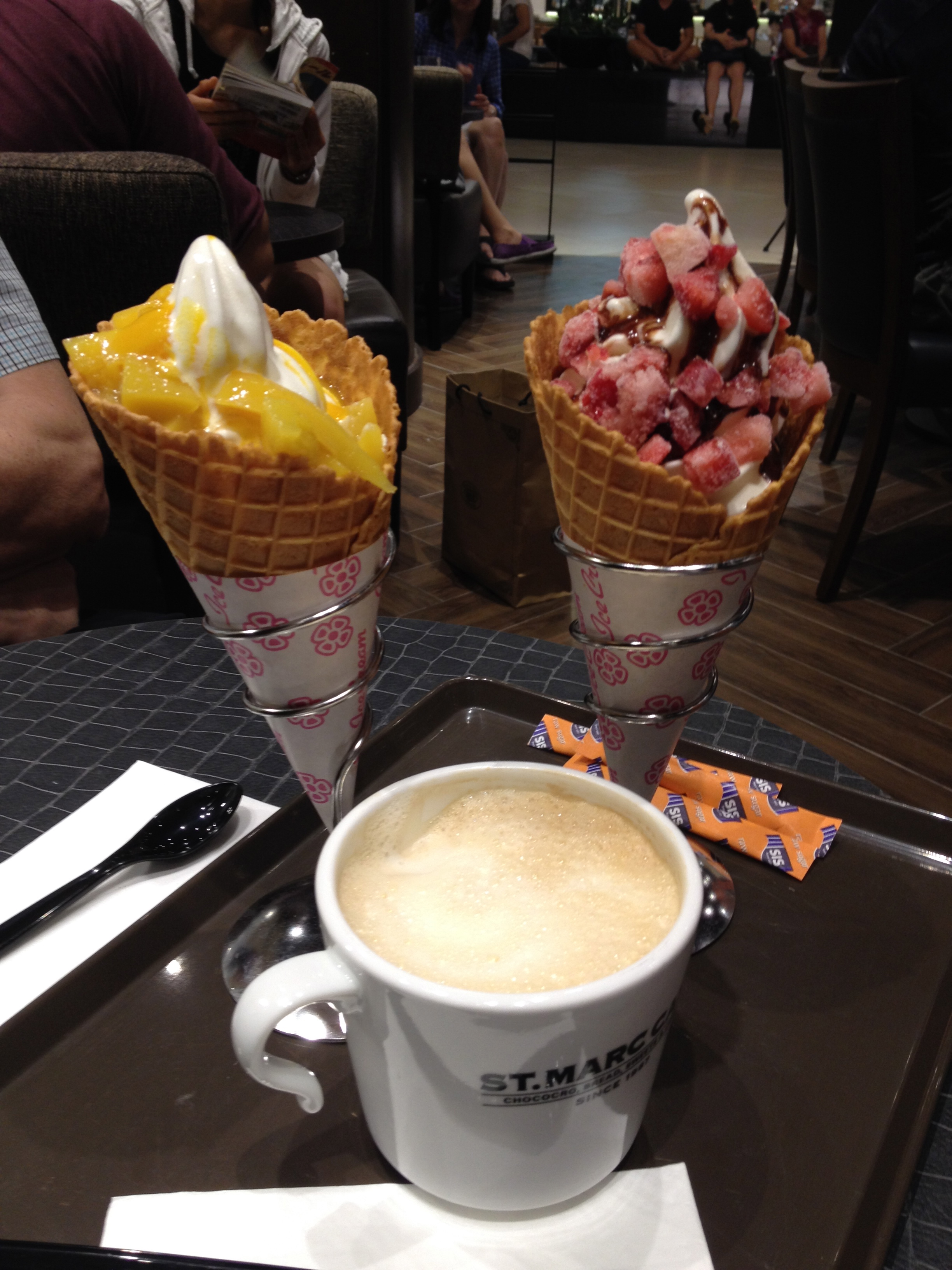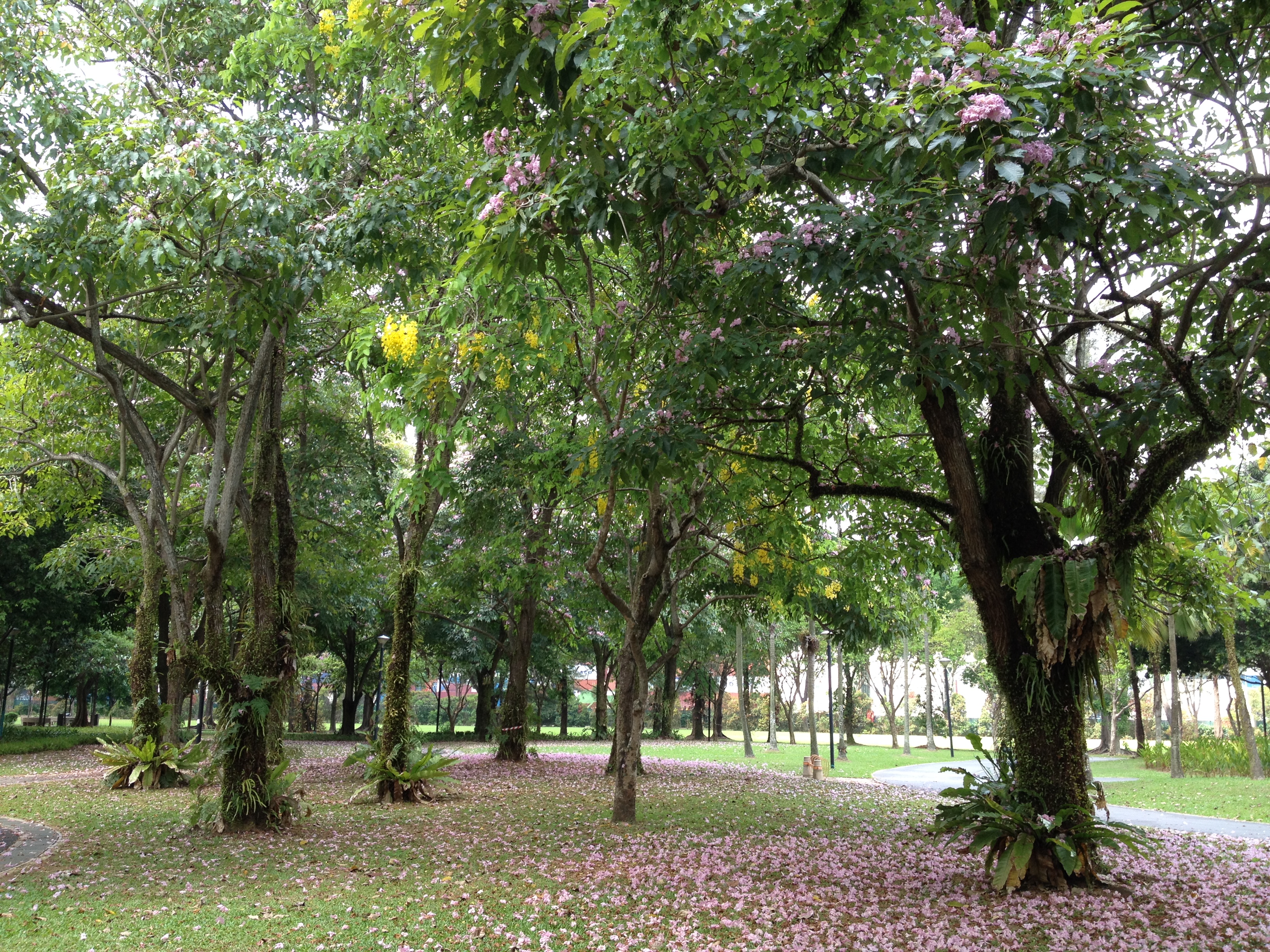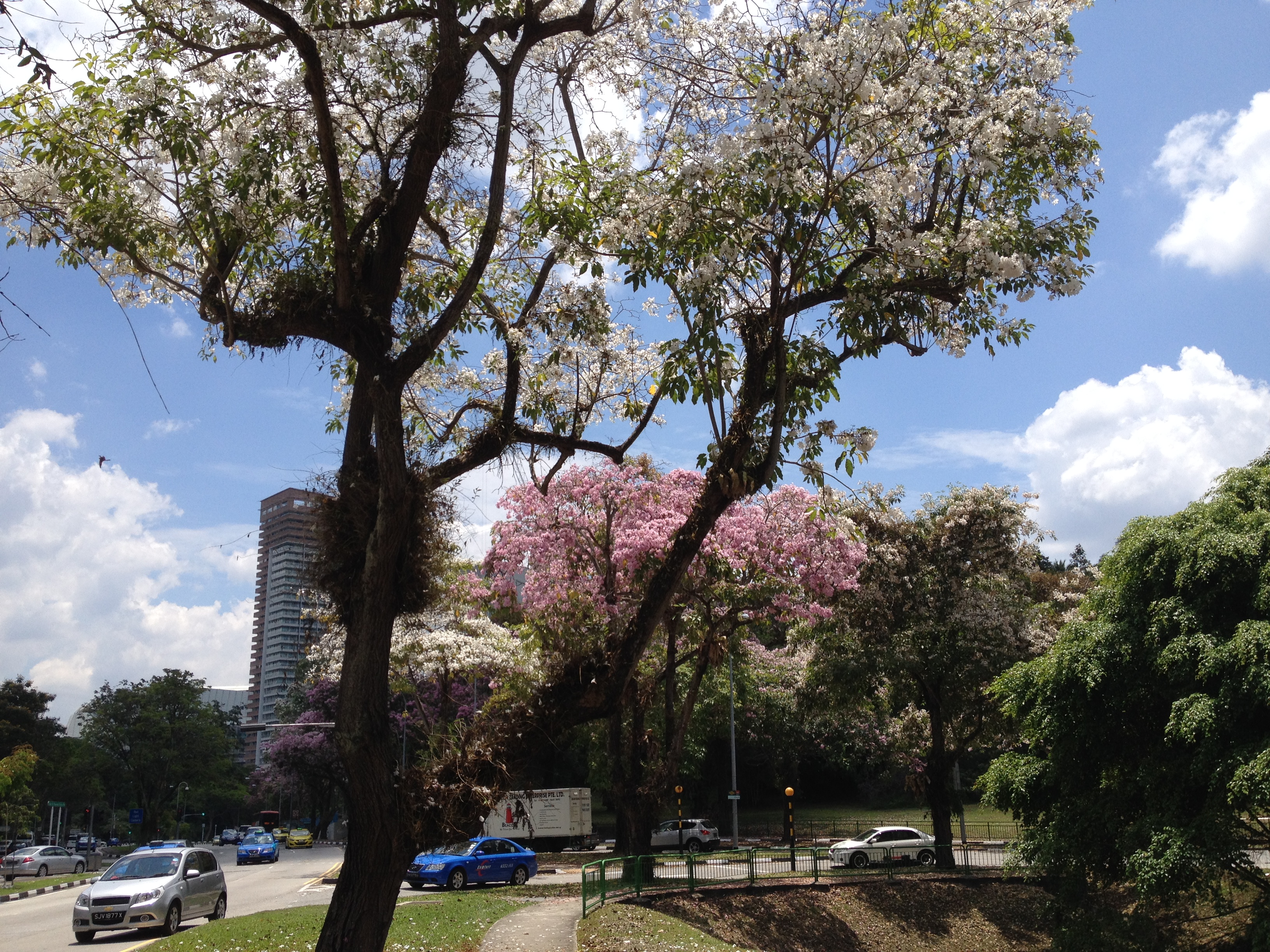 Les arbres sont beaux, tout fleuris même si les nombreuses pétales forment un tapis sur les trottoirs; cette verdure majestueuse sert aussi d’abri pour les travailleurs des chantiers qui font leur pause à même le sol. Cammy était mon esthéticienne préférée, elle s’est de suite souvenue de moi lorsque je lui ai envoyé un message. Elle est adorable cette jeune maman malaisienne, toujours souriante et positive. Elle ne veut pas croire qu’une année s’est écoulée depuis ma dernière séance et elle me refait de jolis ongles couleur chocolat. Sa crainte de gâcher le travail si je remets trop vite mes chaussures la mène à traverser la place et aller m’acheter au dépanneur des tongs à ma pointure et de couleur marron assortie.