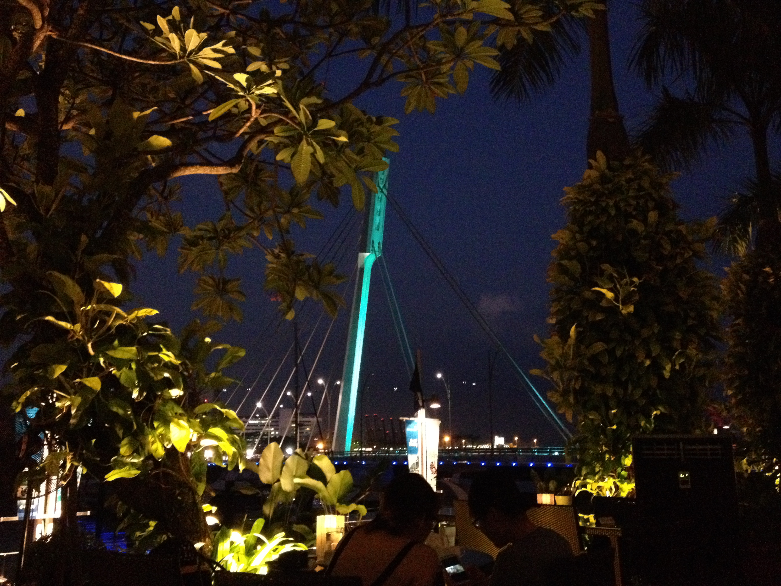 Je donne ensuite rendez-vous à Yves à la station de Harbour Front et je le guide, quasi les yeux fermés, vers ma découverte d’hier. Le quartier de Keppel illuminé le soir est encore plus magique et je ne me trompais pas : Yves adore, il se sent comme en vacances pour un souper en terrasse au bord de la Marina – les moules frites n’égalant toutefois pas celles de Chez Léon!