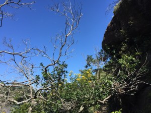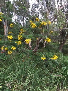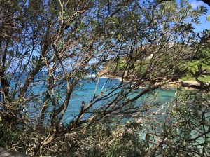 En insistant un peu, j’entraîne alors Yves dans une marche vers les falaises et l’éperon rocheux qui constitue le point d’entrée sud de la baie de Sydney. Une balade comme celles que j’ai déjà faites, assez vallonnée et dans un milieu naturel boisé, fleuri, un peu sauvage – le phare est décevant par sa taille mais reste un élément qui laisse place aux rêves …