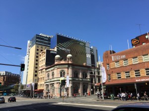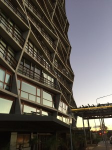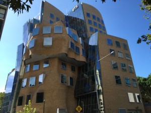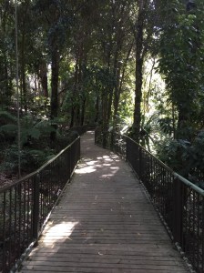 Nous sommes logés dans l’Hotel Hotel (eh non je ne me répète pas, c’est bien son nom), un établissement logé dans un building récent, aux technologies minergies, au design exceptionnel. Et ma première visite sera pour le Jardin Botanique, situé au bas de la ‘Black Mountain’. Je m’y balade avec grand plaisir même si Isabelle, au départ, à la vue des panneaux annonçant la possibilité voir des serpents, sent son adrénaline monter monter – quand il faut y aller, il faut y aller ! Et c’est parti en commençant justement par la ‘Rain Forest’ qui ne peut que me rappeler des épisodes stressants à Singapour – une végétation très dense, très sombre, des bruits étranges, un canopy en bois … et je presse le pas. Mon cœur se ralentit vers la prairie d’eucalyptus, leur parfum est fantastique, tout comme celui des mimosas sauvages. Nombreuses sont aussi les variétés de pins et d’acacias ; une zone dite ‘rouge’ présente l’aspect de la nature au centre du pays – les couleurs sont magiques. Et je ne croiserai aucun serpent, je ne verrai aucune araignée mais juste plusieurs lézards bizarres, appelés démons du bush.