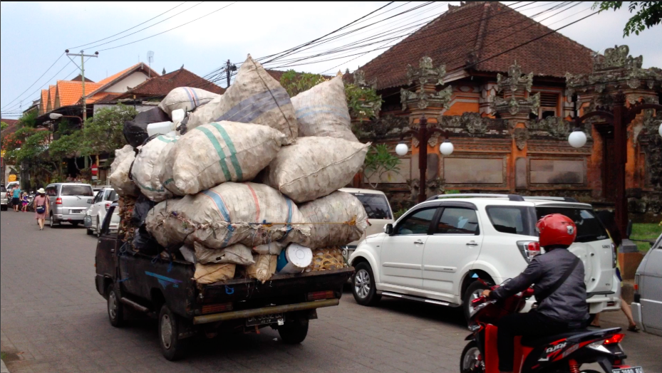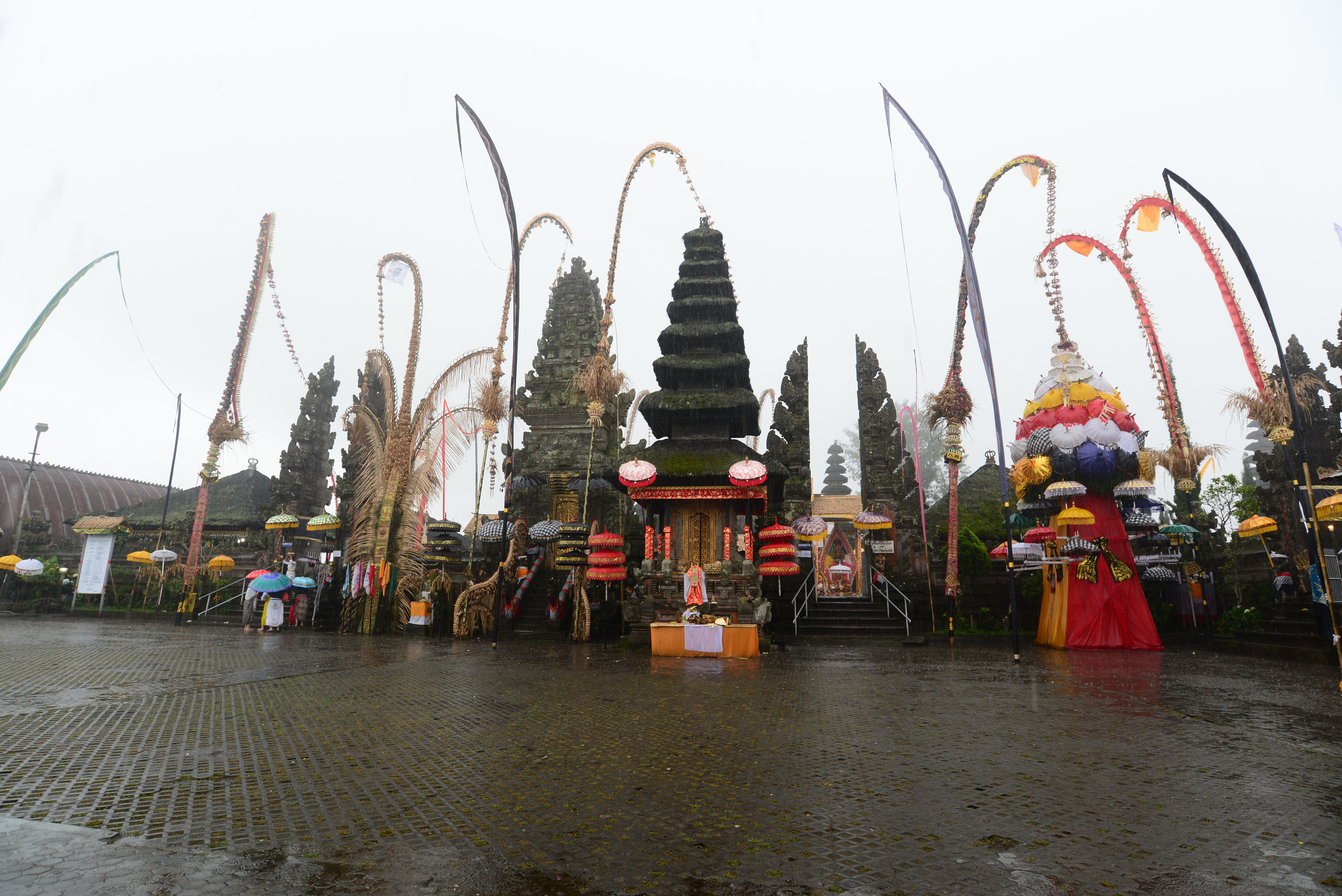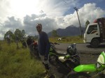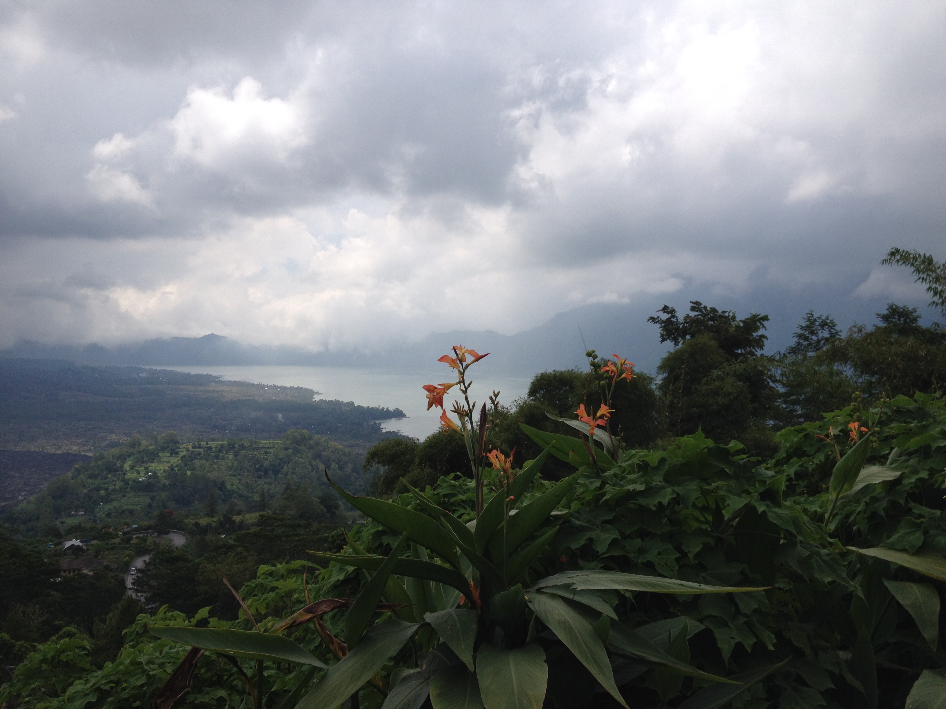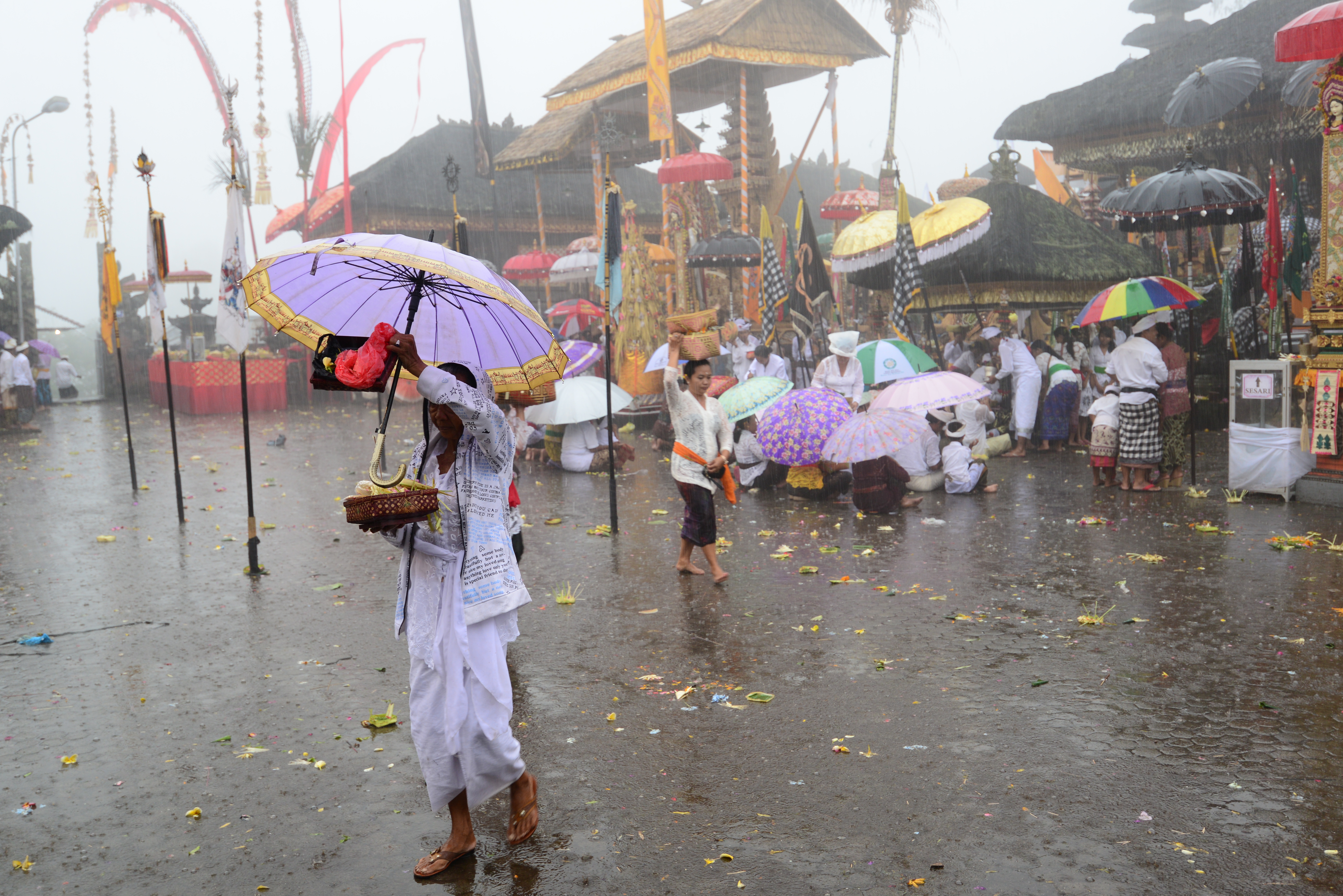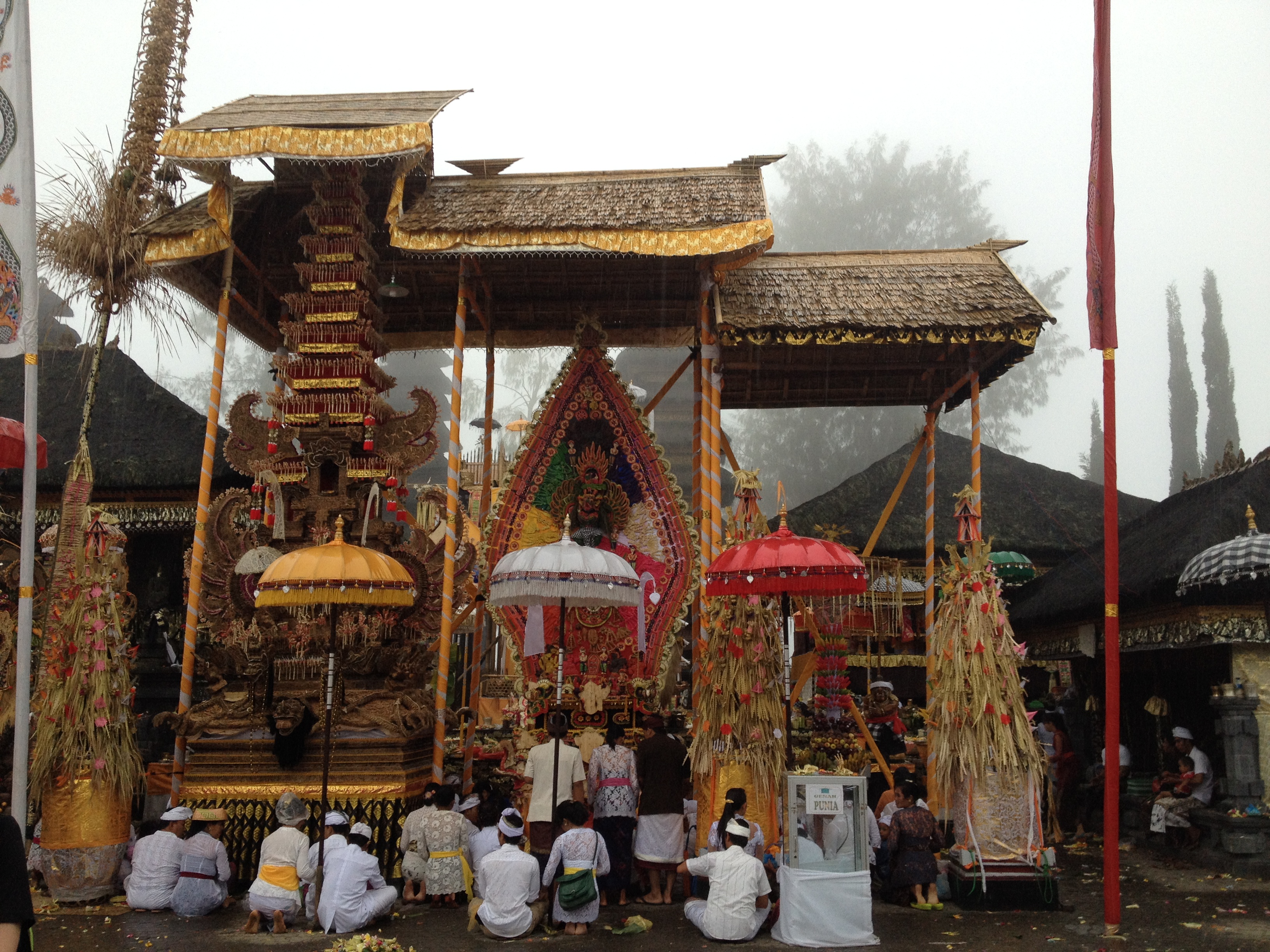 Piscine relax et photos avant l’arrivée de Made occupé ce matin avec une cérémonie – il y en a tout le temps sur l’île. Il nous emmène tous dans sa voiture ; la conduite est sportive, demande habilité et concentration pour avancer tout en évitant les scooters bien plus nombreux que les voitures ici dans la campagne d’Ubud, les vélomoteurs aux chargements plus énormes qu’eux dans tous les sens, les poules ou les chiens qui traversent ou se couchent sur la route, les tas de terre noire déposés sur le tarmac pour les travaux de rénovation ou finition sans fin. Les axes qui sur mes plans semblaient rectilignes sont en réalité bien plus courbes et les panneaux indicateurs ne pullulent pas. La topologie de l’île est particulière avec des directions nord-sud selon les vallées coulant des volcans mais peu de trajectoires pour passer d’est en ouest. Nous faisons totale confiance à Made qui s’avèrera être un conducteur posé et prudent – cette conduite épique, à gauche, ne me fait nullement regretter le choix de ne pas avoir loué de véhicule; c’est déjà un peu stressant parfois ainsi.