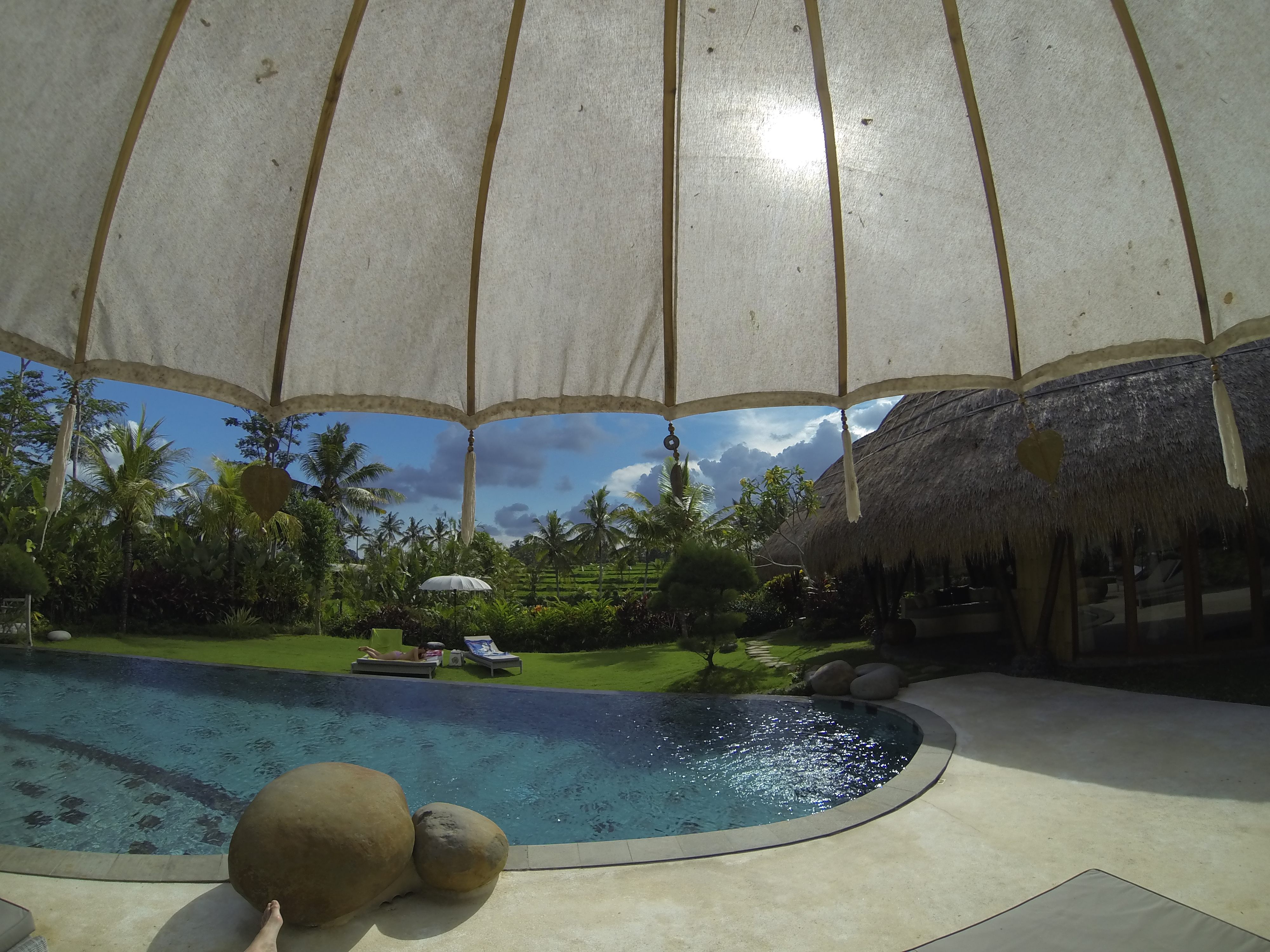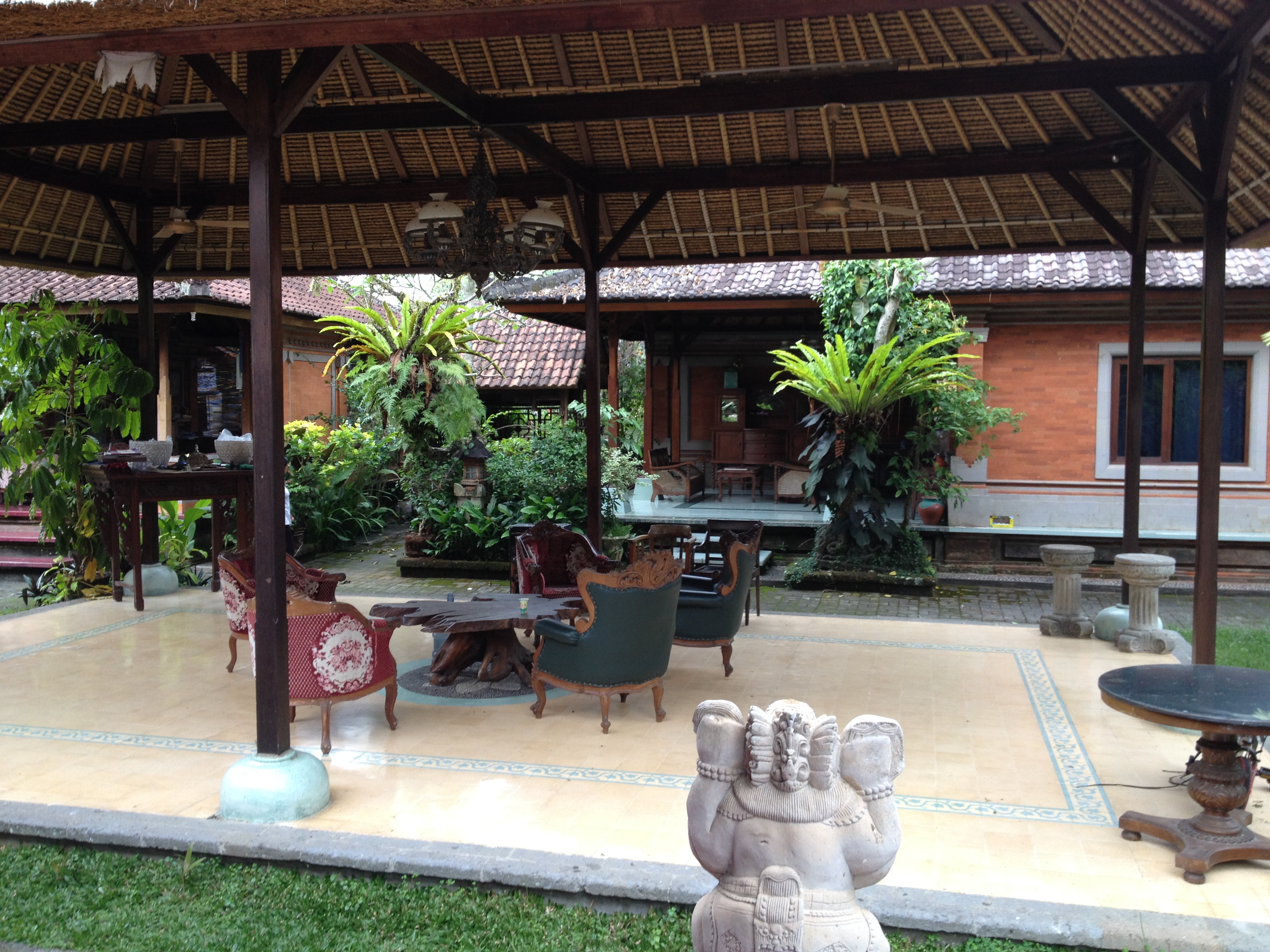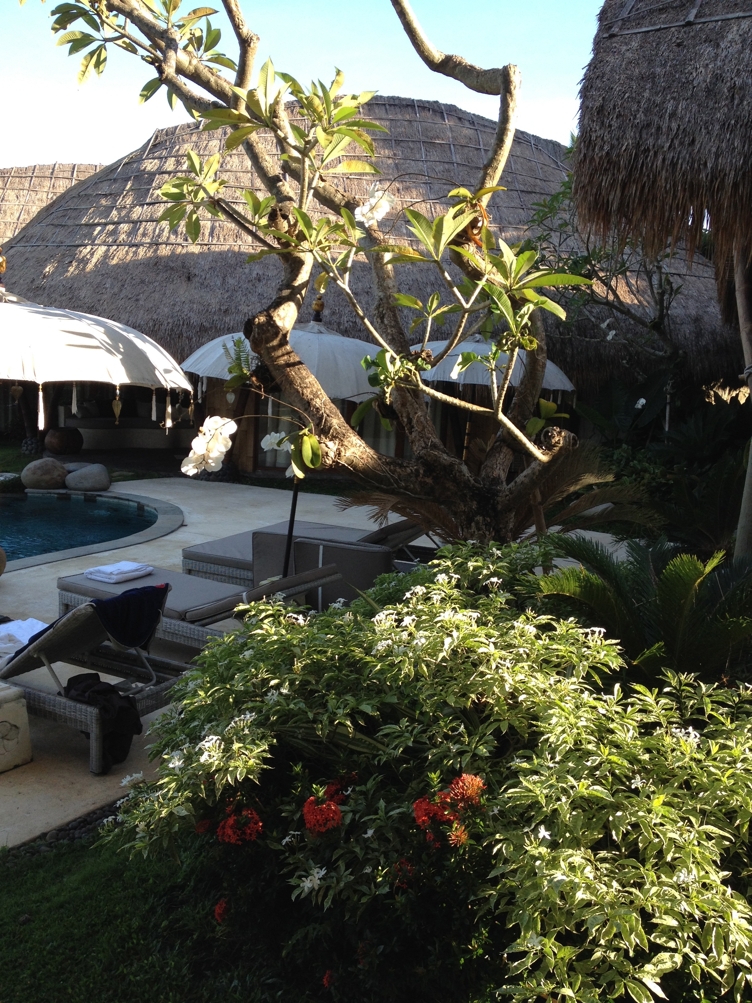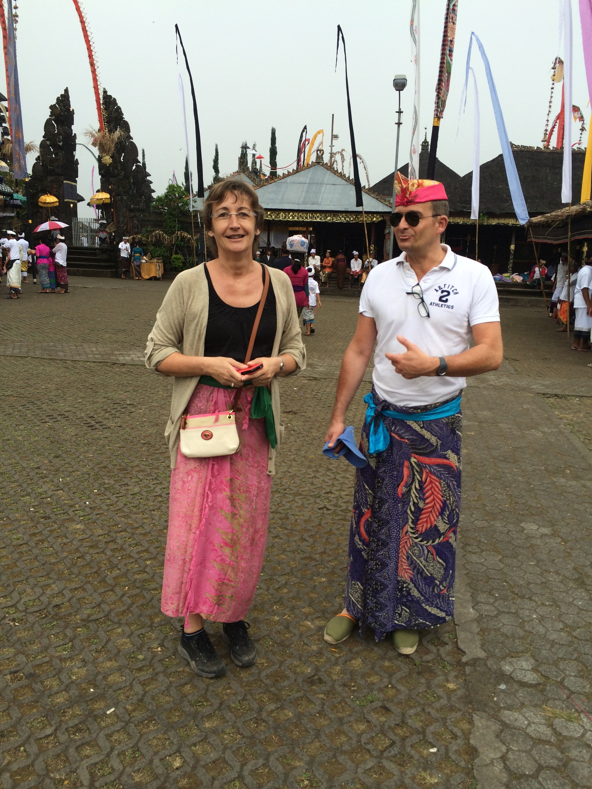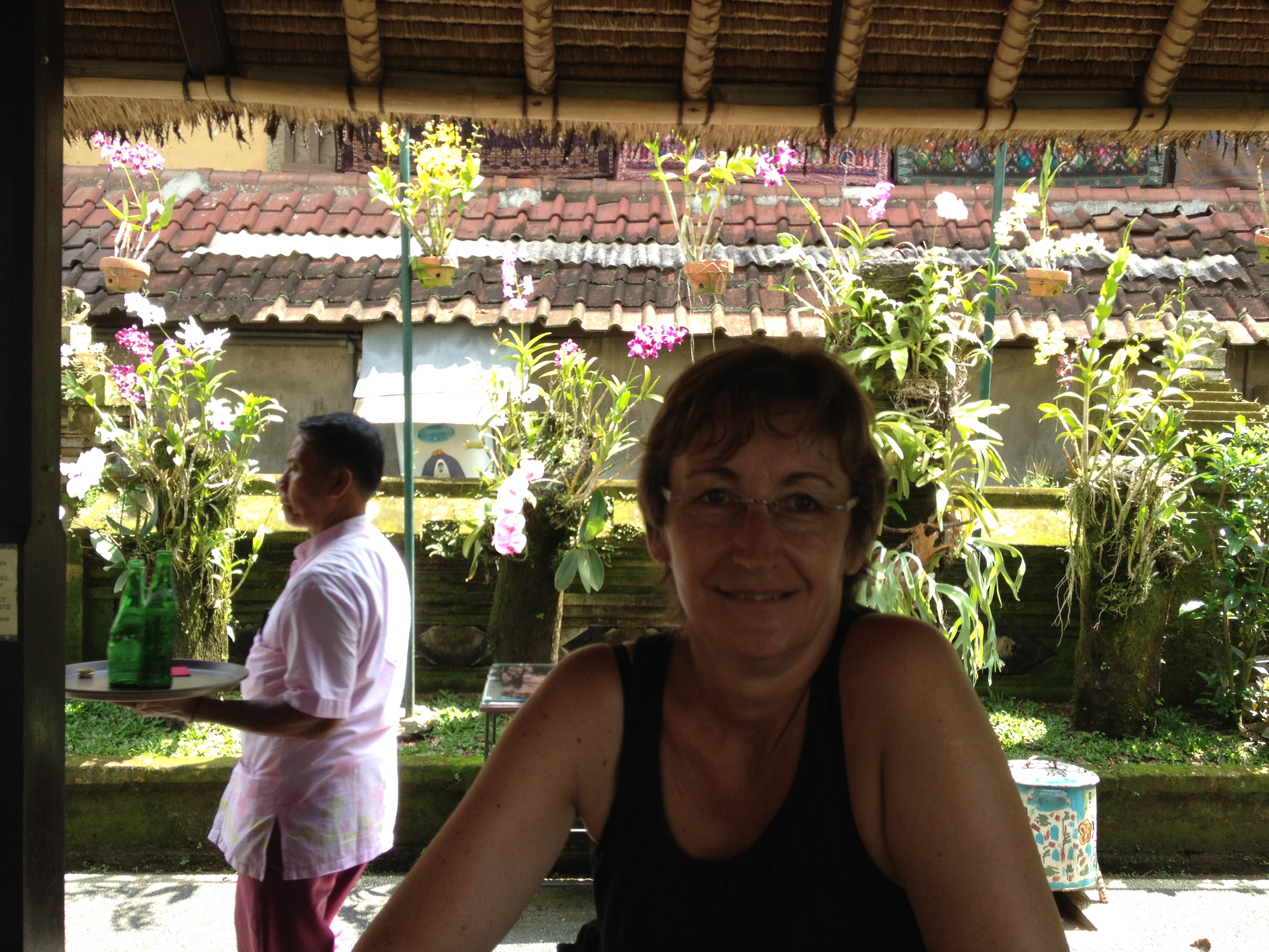 Eka et Ayu nous attendent à la villa avec un petit-déjeuner bienvenu et au fil des jours, elles connaîtront nos préférences à chacun et seront tellement prévenantes – ainsi Mathieu aura le plaisir de boire un thé au réveil toute la semaine. Nous apprenons qu’ici à Bali, il y a cinq prénoms uniquement, les mêmes pour les garçons et les filles et qui tournent dans un certain ordre – Made est toujours le prénom du premier enfant, puis Gusti, etc et au sixième bébé, on recommence avec Made. Cela nous surprend ; heureusement ils ont un deuxième prénom.