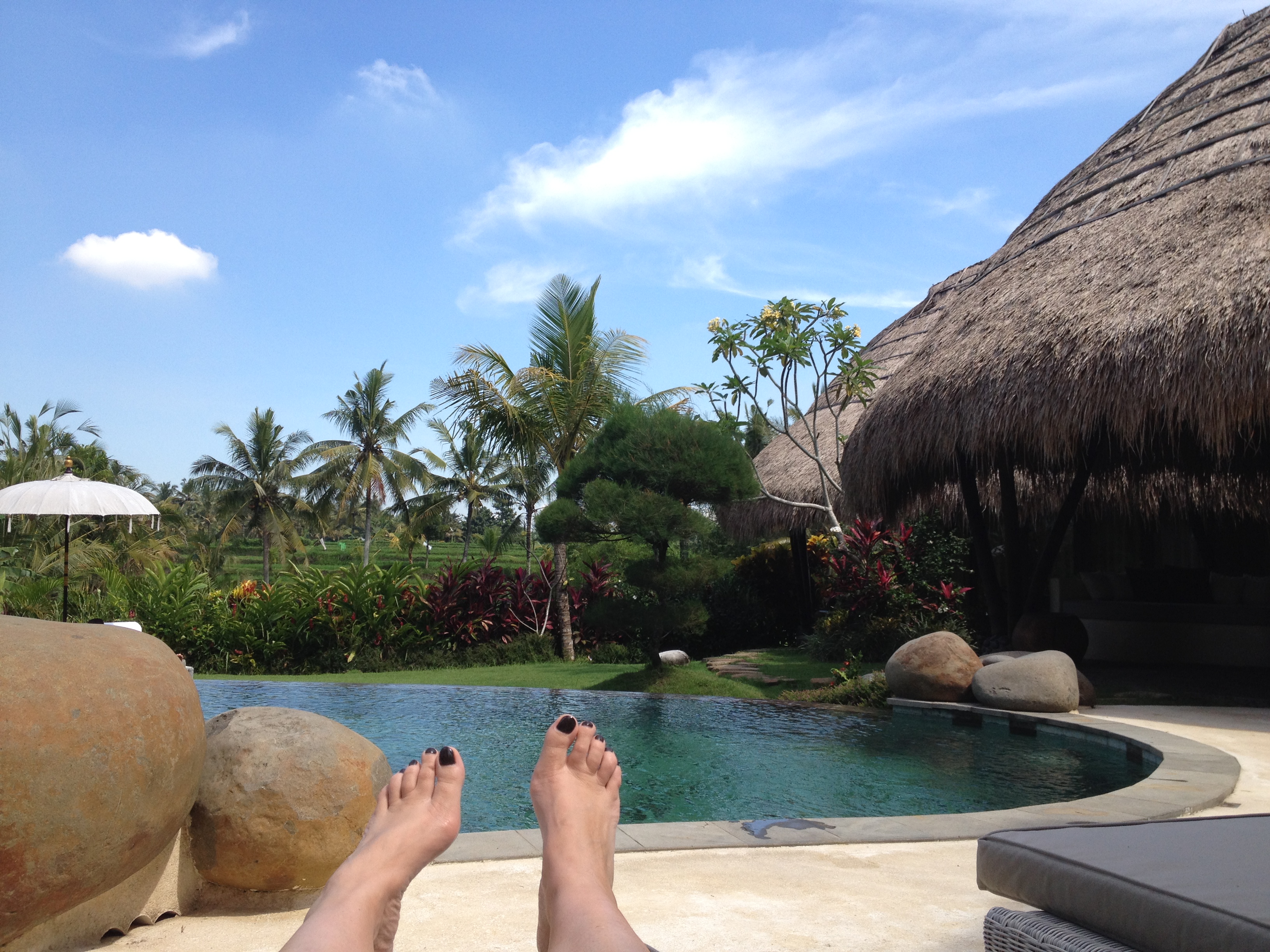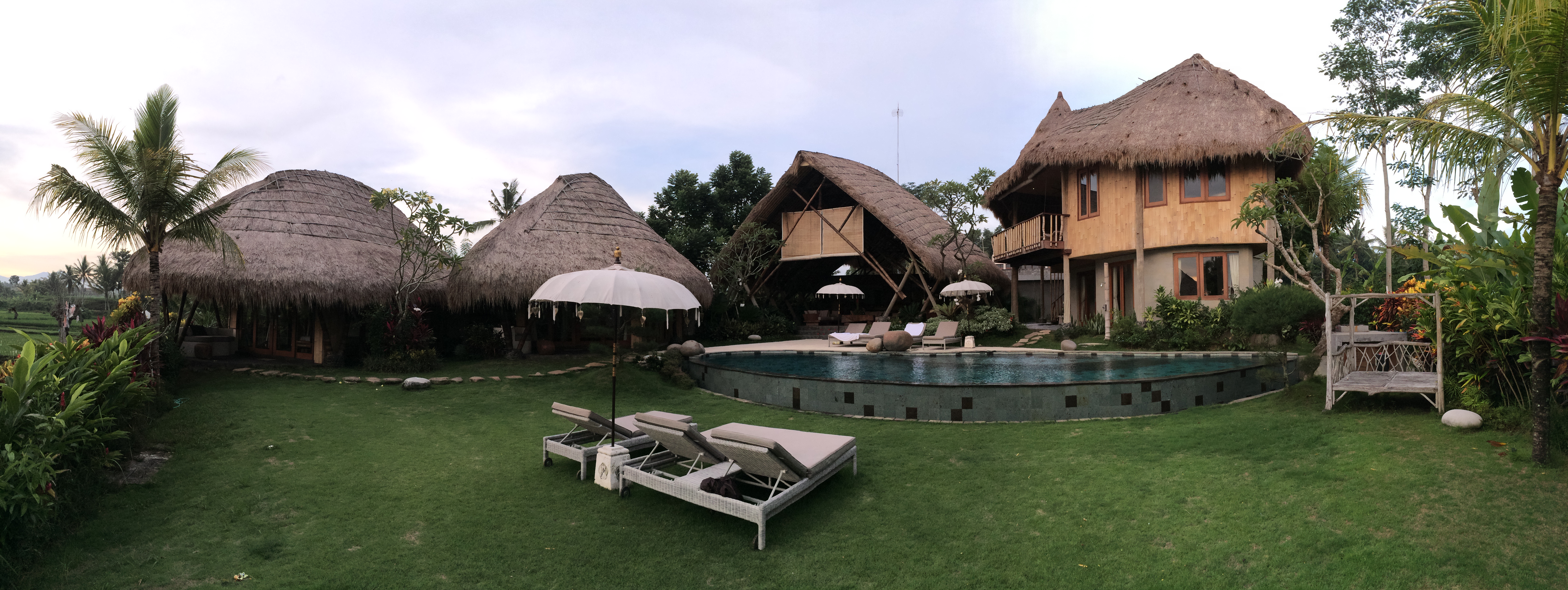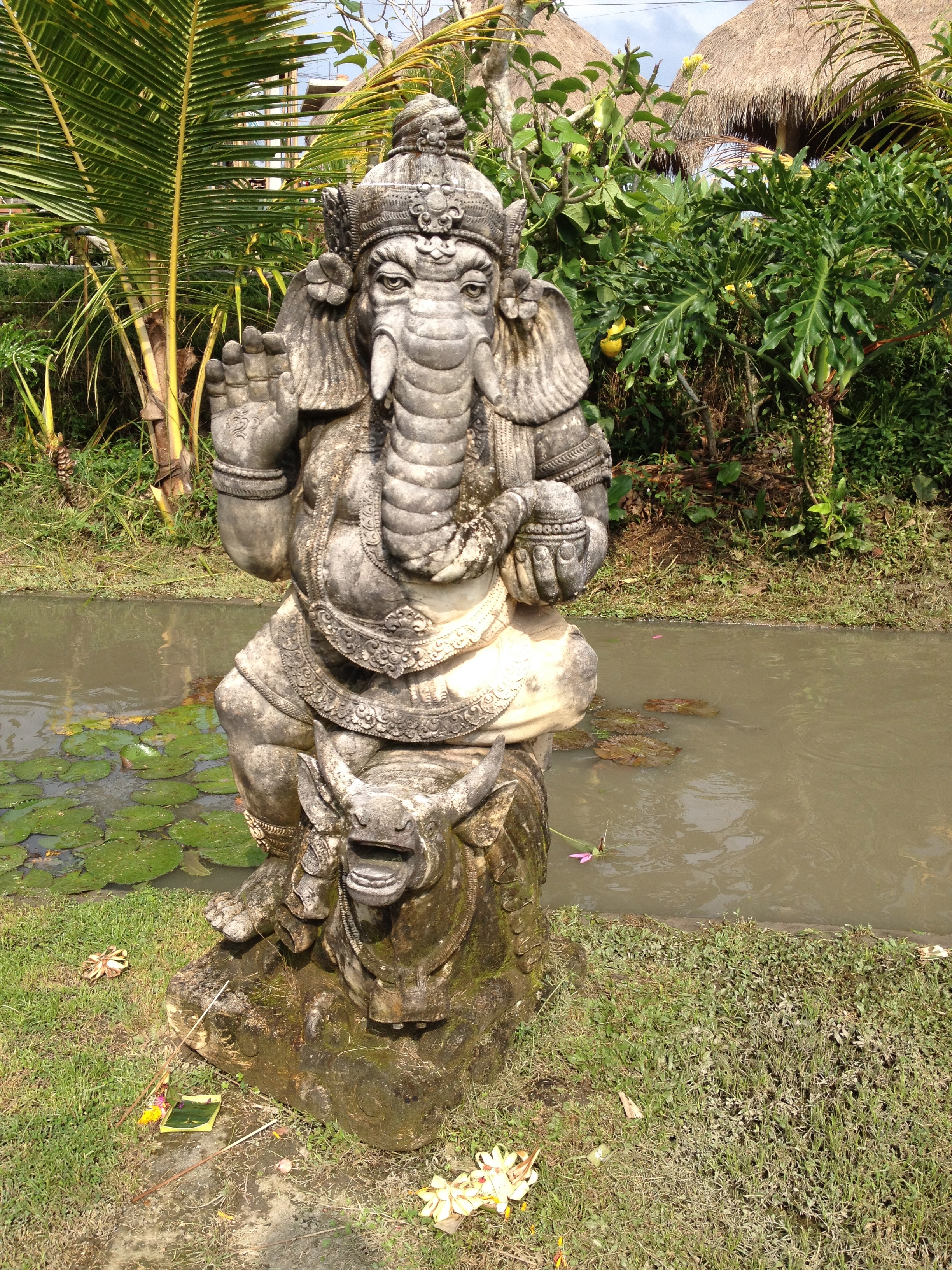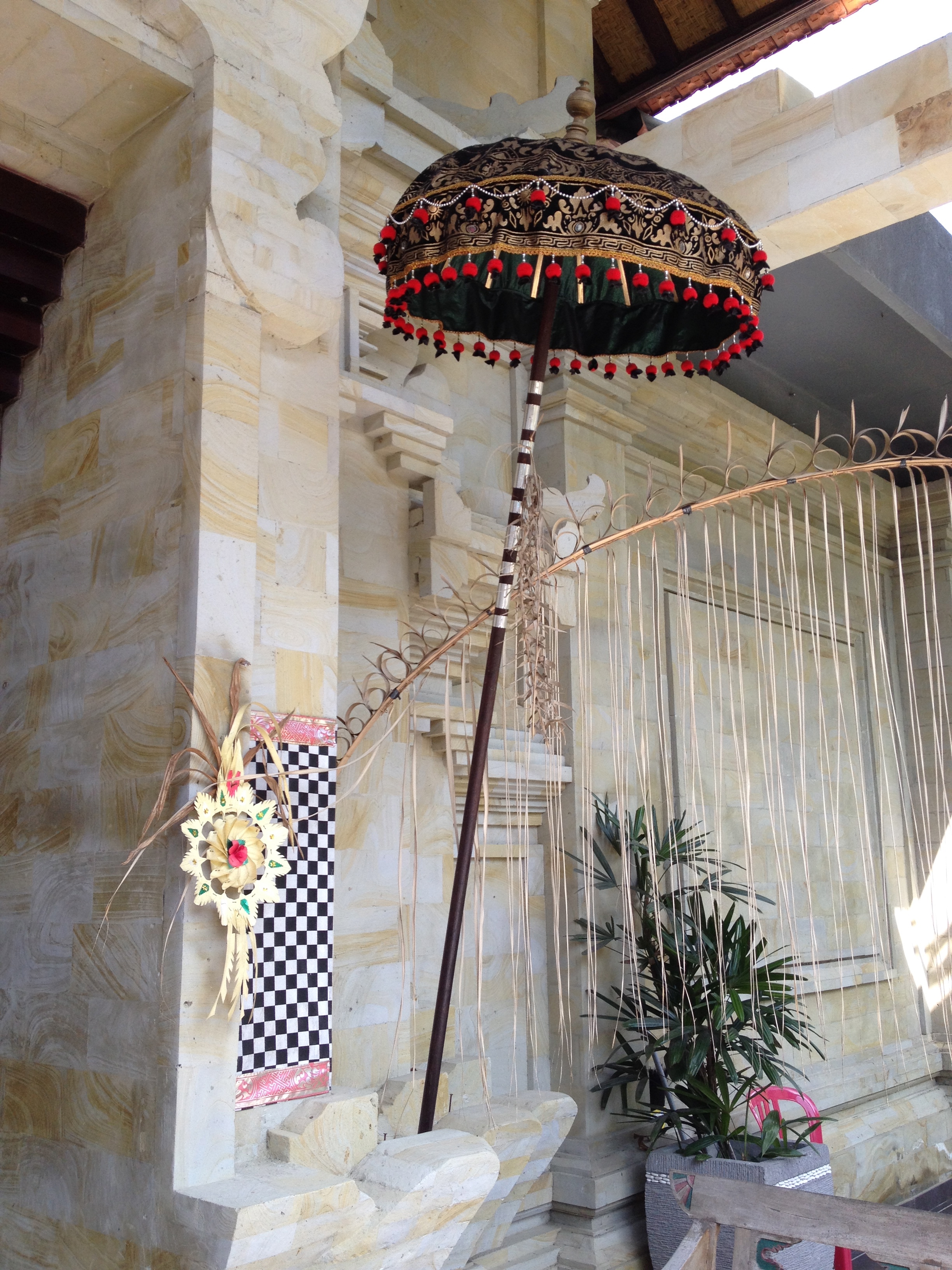 Eka et Ayu nous attendent à la villa avec un petit-déjeuner bienvenu et au fil des jours, elles connaîtront nos préférences à chacun et seront tellement prévenantes – ainsi Mathieu aura le plaisir de boire un thé au réveil toute la semaine. Nous apprenons qu’ici à Bali, il y a cinq prénoms uniquement, les mêmes pour les garçons et les filles et qui tournent dans un certain ordre – Made est toujours le prénom du premier enfant, puis Gusti, etc et au sixième bébé, on recommence avec Made. Cela nous surprend ; heureusement ils ont un deuxième prénom.