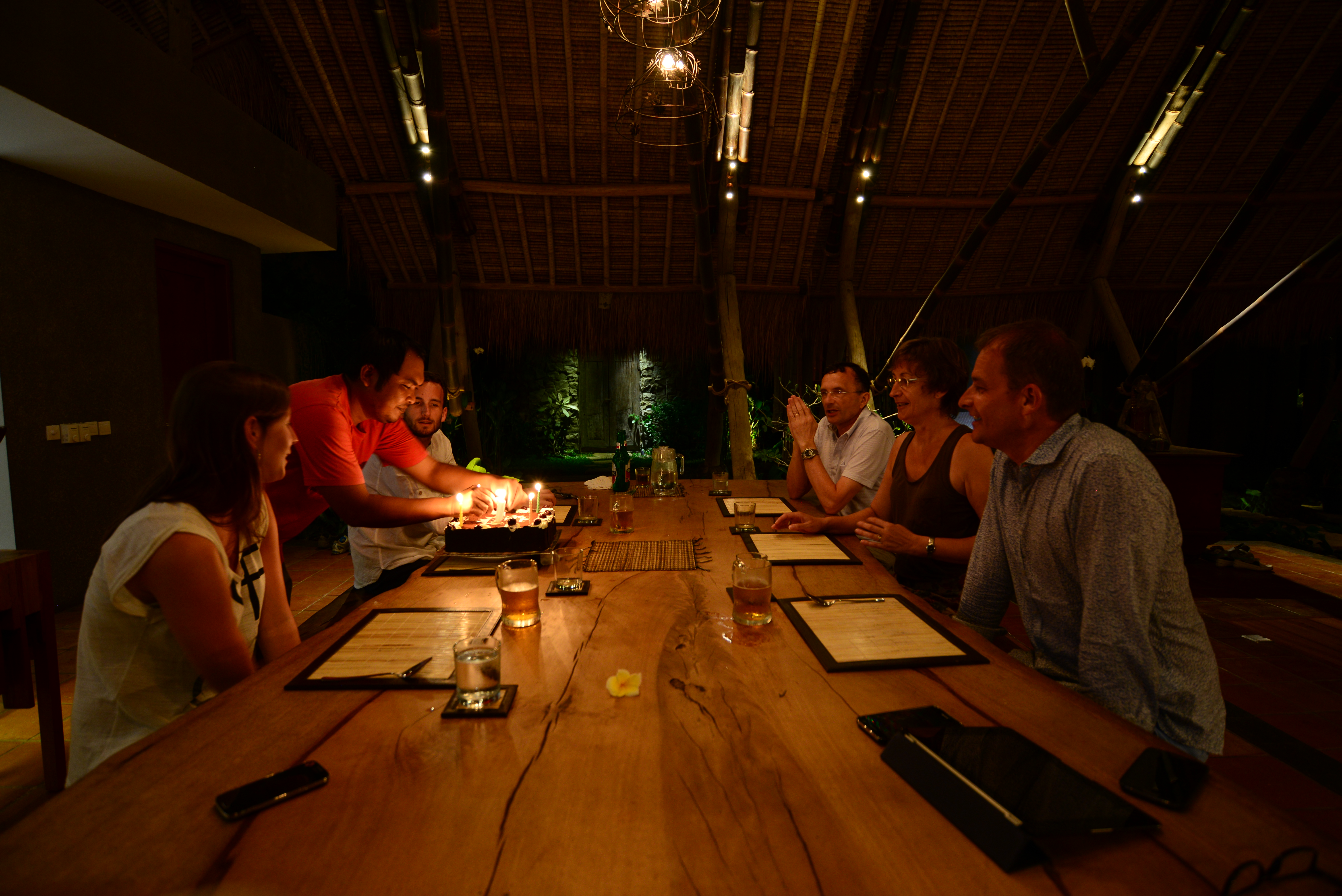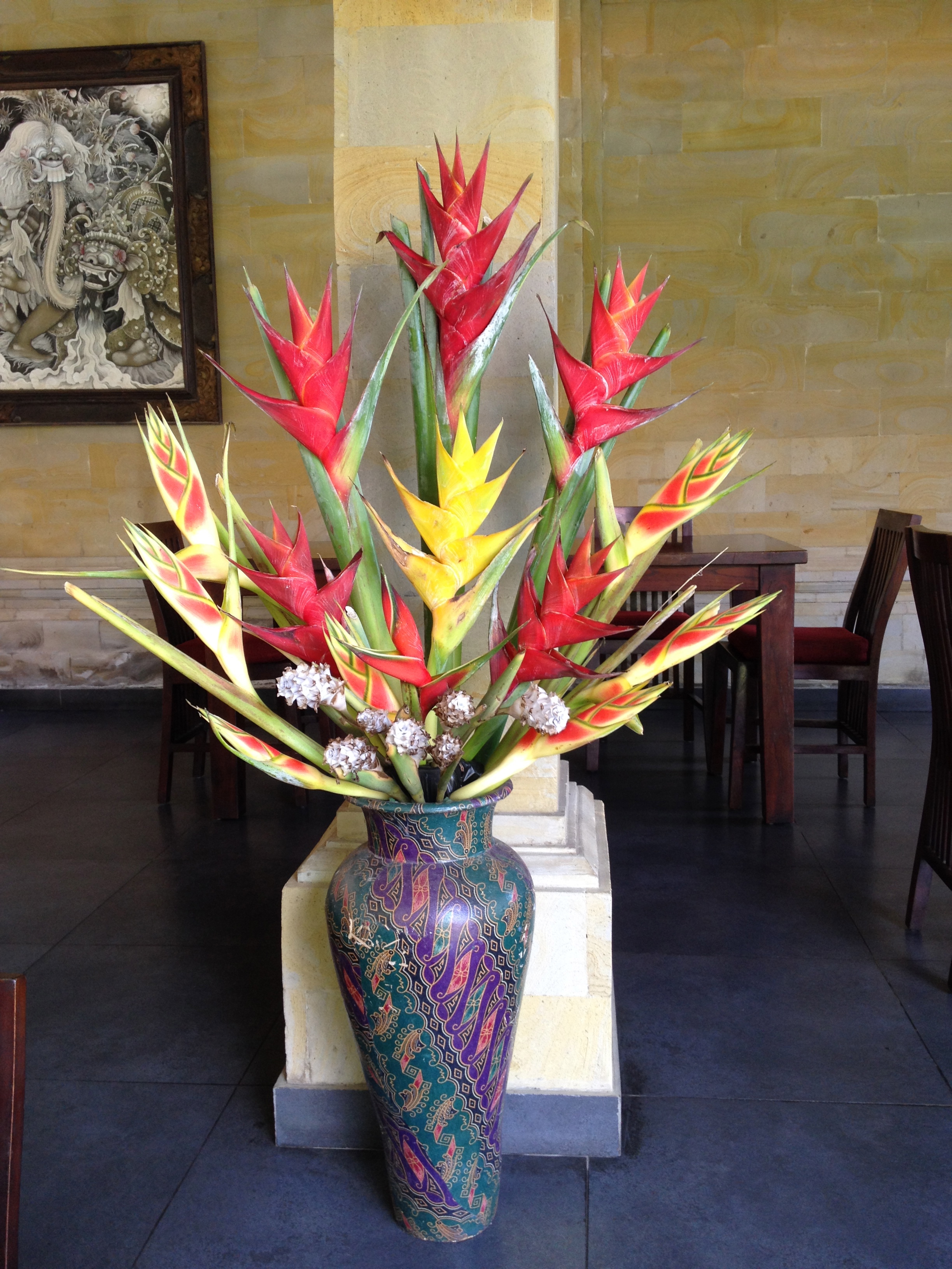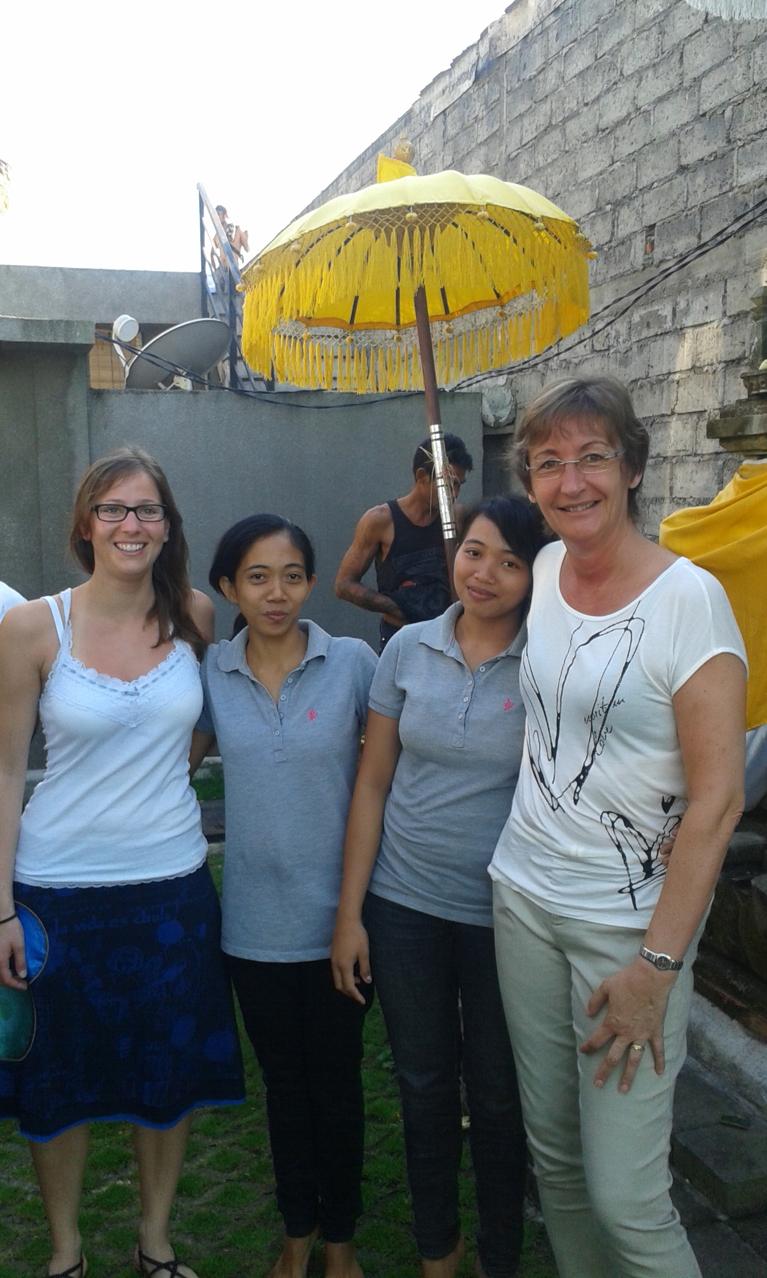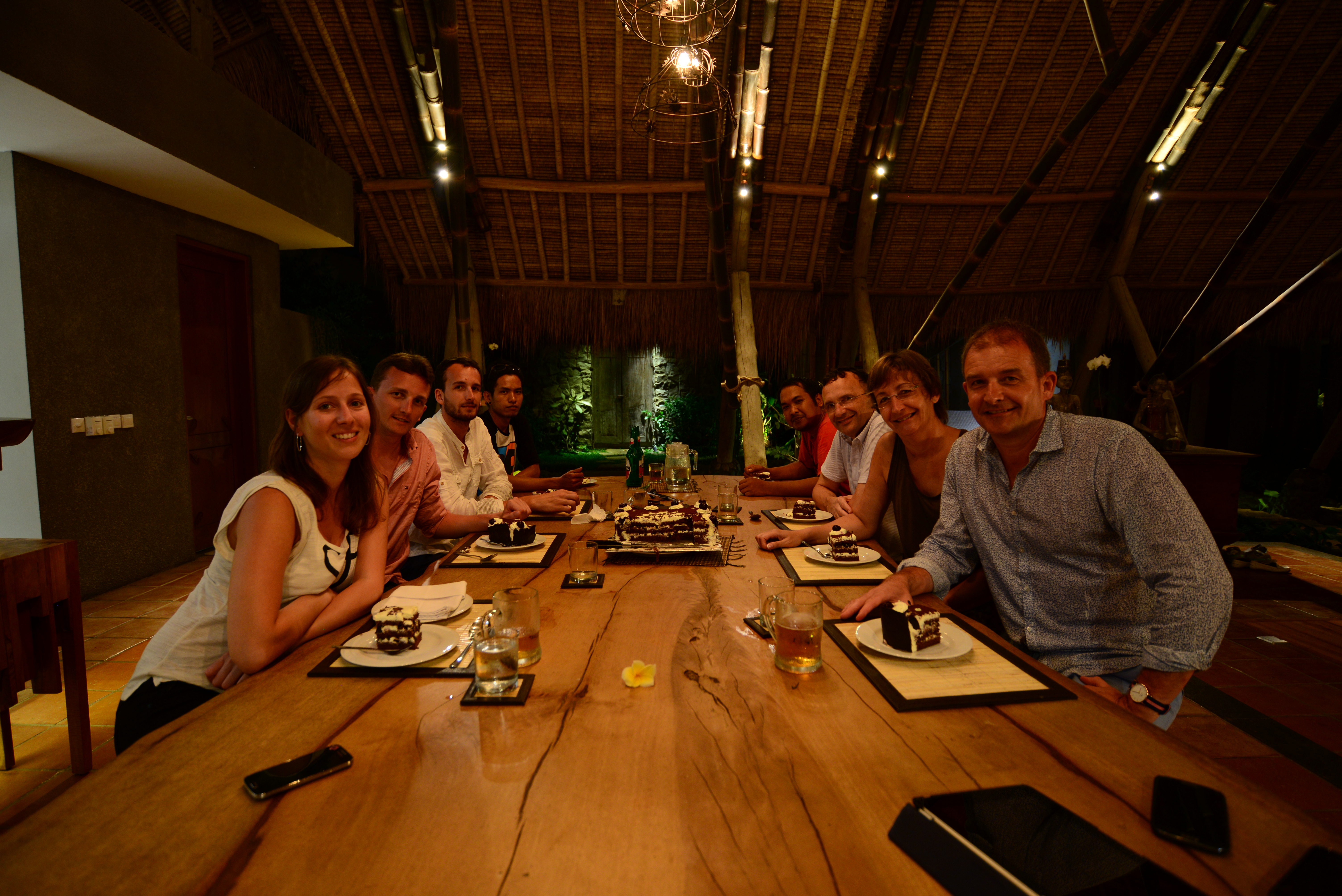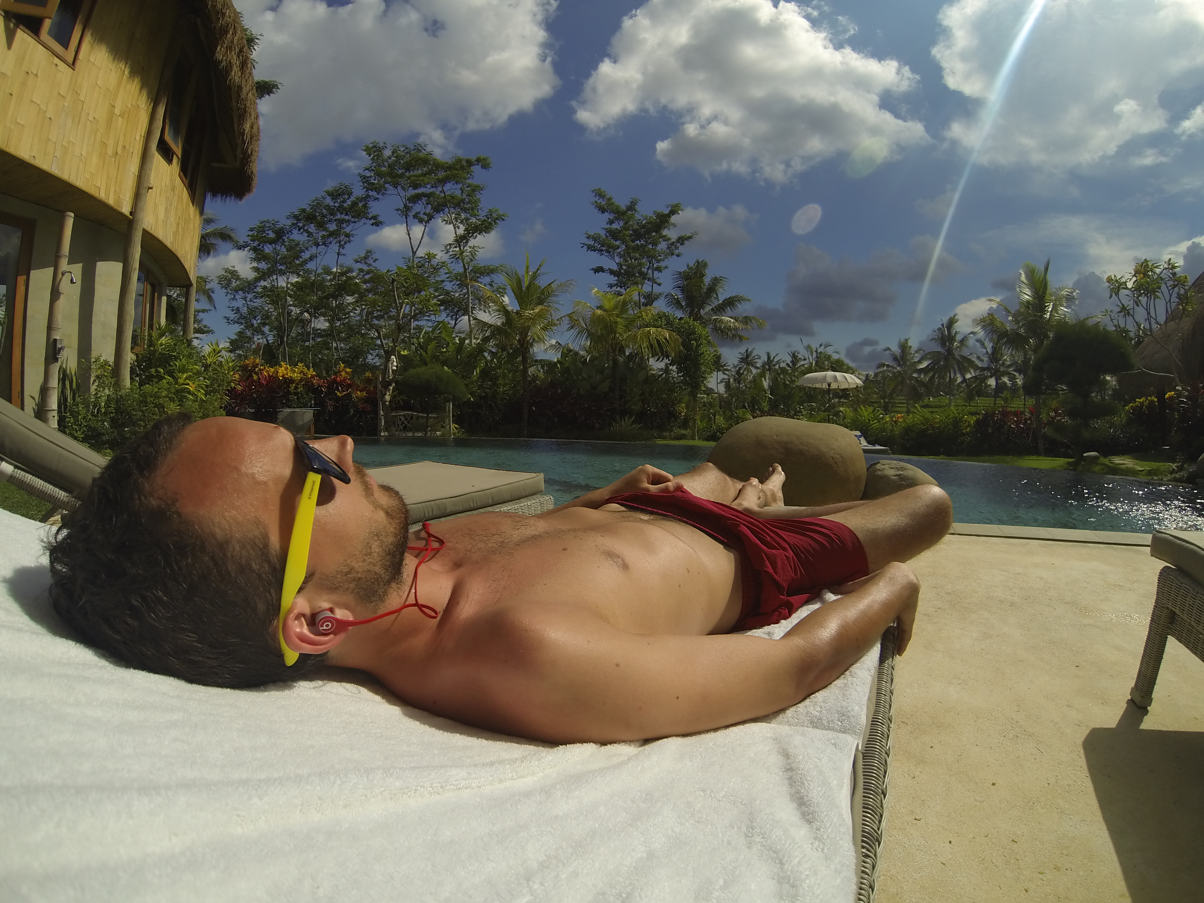 Eka et Ayu nous attendent à la villa avec un petit-déjeuner bienvenu et au fil des jours, elles connaîtront nos préférences à chacun et seront tellement prévenantes – ainsi Mathieu aura le plaisir de boire un thé au réveil toute la semaine. Nous apprenons qu’ici à Bali, il y a cinq prénoms uniquement, les mêmes pour les garçons et les filles et qui tournent dans un certain ordre – Made est toujours le prénom du premier enfant, puis Gusti, etc et au sixième bébé, on recommence avec Made. Cela nous surprend ; heureusement ils ont un deuxième prénom.