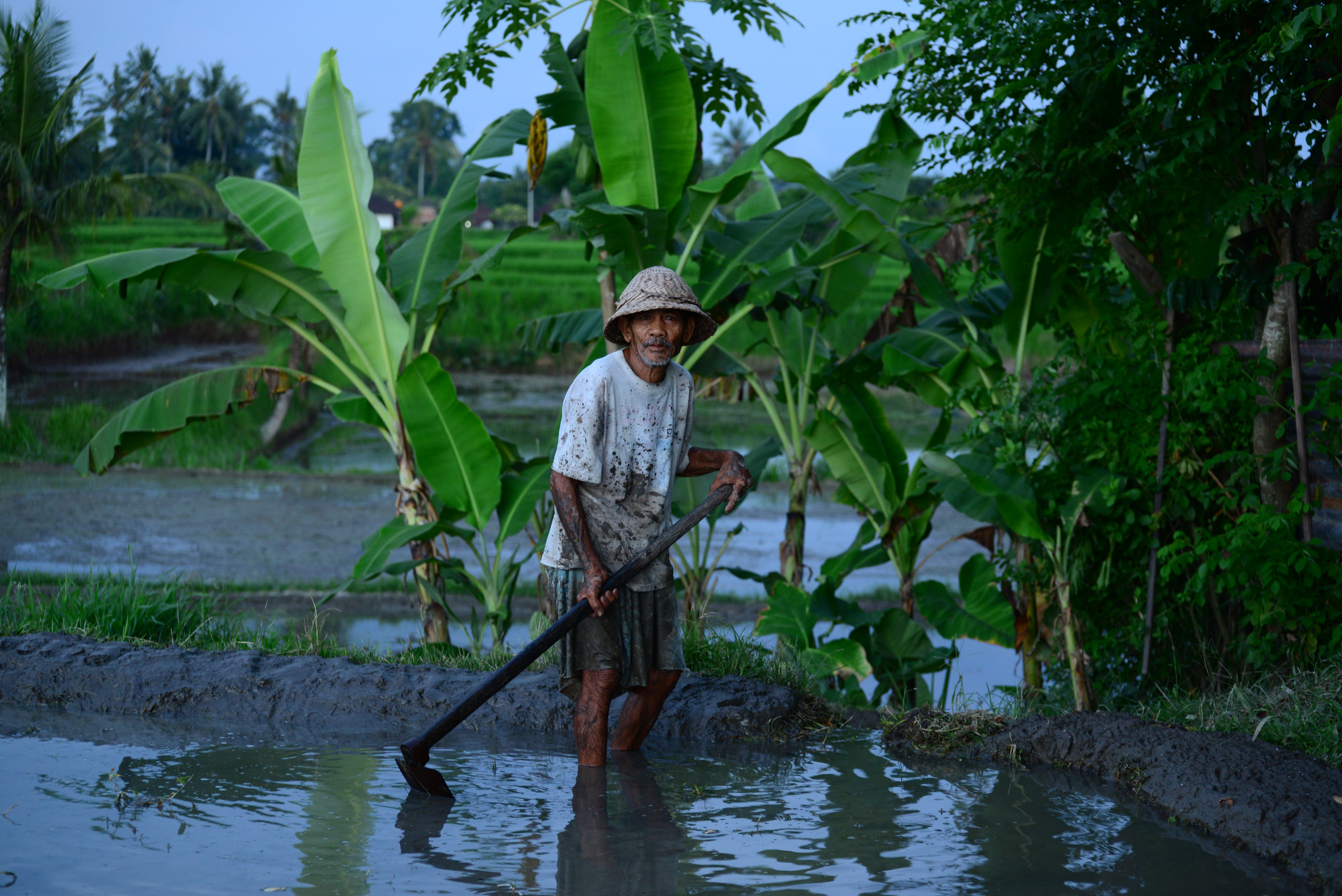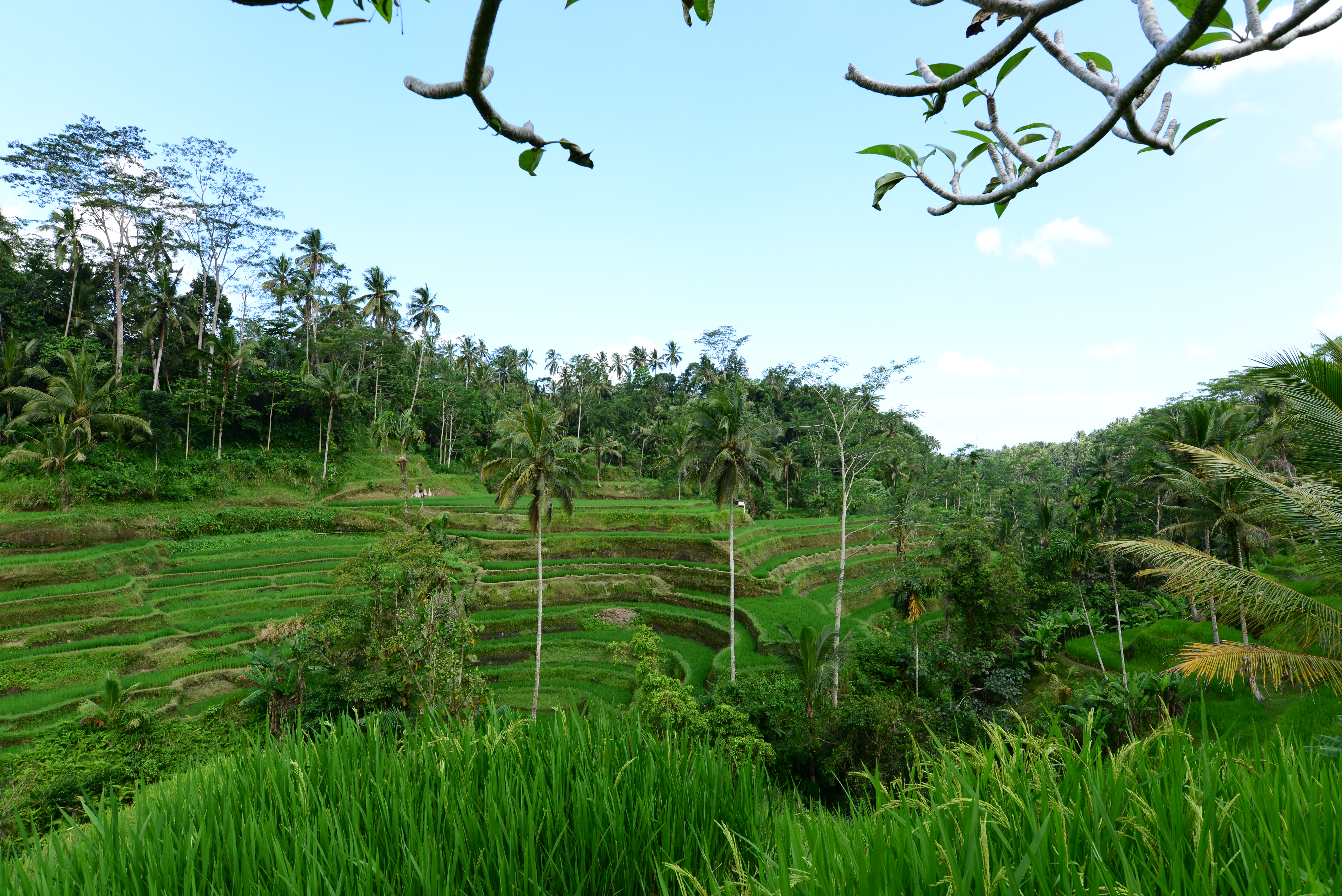 Quelles couleurs, quelles vues et quelle chaleur. La culture du riz demande beaucoup d’attention et le procédé est ici encore très manuel et artisanal; la récolte se passe deux fois par année, les semences germent en pépinières pendant que les terres sont inondées, labourées et nivelées, les hommes alignent les plantons à la main dans les carrés, les plants seront régulièrement élagués, débarrassés des mauvaises herbes et butés avec les mains et les pieds; l’irrigation relève de techniques ancestrales avec des canaux, des vannes qui régulent le niveau de l’eau provenant des lacs d’altitude. Quand les épis sont bien formés, on assèche les terres pendant deux ou trois semaines, avant que les dames ne coupent avec un petit couteau caché dans la main pour ne pas effrayer la déesse du riz, les gerbes folles de riz, qui seront conservées dans des greniers à riz pour être égrenées au fur et à mesure des besoins – une partie de la récolte est toutefois battue sur place et directement mise en sacs; les fanes sont brûlées sur les terrains pour les fertiliser et les bœufs peuvent aussi aider au nettoyage des parcelles. Pieds nus dans la boue, jusque parfois aux genoux, des dames et des hommes parfois très âgés, au chapeau pointu en paille, avec une serpette à la main, un long bâton ou avec un chargement porté en joug sur une palanche … passent des journées à la chaleur et l’humidité pour approvisionner leur famille en riz. Selon Made, chaque balinais consomme un kilo de riz par jour! La production de l’île ne suffirait pas aux besoins.