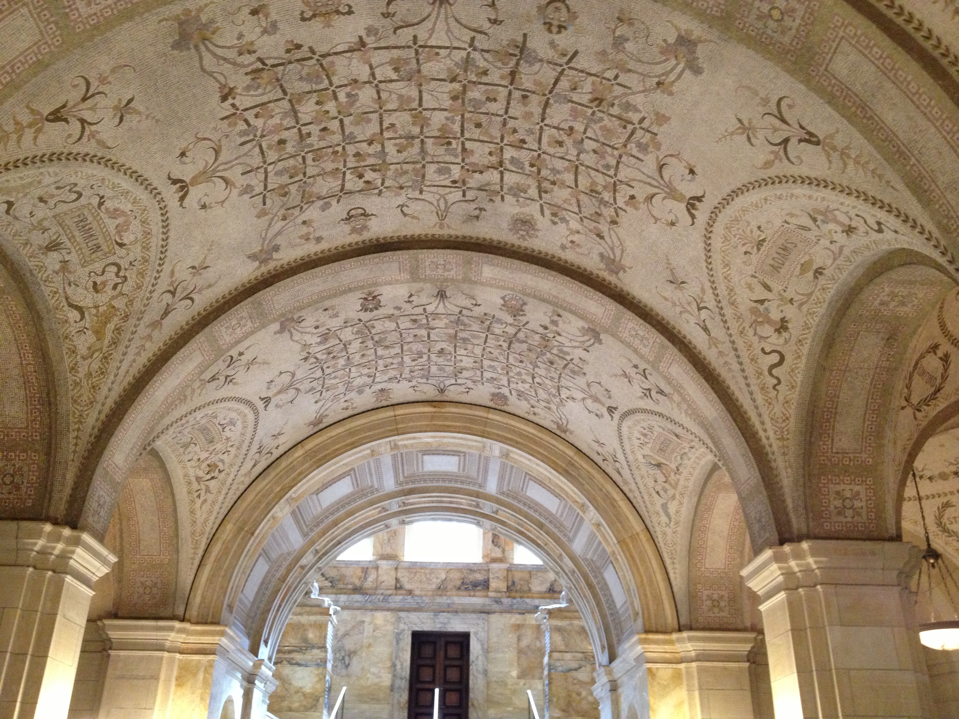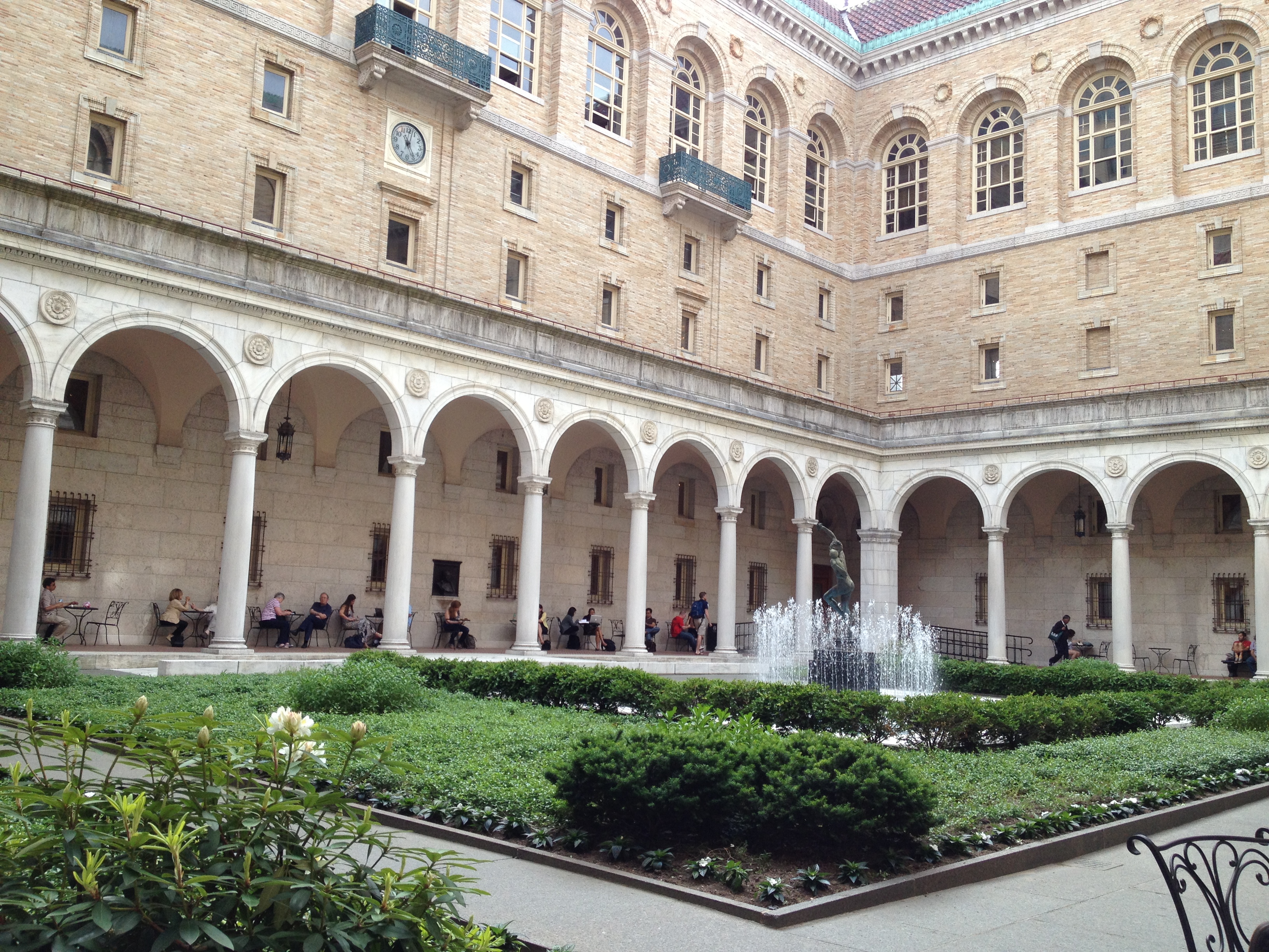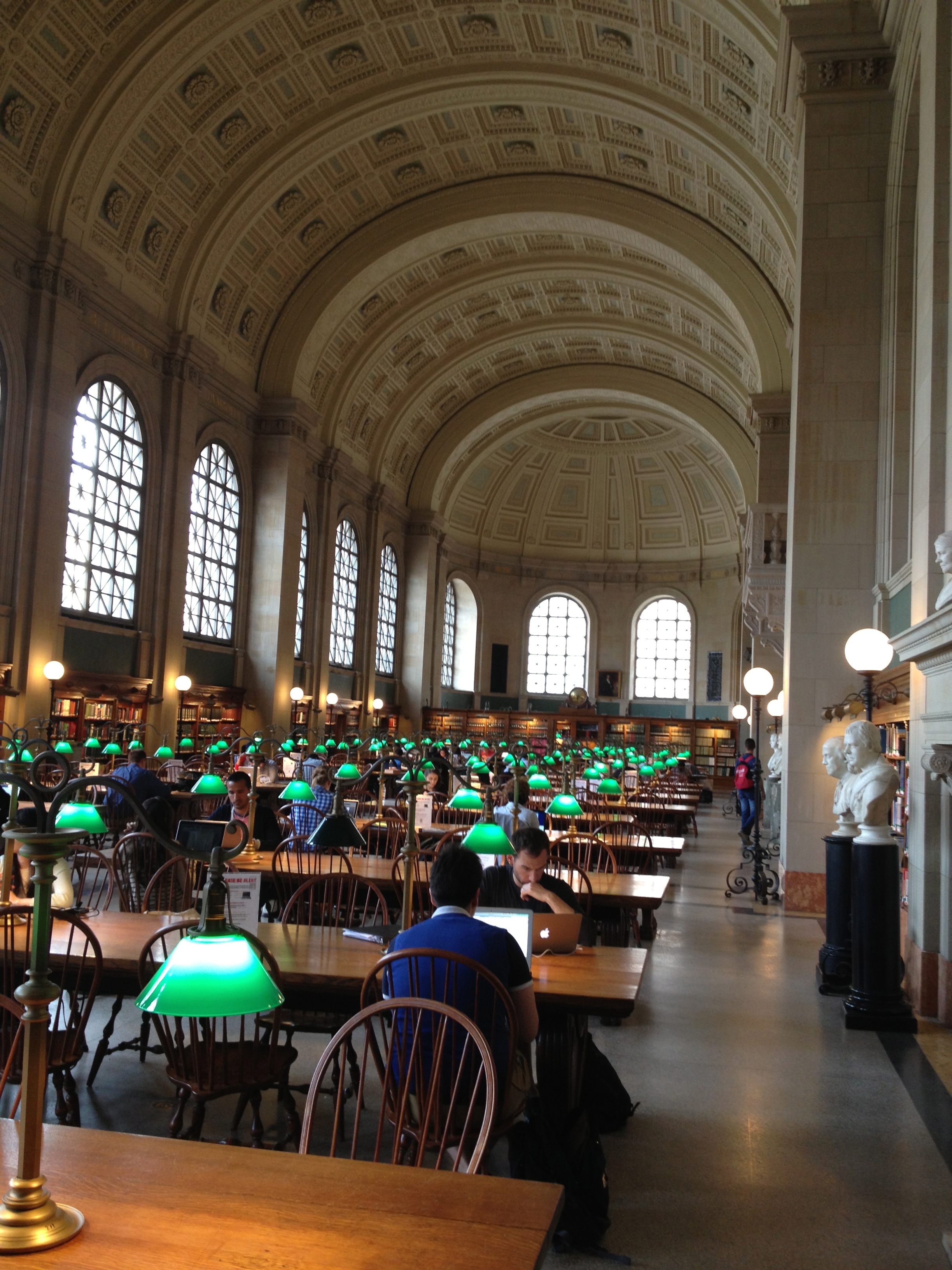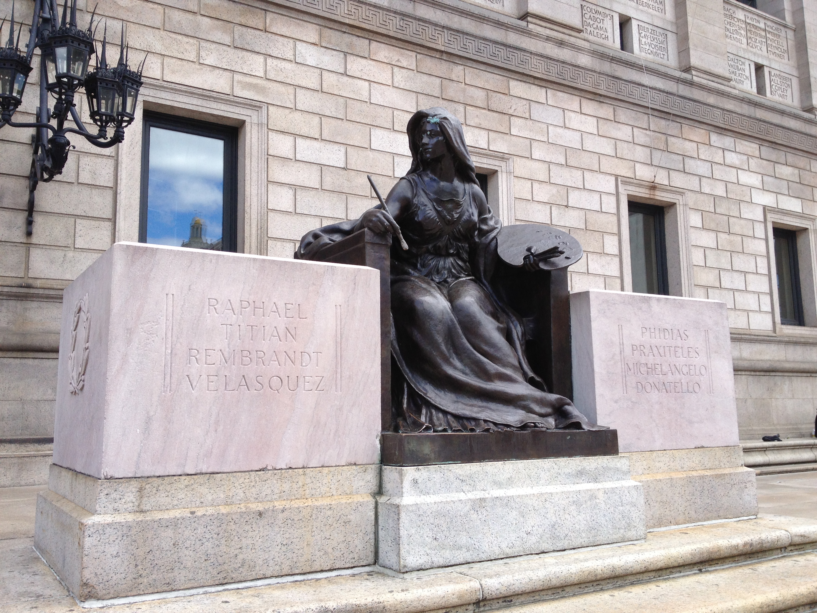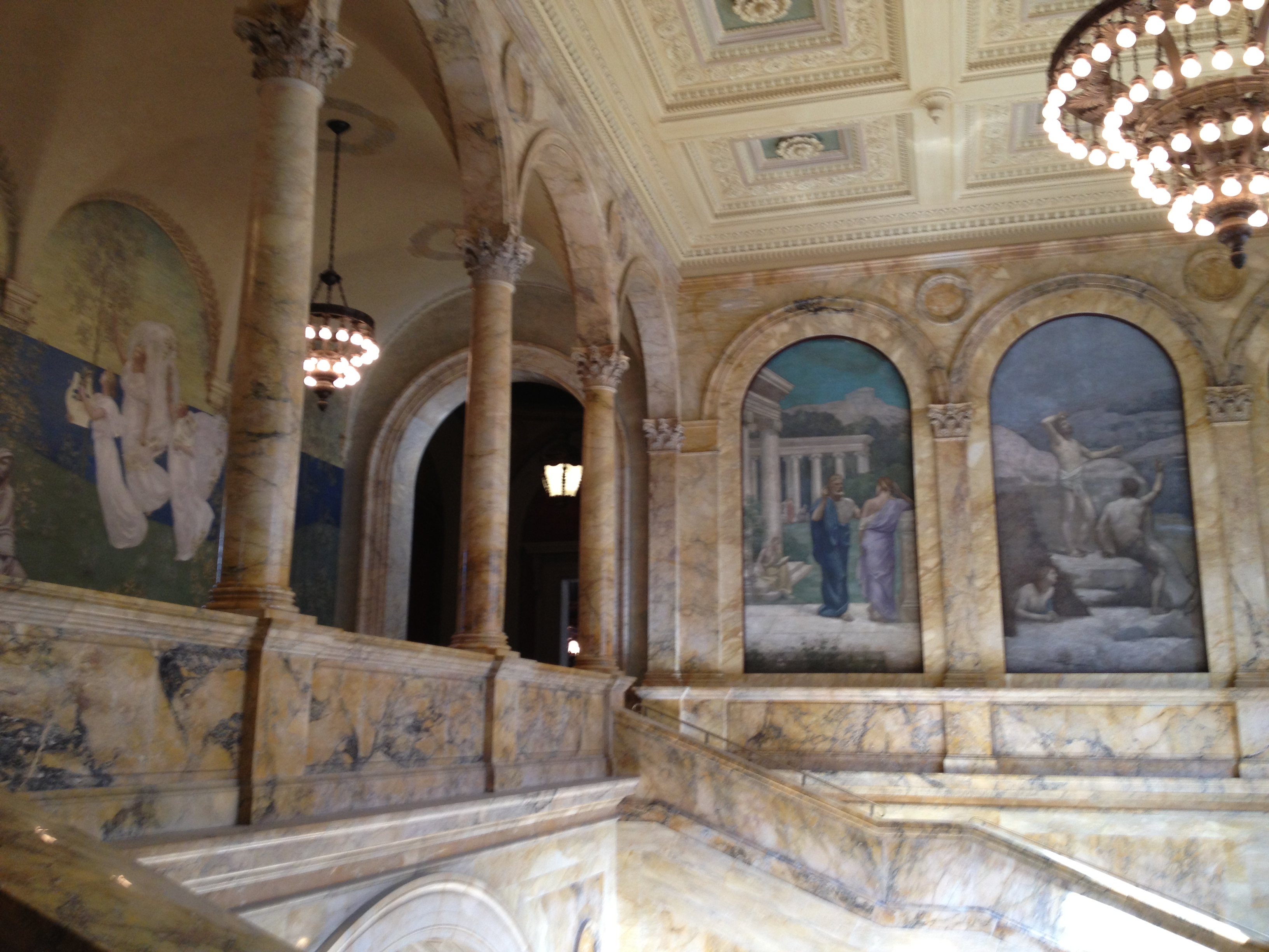 L’autre bâtiment somptueux de la place est la bibliothèque municipale, avec une imposante façade, des escaliers la surélevant, et de part et d’autre de l’entrée une statue représentant l’Art et une autre la Science. L’intérieur est conçu comme un palais Renaissance, avec un majestueux escalier de marbre, des plafonds de mosaïques, des peintures murales et une paisible cour intérieure.