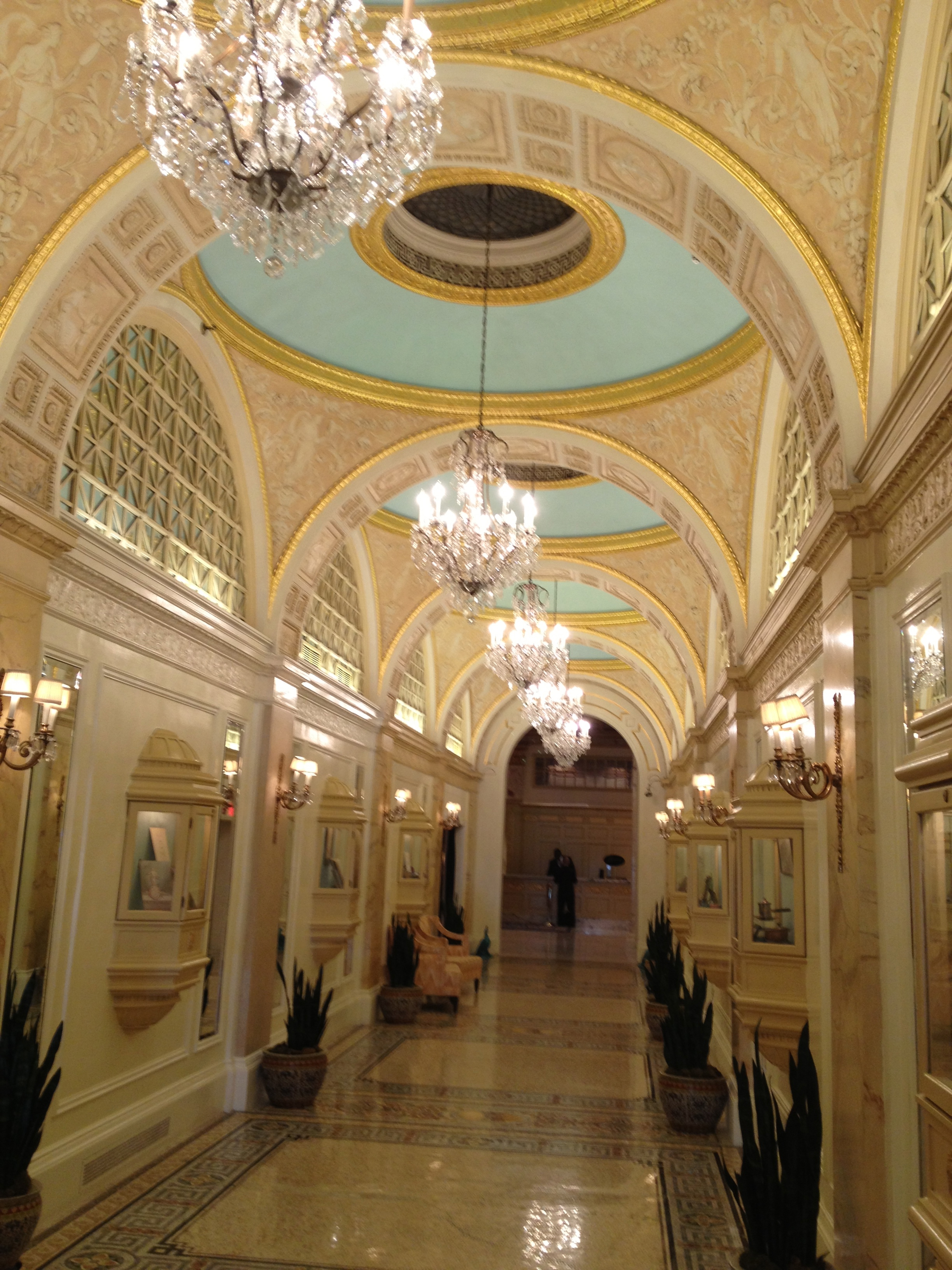 Nous restons ensuite bien calfeutrés dans notre hôtel Fairmont, un établissement datant de 1912, avec le cachet d’un petit château; son corridor et son hall aux lustres de cristal et aux plafonds dessinés dans des tons clairs, ses salles de réception éblouissantes – nous y verrons un mariage et un défilé de mode -, ses marbres et ses tapis, sa boîte aux lettres dorée, son Long Bar pour les repas dans un cadre de châtelain.