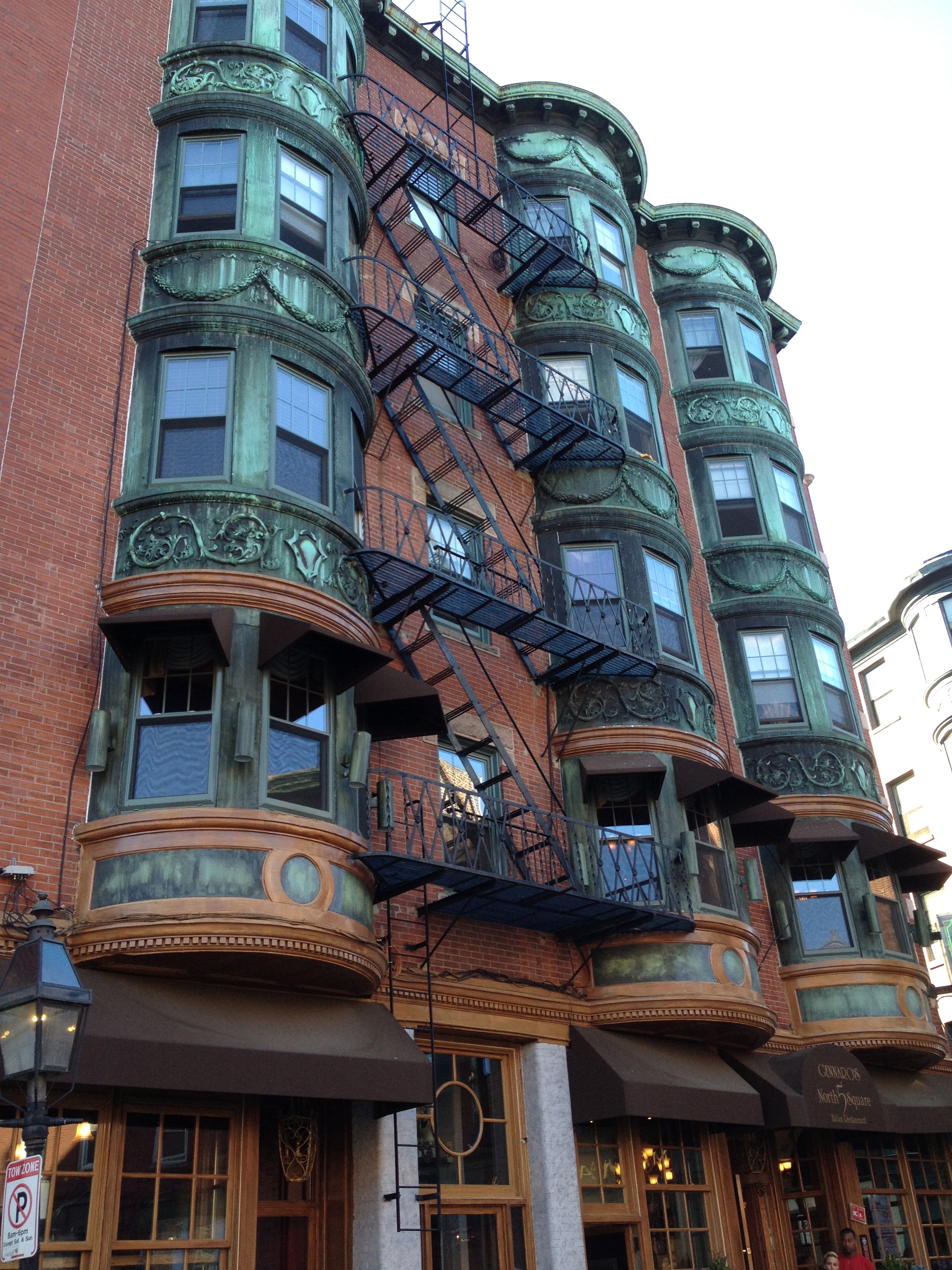 Ayant déjà pas mal sillonné la ville, mon impression est vraiment très agréable; Boston présente de nombreux espaces verts super bien aménagés, la ville est vraiment nette et propre en son centre touristique, peu de travaux et de chantiers, nettement moins de personnes qui demandent l’aumône que dans d’autres métropoles, beaucoup de façades rouges, quelques escaliers extérieurs par-ci par-là, de jolies façades de cuivre pour des loggias d’appartements bien situés.