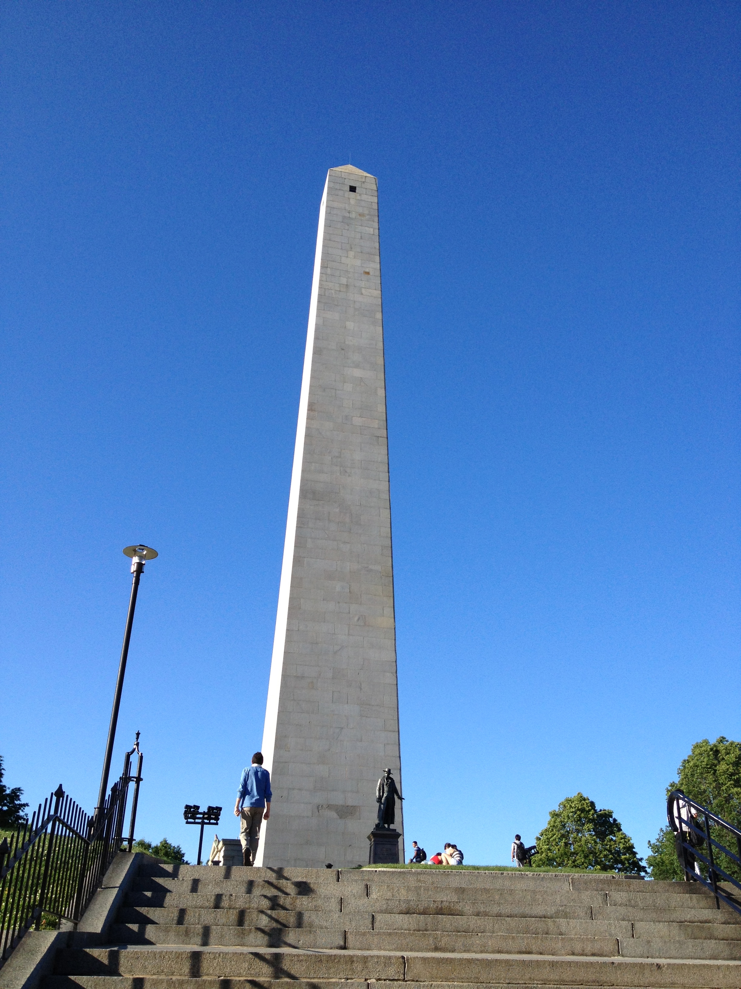 Nous enjambons la Charles River pour atteindre Charleston, un très joli quartier, paisible qui clôture le parcours avec un obélisque de granit, le Bunker Hill Monument. Il commémore sur une colline la première grande bataille sanglante de la révolution américaine; c’est sans doute une petite chance pour moi que l’entrée en soit déjà fermée en cette fin d’après-midi – il ne doit pas y avoir d’ascenseur pour en atteindre le sommet mais bien quelques trois cents marches. Charleston était autrefois un quartier ouvrier, de par son chantier naval. A quai, le USS Constitution Old Ironsides – dont l’équipage avait cru ses flancs en acier quand un boulet de canon avait rebondi dessus – construit fin du dix-huitième siècle, c’est le plus vieux navire en service de la marine américaine, il sort à quelques reprises sur l’année pour des croisières dans le port.