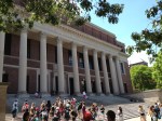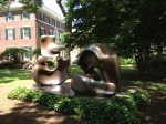 Harvard Square est très animé, coloré et met dans l’ambiance de la jeunesse. Le campus est étendu mais je commence par la mythique Harvard Yard; c’est comme dans les films … un parc bien vert et feuillu, autour duquel s’alignent des édifices historiques de briques rouges et colonnes blanches, la statue prisée par les étudiants de John Harvard et sa chaussure porte-bonheur. La Memorial Church et la gigantesque bibliothèque Widener aux quelques huitante kilomètres d’étagères – mais dont l’accès n’est pas autorisé au public. Une sculpture du célèbre britannique Henry Moore se trouve près de la bibliothèque, je le reconnais de suite après ma visite à l’AGO de Toronto et j’en reverrai une autre également au MIT.