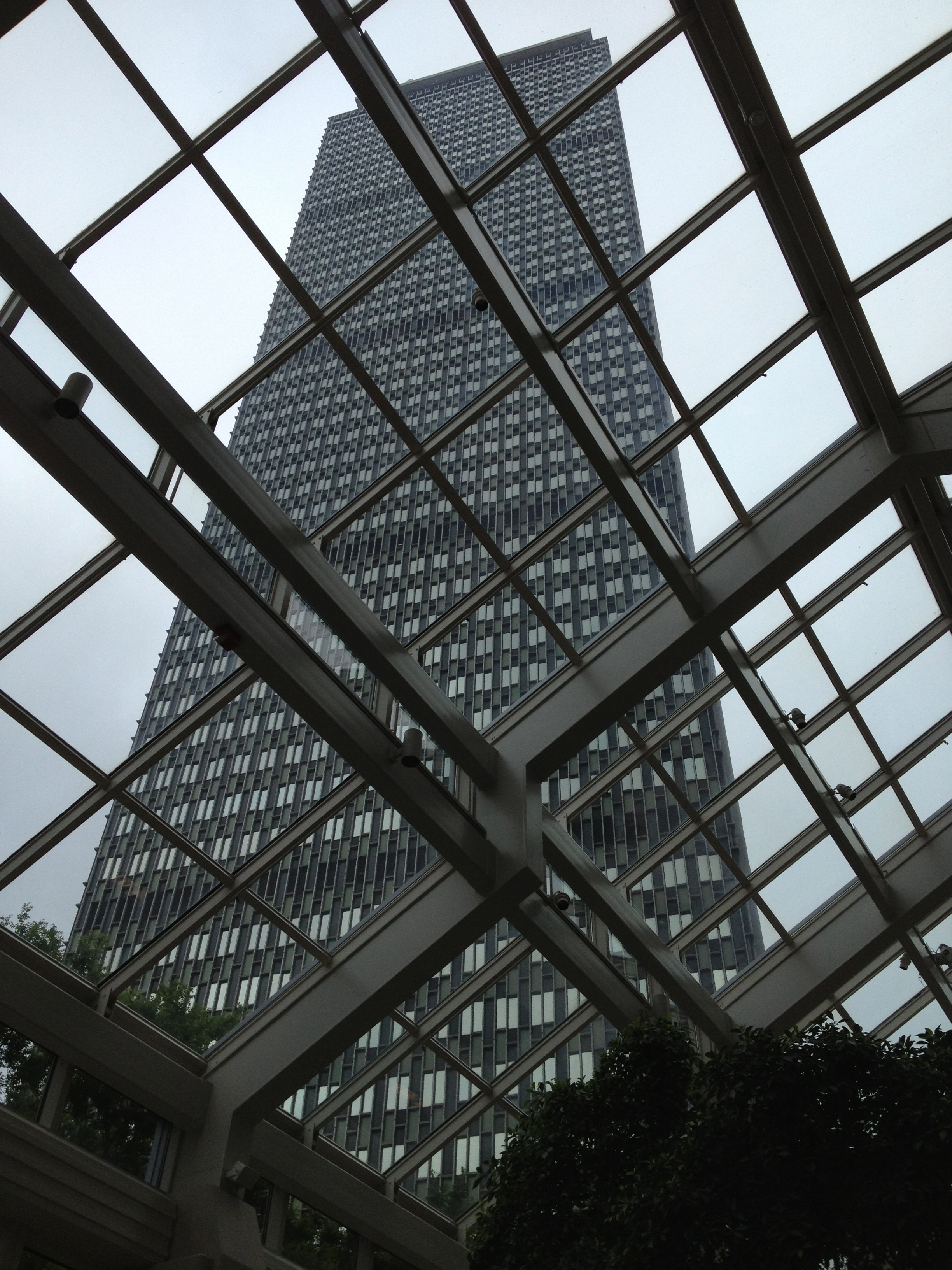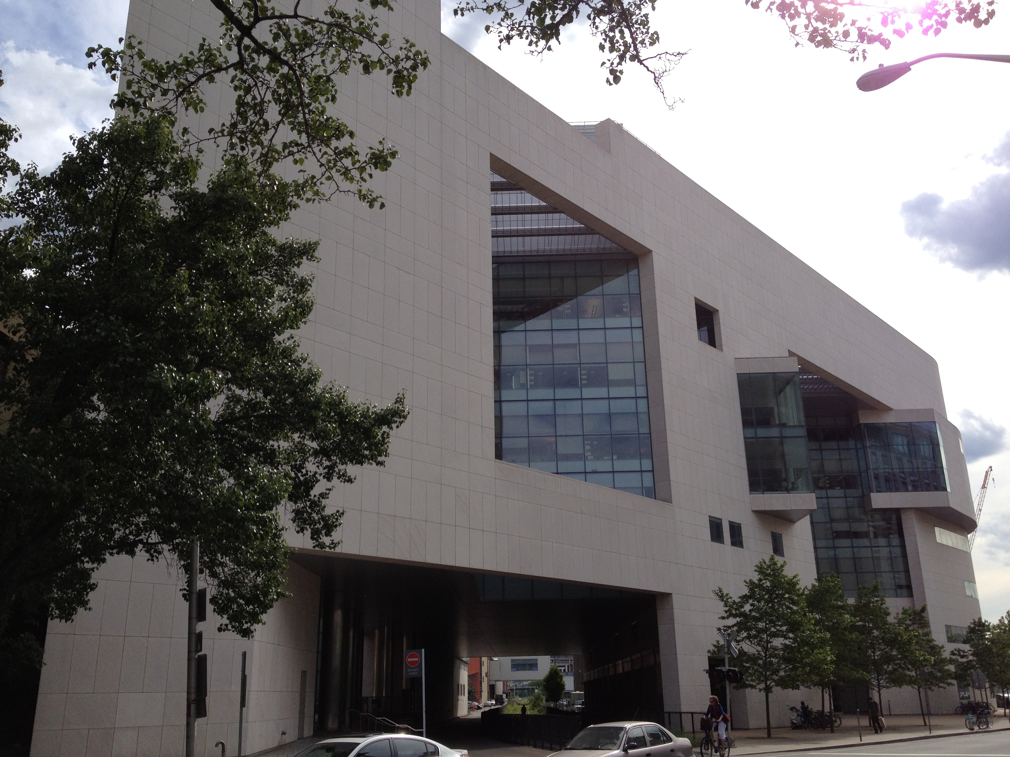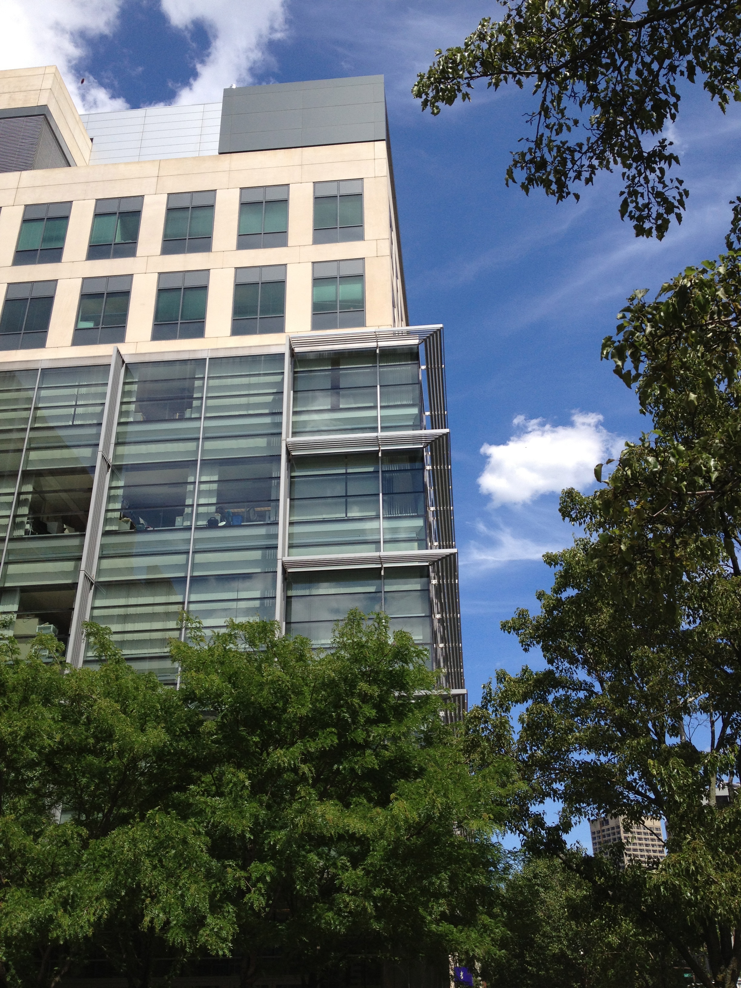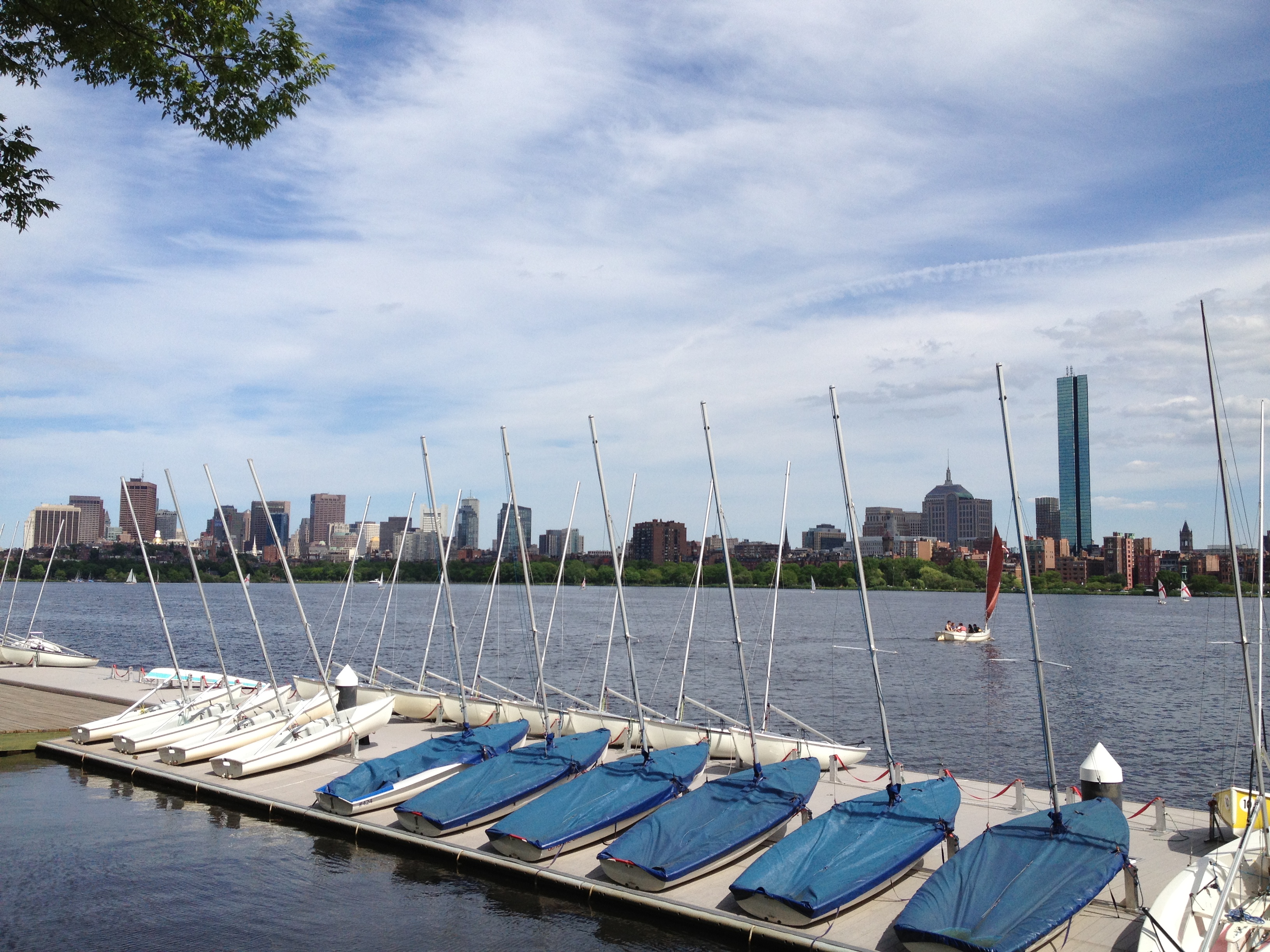 Le bâtiment principal de cette université est une construction gigantesque, un énorme monolithe gris, aux hautes colonnes, un dôme discret, regardant la Charles River où des voiles rouges briques au logo MIT se laissent porter par le vent. Alors qu’à Harvard, les cérémonies de remises de diplômes ont déjà eu lieu, ici elles se préparent avec l’alignement de centaines de chaises dans la plaine et les essais de musique; et voici pourquoi nous ne trouvions pas de place dans les hôtels de Cambridge. Je pénètre incognito dans le hall du bâtiment, impressionnant et je m’enfile dans les corridors à perte de vue, laissant voir quelques labos de physique, chimie. Sur le retour vers le métro, il y a des constructions plus modernes comme le centre Novartis ou le centre de recherche sur le cerveau. Il me faut quitter cet endroit magique pour les étudiants et rentrer vers la ville.