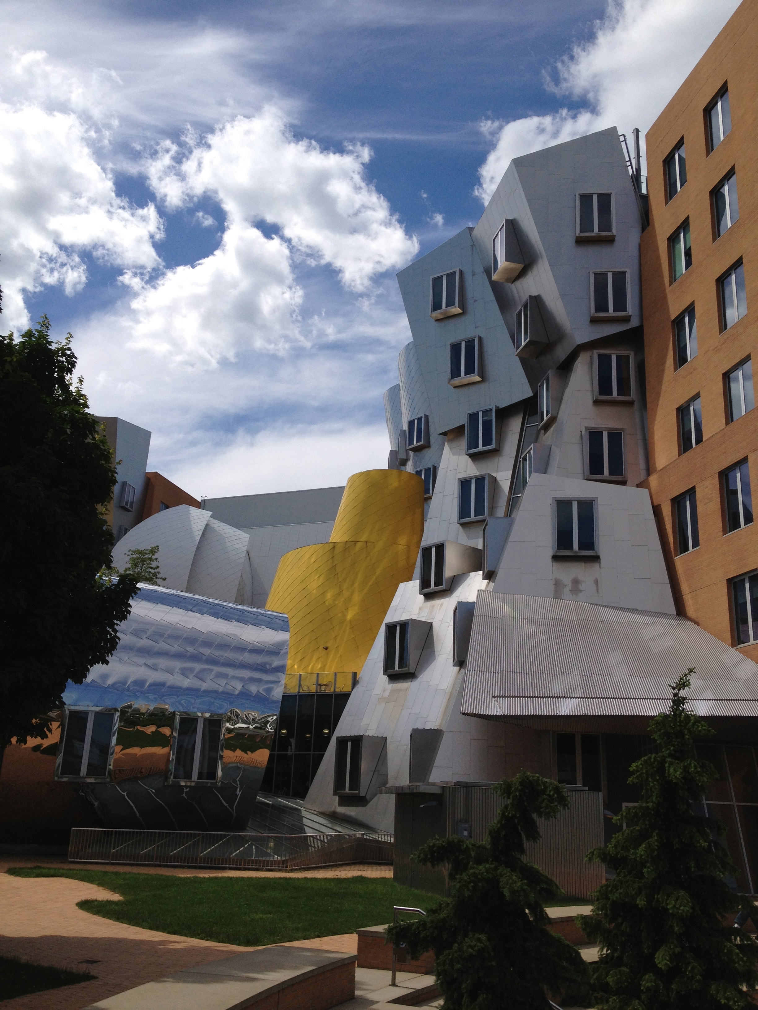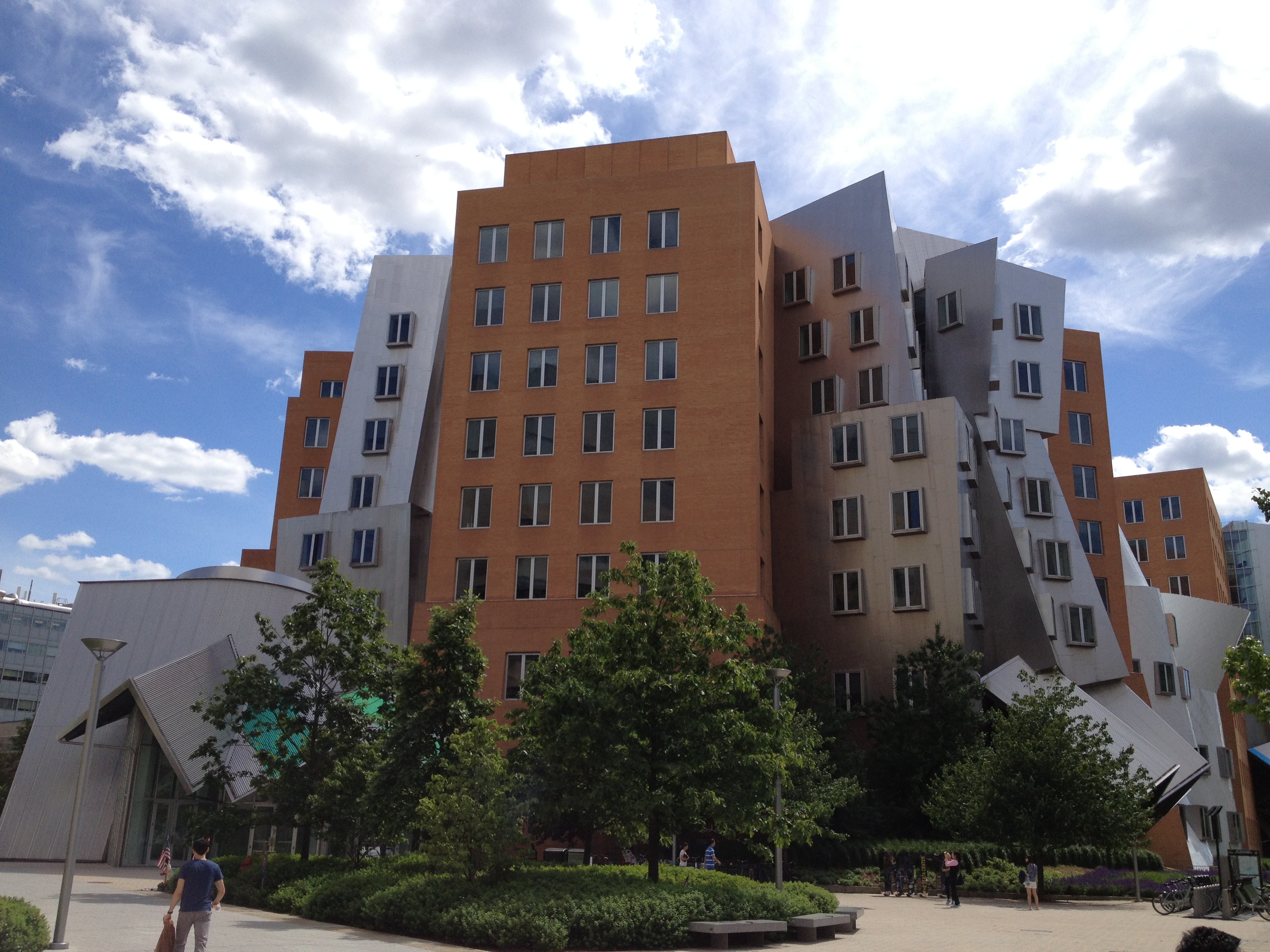 Le MIT a ouvert le monde vers les technologies, c’est dans un laboratoire ici qu’est né en 1928 le premier ordinateur et c’est grâce aux travaux d’un informaticien du MIT qu’a été créé Internet. Le style des bâtiments et leur architecture sont tout autres que sur Harvard, avec moins d’unité. L’édifice qui attire le plus le regard est bien évidemment celui de Frank Gehry, le Ray and Maria Stata Center; une construction un peu folle, où se mêlent en façade la brique, le verre, le métal dans des formes aux antipodes des conventions d’architecture habituelles.