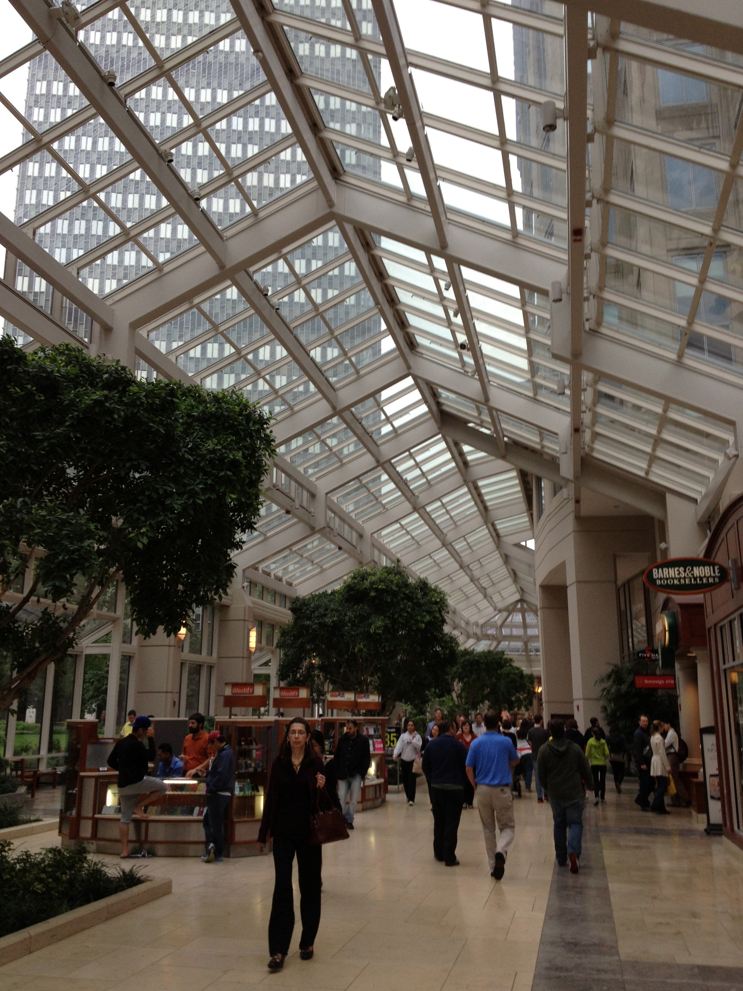 Rester toute la journée dans l’hôtel ne me tente guère, je propose donc une sortie accessible en métro jusqu’à la Prudential Tower, et son centre commercial. Il compte seulement septante boutiques, soit dix fois moins qu’à Marina, ce qui décide Yves à me suivre et pour son bonheur le premier magasin est la librairie Barnes & Noble. J’y déniche un joli nouveau carnet de notes – je les remplis à vitesse grand V – et la présentation de leur liseuse nook, pas mal. Les enseignes qui retiennent notre attention sont Cheesecake Factory tellement alléchant, Microsoft avec un espace de vente qui fait penser à ceux de Apple et sa tablette Surface et un gigantesque salon de coiffure MIZU – il y en a également un à New York.