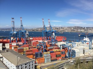 Sur la recommandation de notre hôtesse, après la Plaza Sotomayor, nous nous offrons également une visite en bateau du port et de la baie. La vue depuis le Pacifique nous montre l’étendue incroyable de cette ville pentue (250’000 habitants) où les ruelles qui tombent toutes droites à pic font penser à des tracés de pistes de ski dans nos montagnes (image purement personnelle ;-). Nous pensions les sud-américains plus exubérants, bruyants et depuis notre arrivée, à maintes occasions, nous nous apercevons qu’ils sont au contraire calmes et posés. Sur notre petite embarcation, l’excursion se déroule si agréablement, les gens ne parlent pas fort, seul le guide est lui très volubile pour crier ses commentaires mais tout en espagnol et avec un débit qui nous échappe … le plaisir des yeux suffit largement; nous approchons non seulement des petits bateaux de pêcheurs, d’énormes porte-containers mais aussi d’un phoque installé sur un flotteur, il fait le beau et semble savoir qu’il est l’une des attractions des touristes.