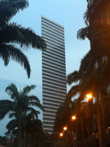 En me baladant jeudi après midi vers chez Caroline, je sillonne dans un quartier de villas très agréable. Elle habite juste derrière U-Town, les nouvelles résidences de l’université; nous sommes très proches à vol d’oiseau mais l’autoroute et la configuration du terrain me font faire un grand détour. Les rues sont calmes et dans la verdure; les villas sont spacieuses avec de beaux jardins mais l’idée d’un face-à-face avec un gros lézard ou un boa ne m’enchanterait guère. Caroline dit que l’on s’y fait … sauf quand il faut ramasser les peaux mortes de serpent dans le gazon. Rien à faire, je me sens mieux au bord de la piscine à Kent Vale!