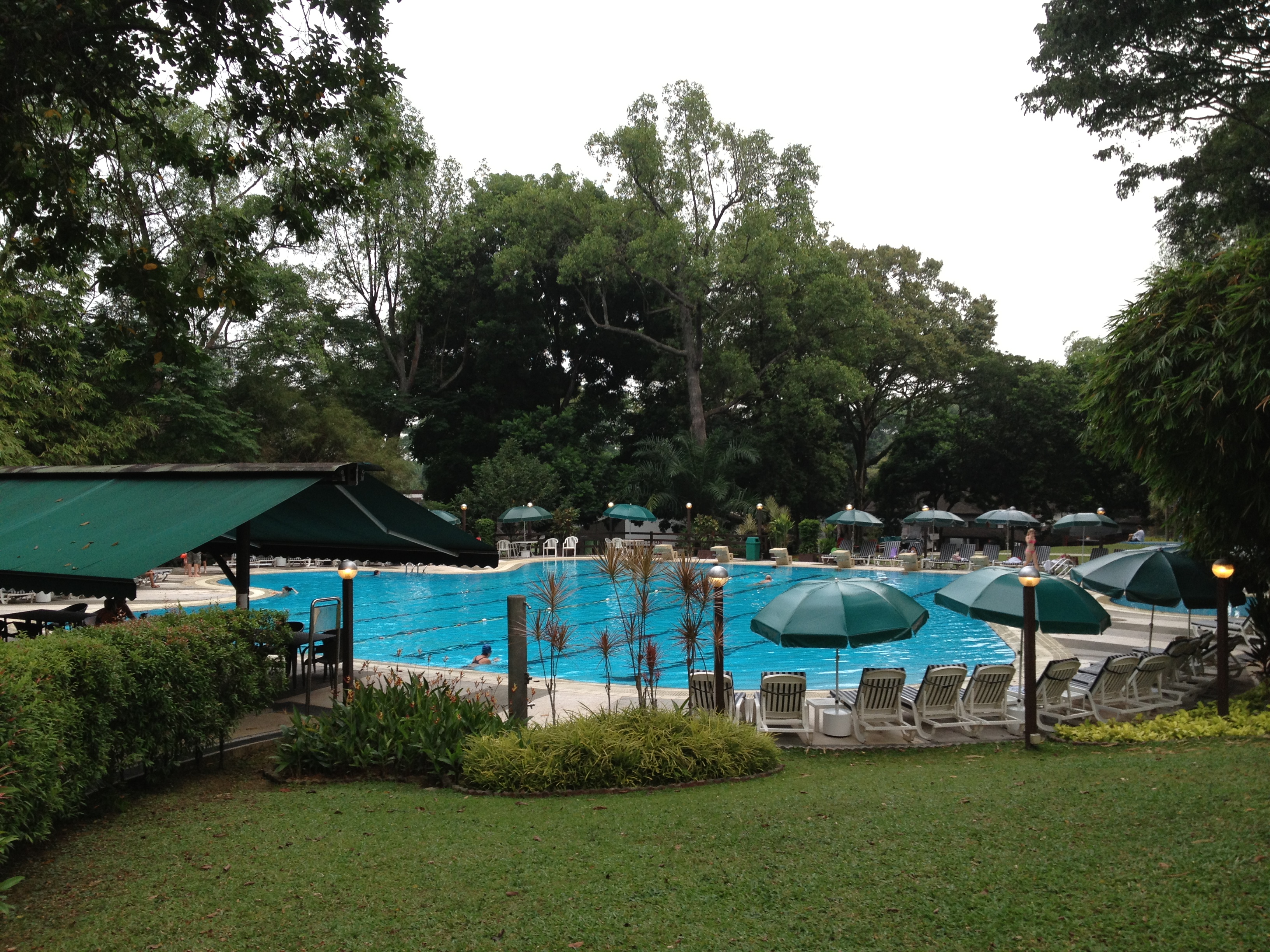 Si je suis de manière détaillée, heure par heure, la météo, je parviens à me réserver des plages de beau et chaud pour retrouver ma place appréciée autour de la piscine, avec un bloc pour rédiger des mails, des textes ou alors une revue sur les nouveautés et manifestations à Singapour. Les orages sont fréquents mais le soleil re-pointe souvent son nez ensuite.