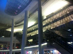 Ce fameux centre commercial récemment inauguré, je l’aurais vraiment appelé « The Boat » plutôt que « The Star », tellement cela me fait rêver à une croisière quand j’y fais le lèche-vitrine. La construction est phénoménale, avec des ponts comme sur un paquebot. Tous les emplacements ne sont pas encore occupés mais il y a déjà beaucoup à admirer ainsi ; de nombreux restaurants évidemment, de toutes origines et je choisis aujourd’hui un lunch léger et sain avec des wraps et un smoothie mangue-passion, délicieux. A la commande, le garçon me remet un petit gadget en forme de soucoupe volante, qui se met à clignoter 5-10 minutes plus tard quand mon repas est prêt ! Les boutiques rivalisent entre chaussures confort ou à talons aiguilles, sacs de voyage ou avec coques, vêtements casual ou plus chics, cosmétique (je me fais masser les mains avec du sel de la mer noire), articles de maison (je repère des ceintres anti-glisse) et un petit supermarché japonais.