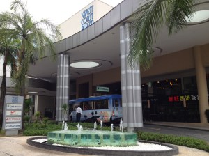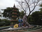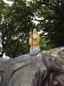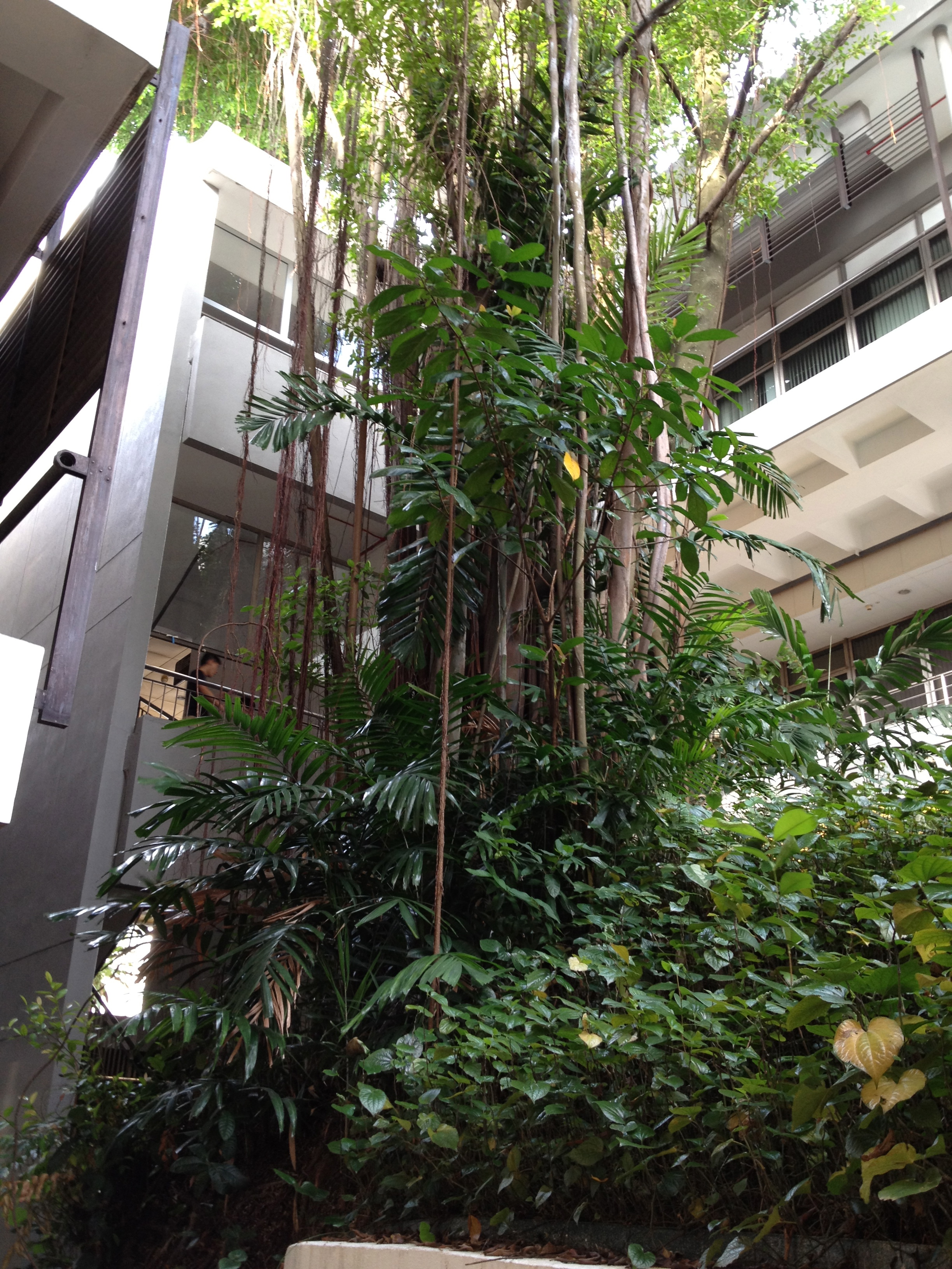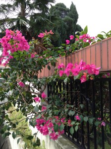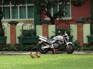 Les retombées du séminaire de Yves samedi à Sentosa se font déjà ressentir, son agenda se remplit de rendez-vous de discussions, d’échanges et de présentations. Il rencontre aussi à Nanyang, Nadia Thalmann, qui a été longtemps professeur à Genève en infographie. Elle s’est installée ici avec son mari, à leur retraite et ils poursuivent leurs travaux de recherche. Les démonstrations qu’elle présente à Yves semblent intéressantes, j’espère pouvoir une fois y participer. Selon elle, le système ici est très, voire trop, contrôlé; si on ne se donne pas à fond, si on ne répond pas aux objectifs, si on ne convient tout simplement pas … on est éjecté. La structure est très hiérarchisée, beaucoup de rapports à fournir, ainsi les gens n’ont pas le temps de se rebiffer. Ce doit être aussi le cas pour toute cette main d’œuvre venue de Malaysie ou du Sri Lanka. Ils font ce qu’on leur dit de faire, sinon retour au pays mais les conditions de vie sont quand même pour eux meilleures ici. Cette main d’œuvre est présente, en nombre, partout; cela me surprend par exemple, de voir des gens arroser si souvent tous ces parterres chez nous, avec un simple tuyau d’arrosage alors qu’un système automatique serait peut-être plus efficace. Et souvent, autour d’un petit chantier, il y a un ou deux gars qui travaillent et autant qui regardent … Le contraste est énorme parfois entre des aspects où la technologie est avancée et d’autres qui nous paraissent archaïques. En rentrant de balade un jour, je m’arrête pour observer une équipe qui s’affaire … lentement … pour monter une poutrelle d’un futur passage couvert. Les ouvriers ont un treuil basic et une vieille chaîne rouillée; deux tirent sur la chaîne, deux autres maintiennent la poutrelle plus ou moins droite … et les autres regardent. Le lendemain c’est en place!
