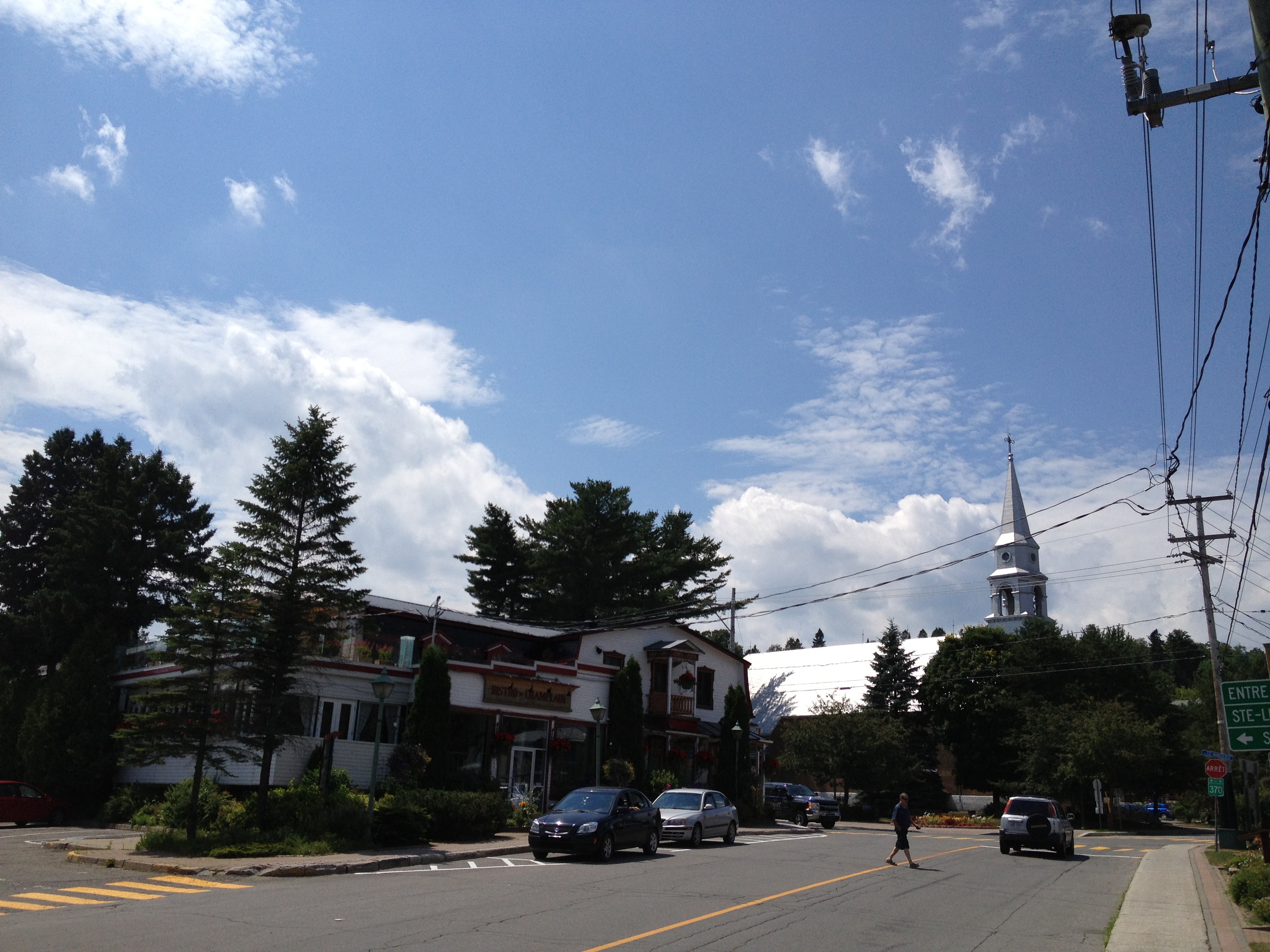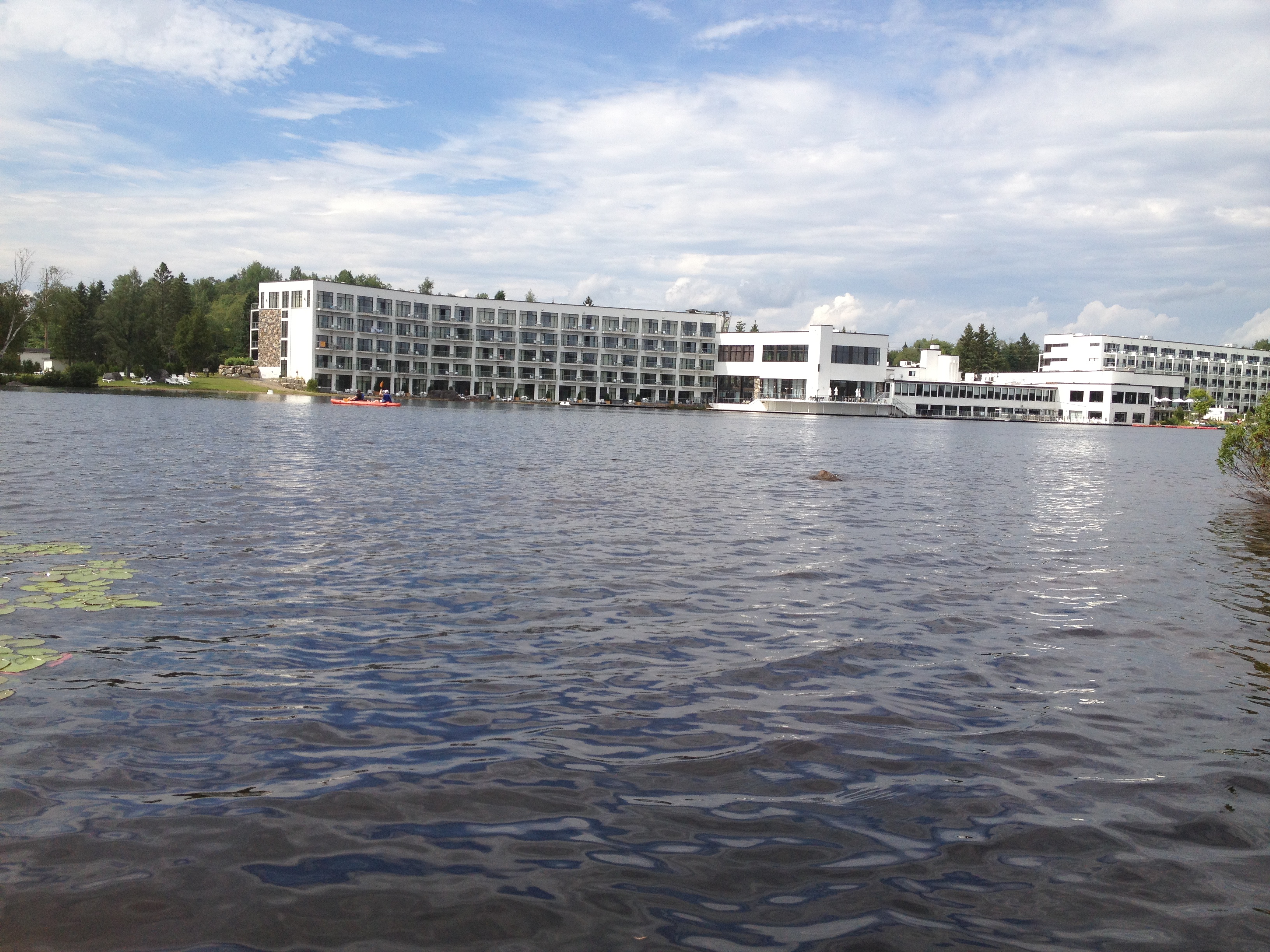 L’heure est venue de nous dire au revoir, pour longtemps sans doute et selon les suggestions de Suzanne, nous changeons un peu d’itinéraire pour le retour. Le Chemin du Lac des Îles, avec ses jolies demeures imposantes, nous amène à Entrelacs, une localité qui porte son nom à merveille. A Esterel ensuite, nous faisons le crochet pour voir à quoi ressemblait une des réalisations immobilières du Baron Empain. C’est dans les années 1936-1938 que le baron Louis Empain fit construire ces bâtiments à l’architecture particulière et certainement futuriste pour l’époque. La guerre a quelque peu freiné ses ambitieux projets immobiliers mais il fit quand même construire de nombreux édifices sur le pourtour du Lac Masson. Il nomma le domaine ‘Esterel‘ en l’honneur de la petite localité sur la côte française et qui signifie en patois ‘beau ciel étoilé‘.