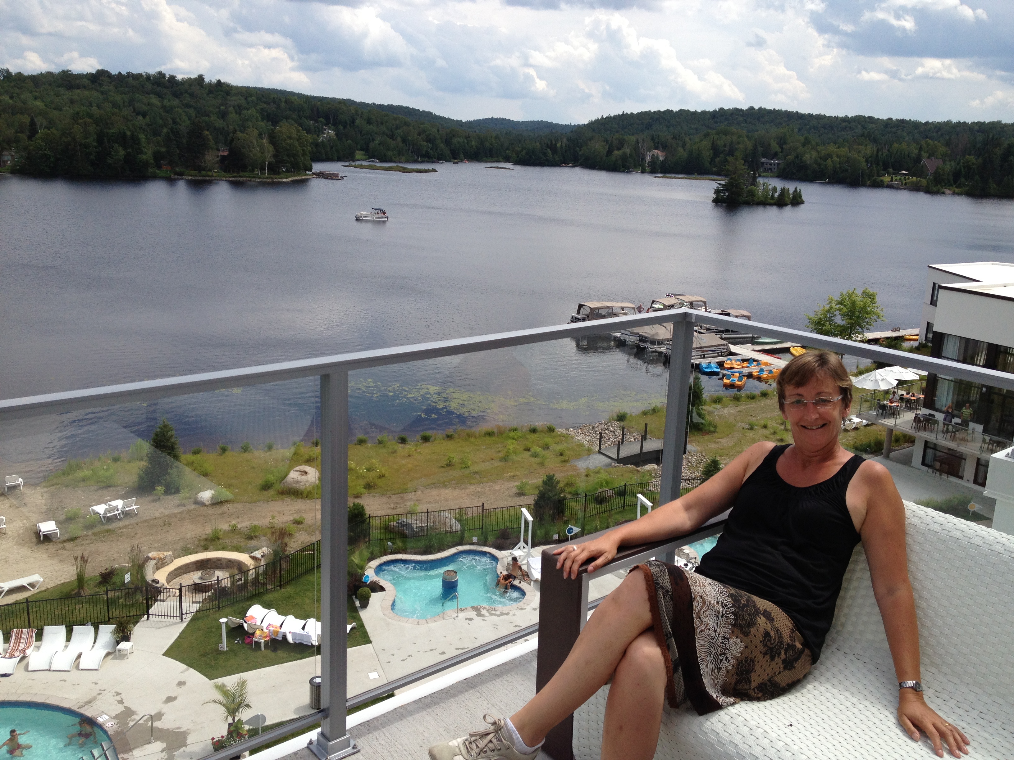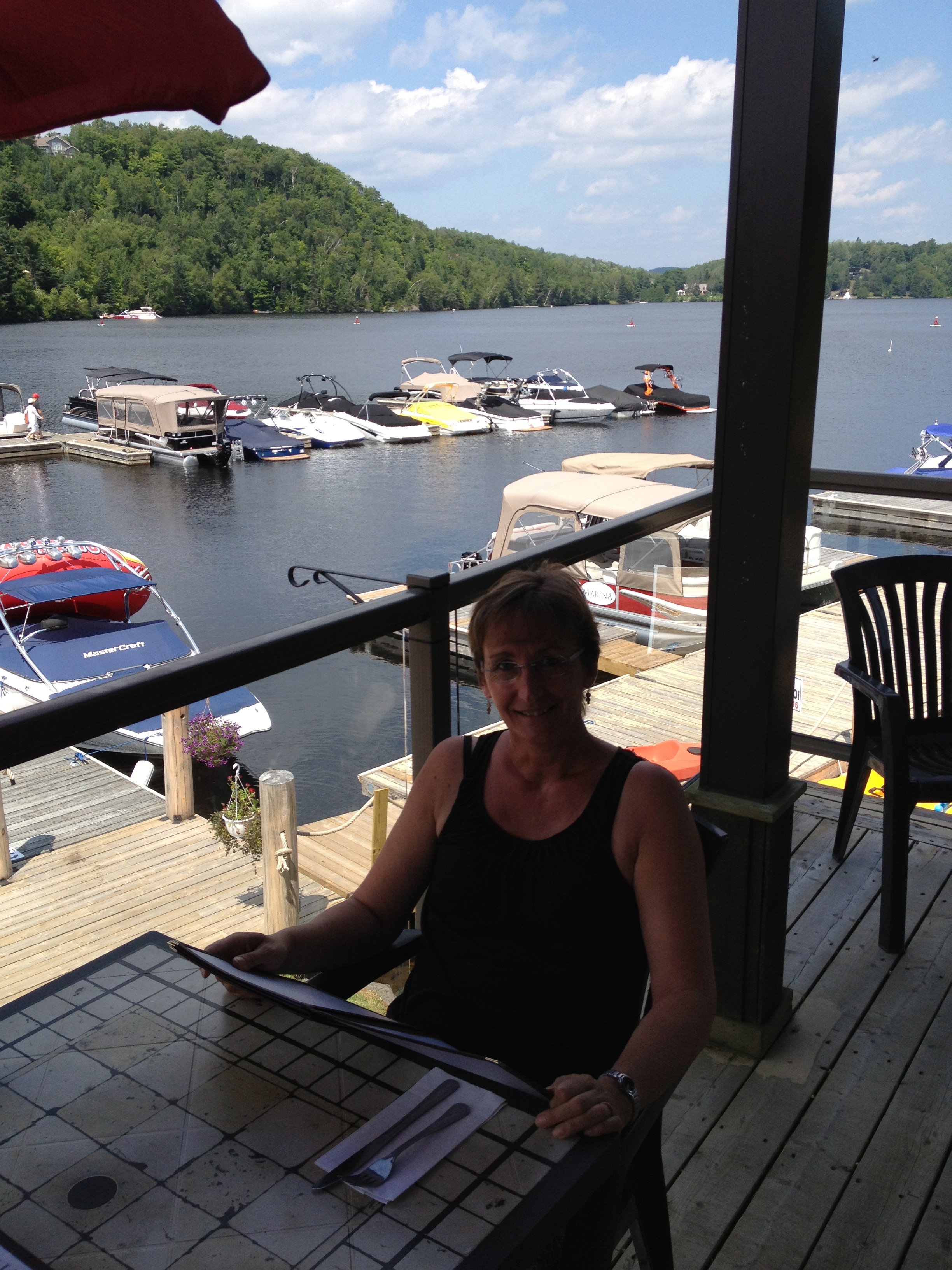 Je dirige ensuite mon chauffeur vers un hôtel restaurant au bord du lac Dupuis … une excellente intuition. La terrasse est idéale pour un déjeuner, avec vue sur un paysage reposant et enchanteur. Sur ce lac tortueux nous regardons les bateaux, les pédalos, les kayaks, les paddles. Et alors que je crois Yves préoccupé par une nouvelle qui le perturbe, il a en fait réservé une chambre pour la nuit! Quel cadeau!