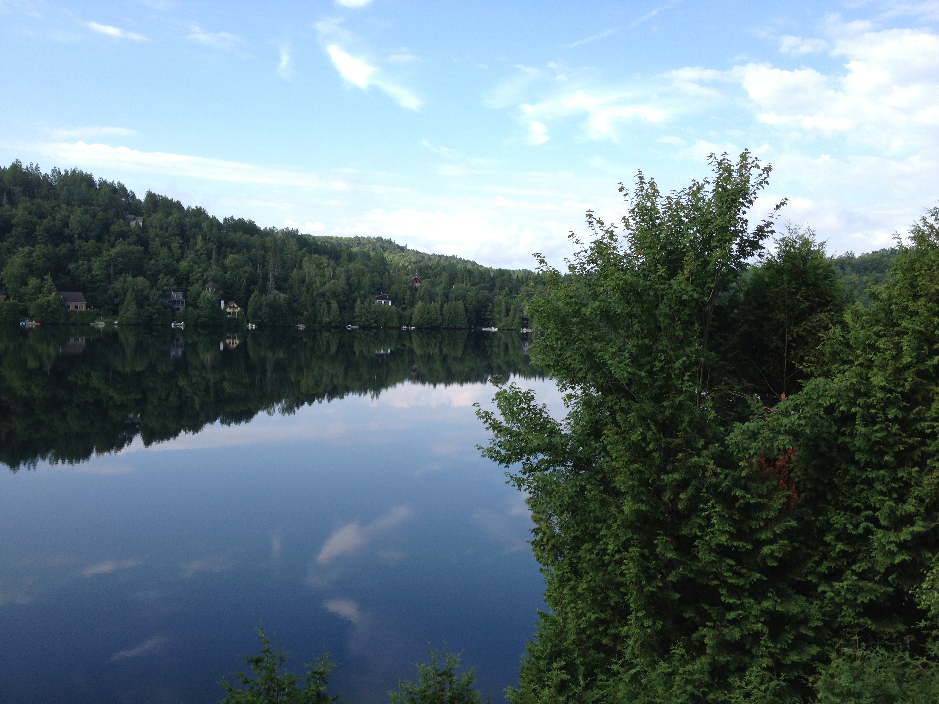 La nuit a été délicieuse dans cet endroit magique et paisible. Et nous retrouvons la vue du lac au lever du jour autour d’un petit-déjeuner copieux. Suzanne et Roger nous donnent de nombreux conseils et encore des endroits à découvrir; ce sera pour l’année prochaine. Nous faisons une balade à pied dans les alentours, vers le Lac Noir, le petit voisin du Lac Clair. Ils y connaissent un chalet qui se loue à des vacanciers … oh là, comme je m’y vois déjà bien!