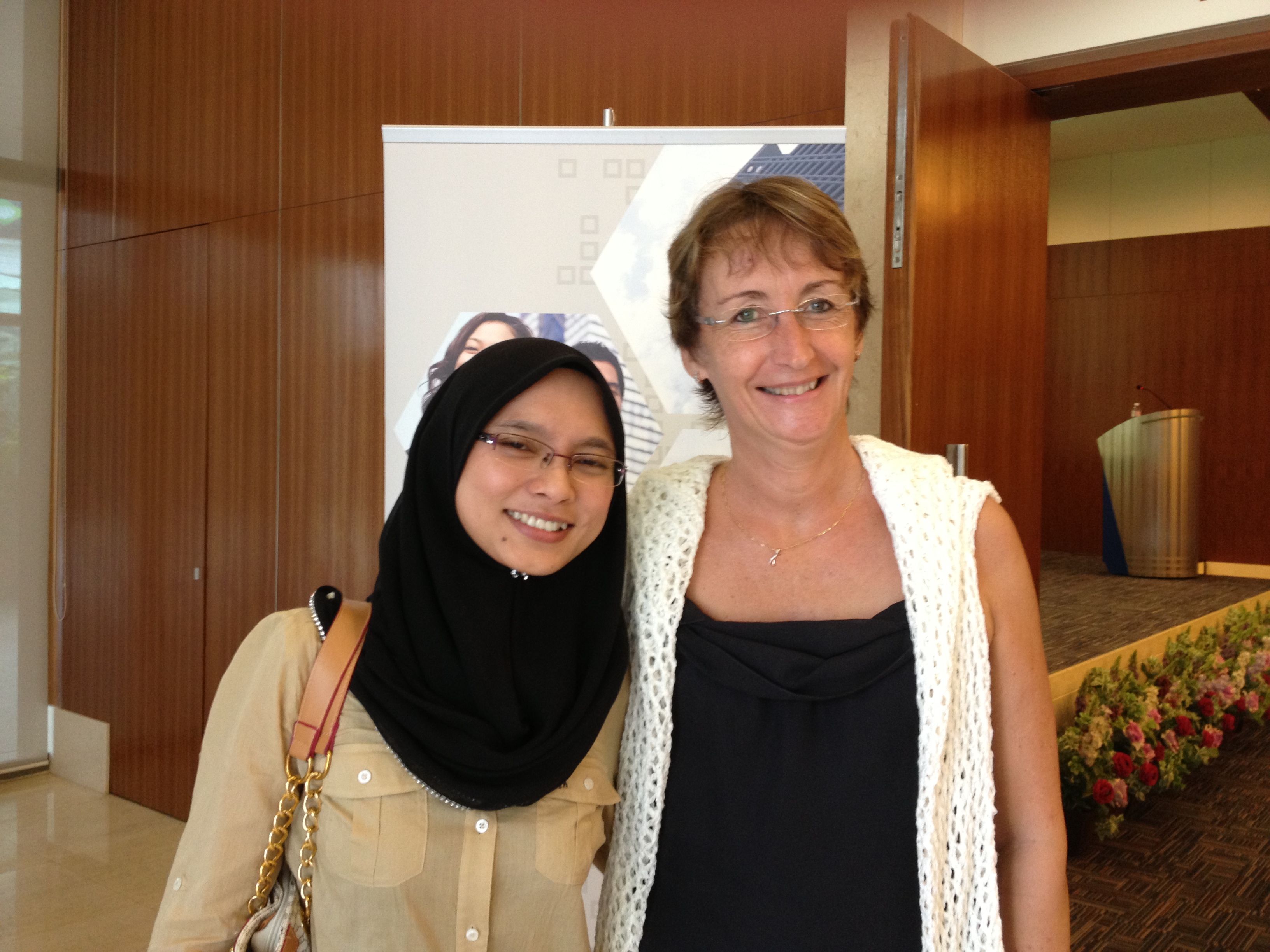 Nous traversons une avenue pour nous rendre dans l’université où se tient le workshop; le pays compte de nombreuses universités, qui se sont créées récemment car il y avait trop peu de gens formés – trente universités publiques et cinquante privées. Kuala Lumpur recense six millions d’habitants et la Malaisie, trente millions.