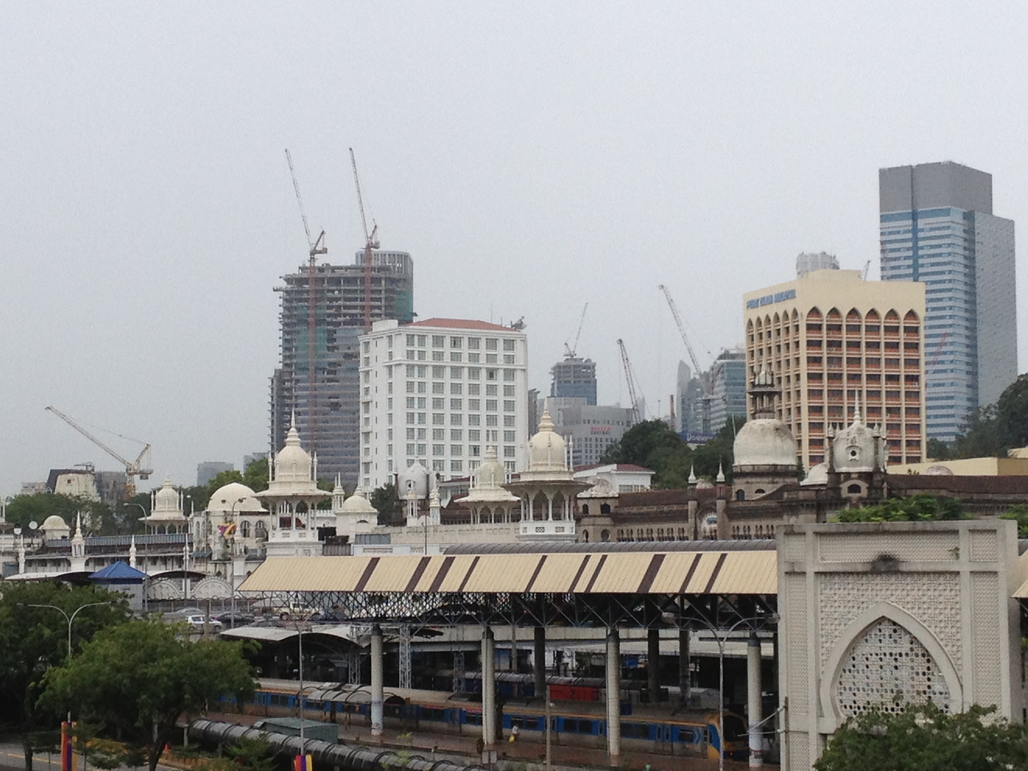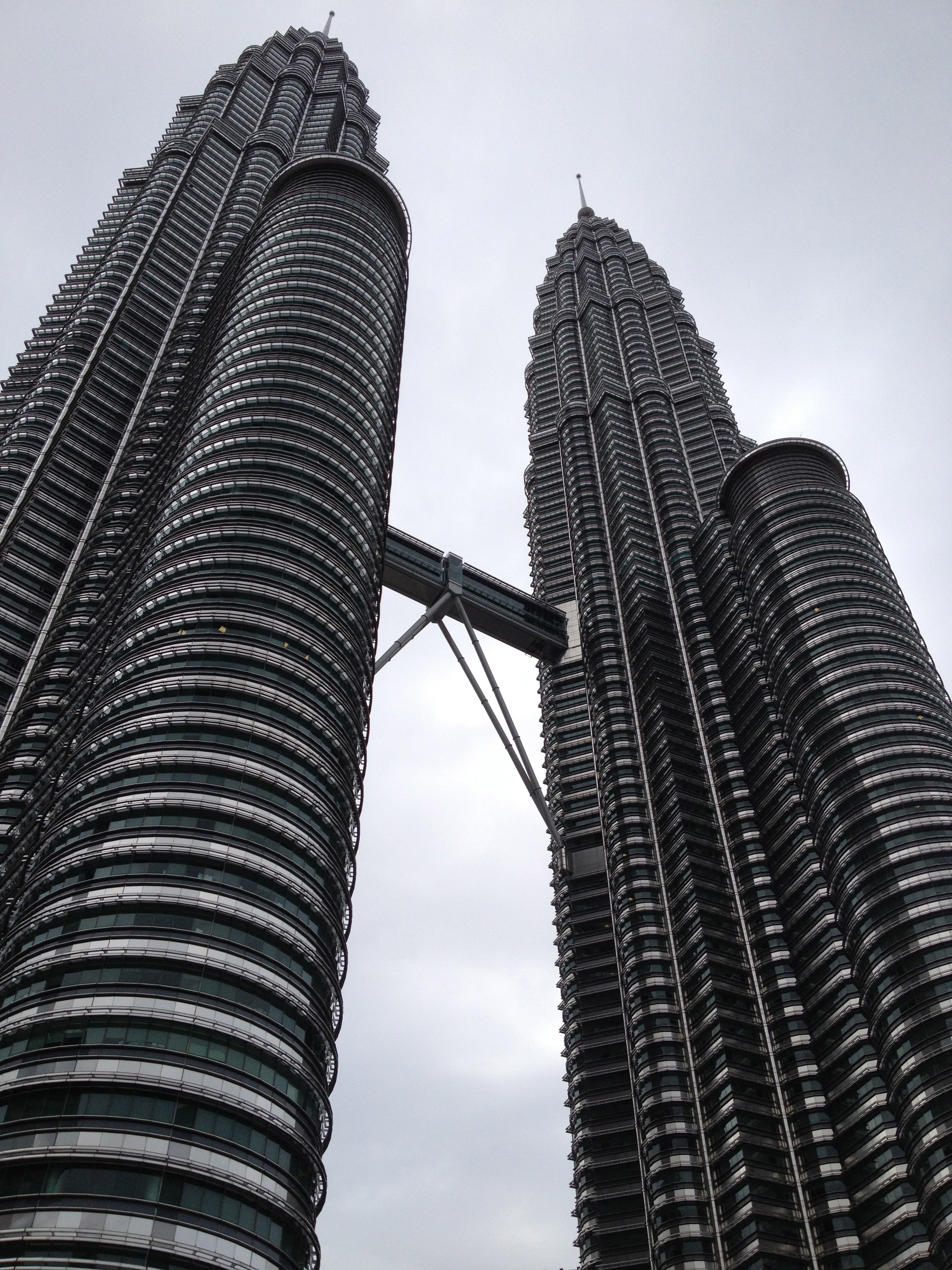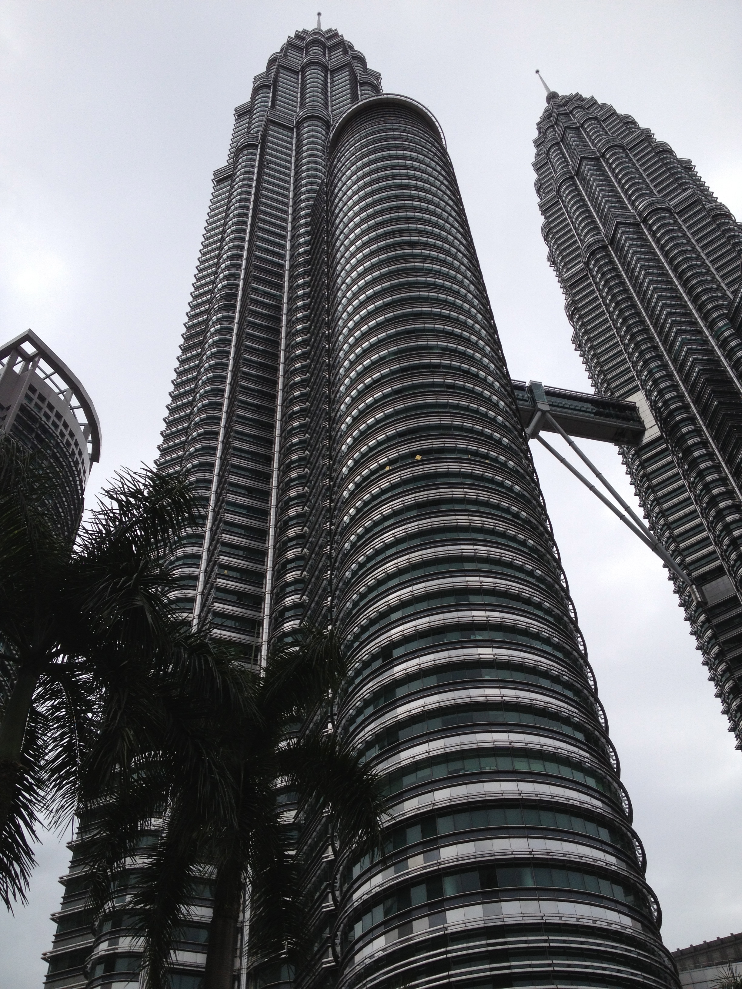 Le centre de Kuala Lumpur est principalement le siège des entreprises, des commerces et les malais préfèrent habiter à l’extérieur de la ville, dans des quartiers plus calmes, plus verts, moins onéreux. Ainsi ce sera aussi un peu une découverte pour Linda aujourd’hui, à qui chacun ce matin a voulu donner des conseils! Nous allons souvent nous déplacer en taxi et elle se fait un plaisir en négociant le prix de la course – les touristes peuvent toujours demander de payer au compteur. Les tours jumelles Petronas sont le fleuron de l’économie, le symbole du 21ième siècle pour la ville. Elles renferment un centre commercial flambant de marbres, des étages de bureaux dont ceux de la société Petronas et également une salle de concert, où se produira cet après-midi Hélène Grimaud … Les tours s’élèvent imposantes à 88 étages et une passerelle intermédiaire les relie; malheureusement il n’y a déjà plus de possibilité d’y monter aujourd’hui. Le parc aux alentours est très agréable, avec des fontaines, une pataugeoire où les enfants s’amusent, des arbres centenaires et comprend aussi un centre des congrès.