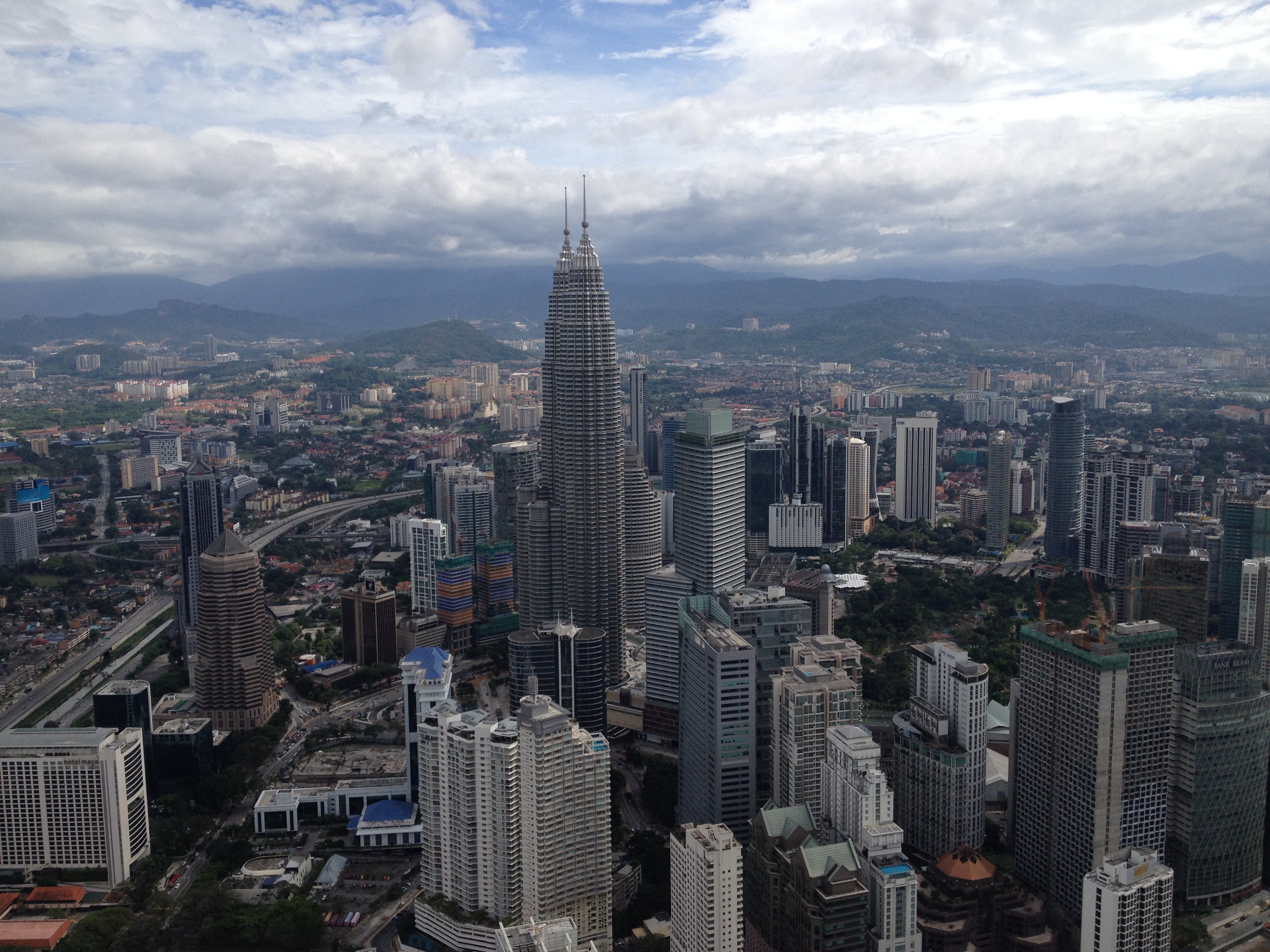 Notre chambre donne droit sur les Twin Towers, comme promis par mon frère …, et le spectacle est grandiose! Et une fois encore les tentures resteront ouvertes cette nuit.