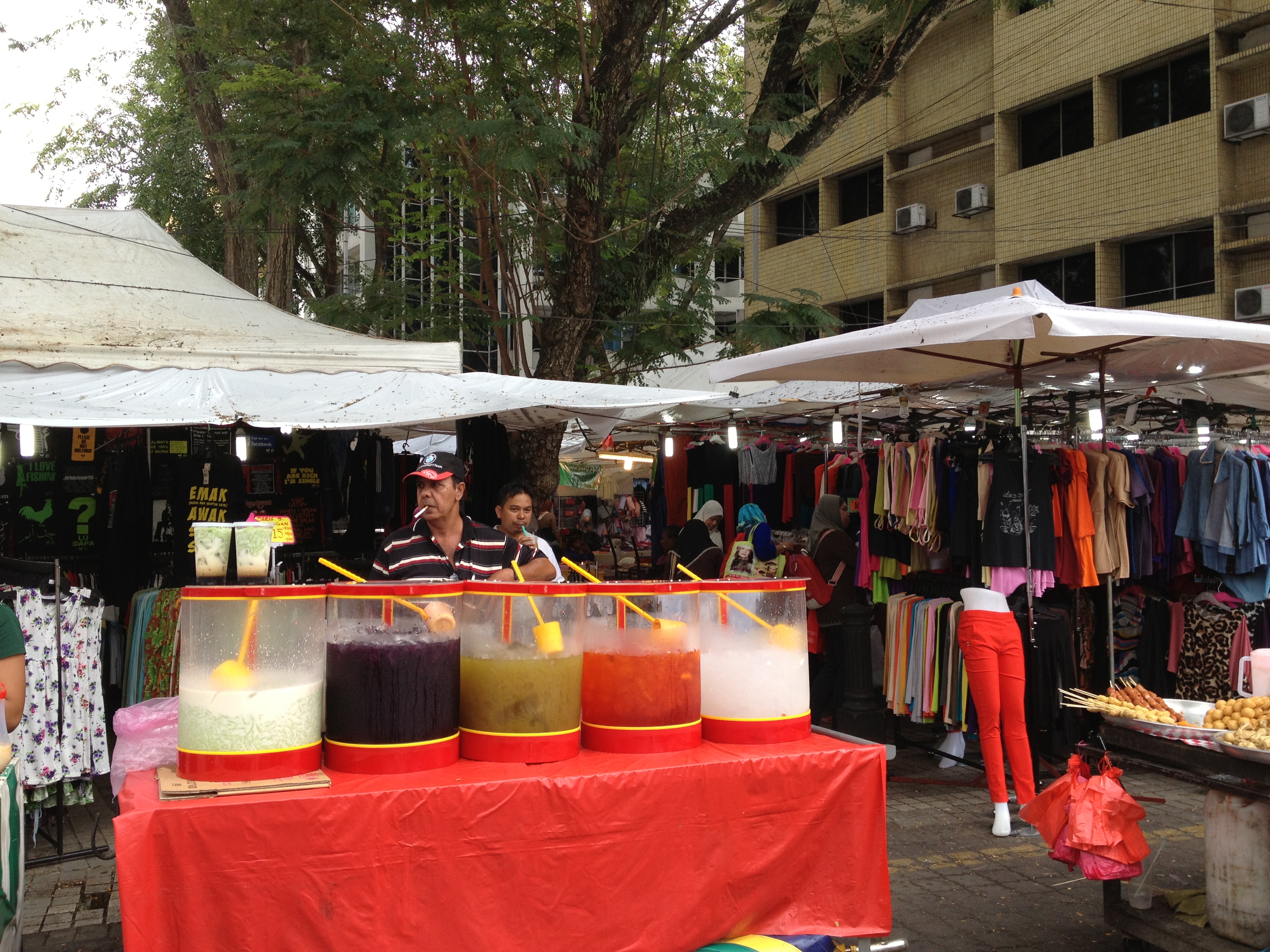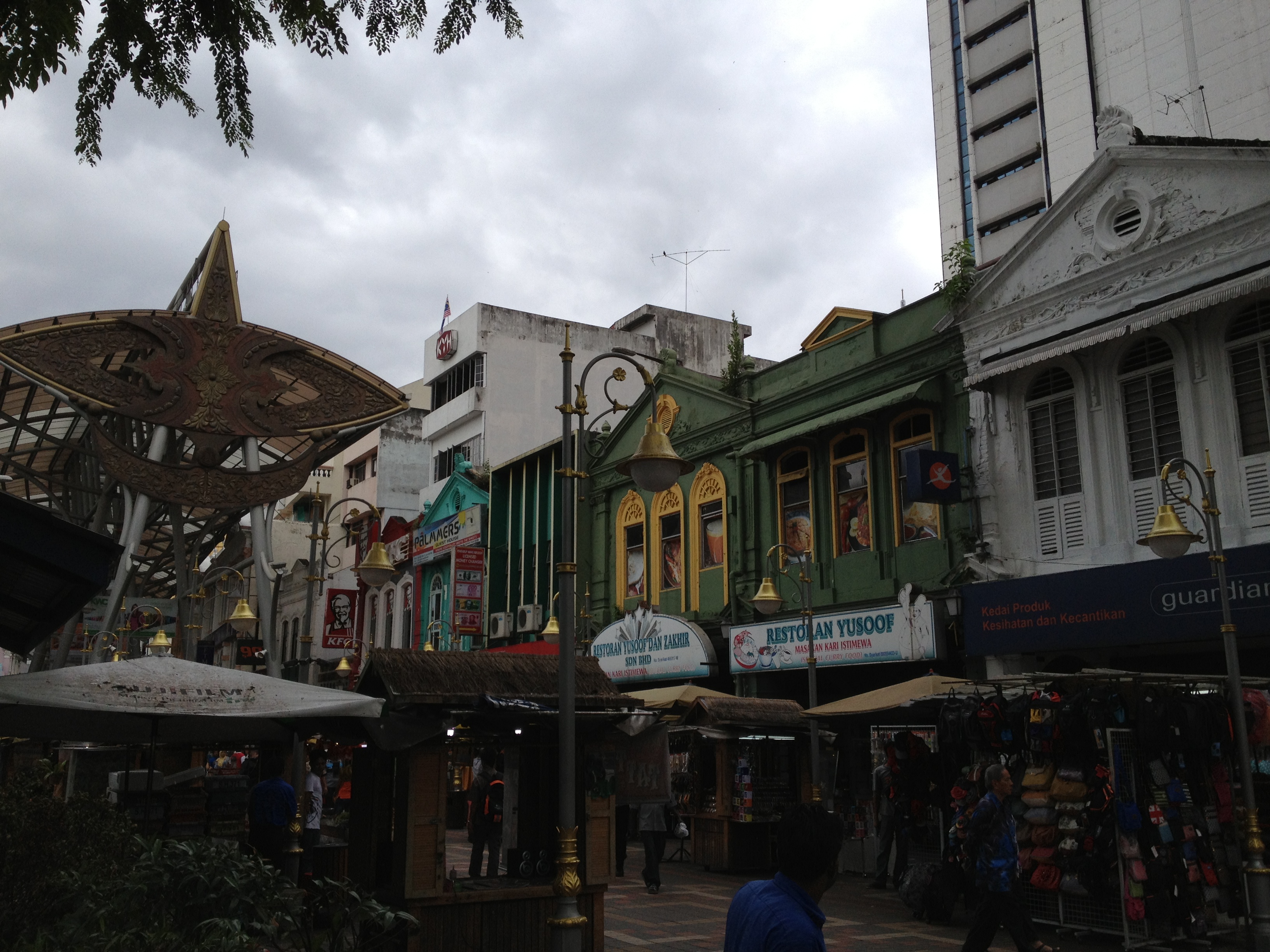 En direction du sud-ouest nous nous faisons déposer au Central Market, dont tous m’ont parlé ce matin. Ce grand marché couvert est très ancien et si à l’époque, on y vendait fruits, légumes, poissons, épices … de nos jours, il est transformé en un énorme centre pour le textile, les bijoux, les antiquités, les souvenirs. Je suis émerveillée par ces couleurs, les parfums d’ambiance, les pashminas ou les fouloirs en soie dont on ne sait lequel choisir, les pantalons Aladin, les batiks dont je suis fan, les tuniques et les robes, les colliers et bracelets, les petites boîtes ou coupelles … Woah! Il faut absolument que je me raisonne, les bagages pour le retour en Suisse seront limités. C’est tellement vivant, rayonnant … les vendeurs et vendeuses sont quelquefois un peu insistants mais rien de comparable avec la Tunisie ou l’Inde, me dit Linda.