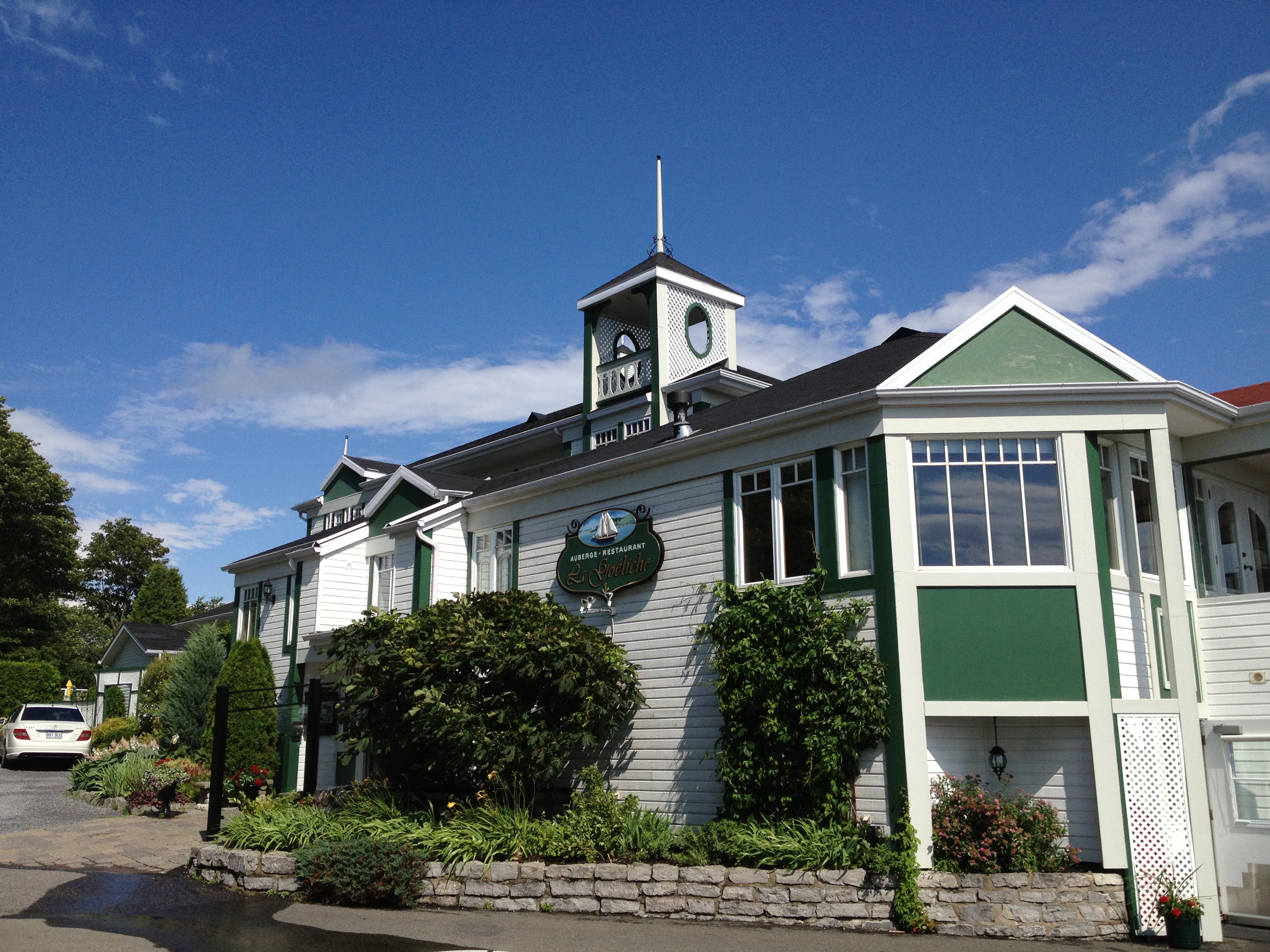 Ce complexe hôtelier fut construit avec des matériaux bruts et naturels, à l’emplacement de la plus grande ferme en bois au Canada, il comprend cinq bâtiment à l’architecture et au design modernes, tout en laissant paraître des éléments de la ferme d’antan. Les chambres ont des décors très variés et les clients peuvent acheter tout ce qu’il y a dans la pièce. Il y a trois restaurants offrant des produits régionaux, des légumes de leur jardin mais aussi un Spa et une gare où arrive un train faisant la navette entre Baie-St-Paul et Petite-Rivière-St-François un peu plus au sud.