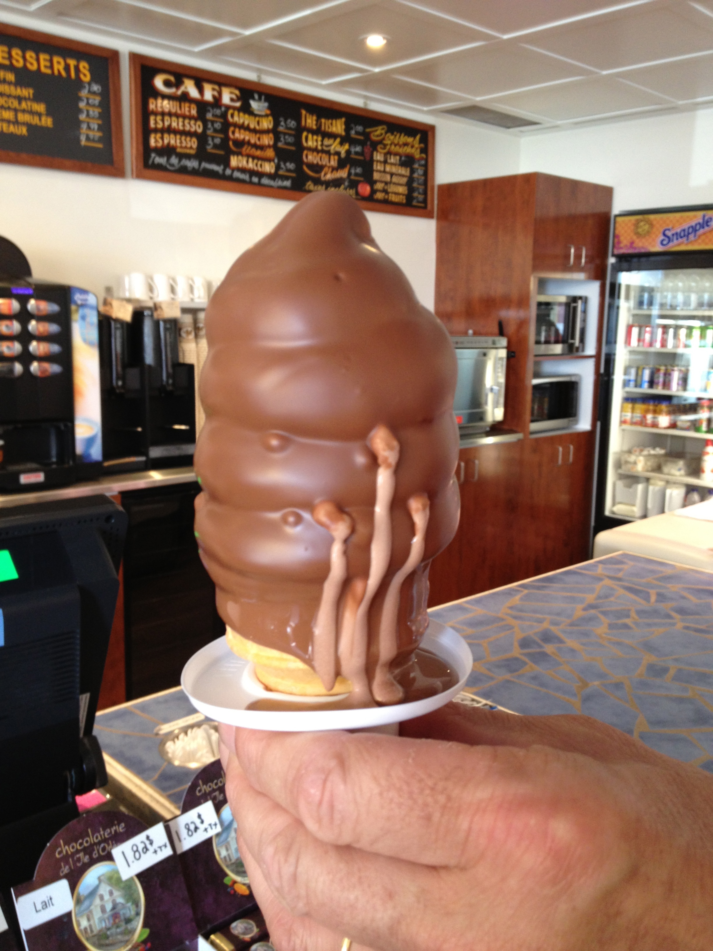 Ensuite c’est la découverte des galeries d’Art; il y en a ici à Baie-St-Paul un nombre impressionnant, qui présentent les œuvres d’artistes canadiens. La plupart sont installées dans des maisons anciennes de personnalités du coin et cela apporte encore un charme supplémentaire. Un galeriste prône les oeuvres de Bruno Coté; il nous dit : ‘on achète un artiste vivant par coup de coeur et un qui nous a quittés pour investissement’ ! Le livret sur cette petite localité en répertorie une vingtaine et je ne manque pas d’aller montrer à Olivier la plus typique, celle de la maison de René Richard.
