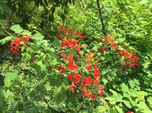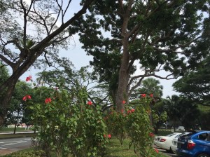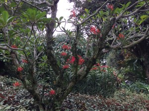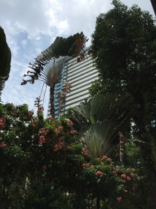 Chaque fois je m’étonne devant cette végétation superbe, ces fleurs colorées toute l’année, ces arbres géants tortueux où se nichent des orchidées sauvages tout là-haut. Le taux d’humidité est très élevé – en descendant du bus, mes lunettes sont entièrement embuées; ni le maquillage ni le brushing ne résistent bien longtemps. La transition est grande en pénétrant dans un centre commercial, dans le métro ou le bus mais par contre il nous semble que la climatisation est moins brutale que par le passé. J’ai toujours dans mon sac un pashmina, un léger pull pour me couvrir si je dois rester un moment dans un endroit climatisé.