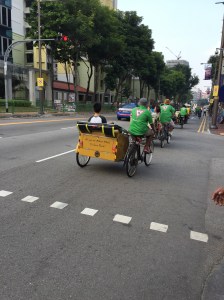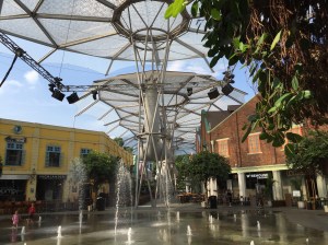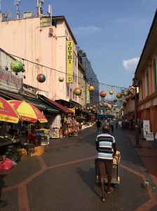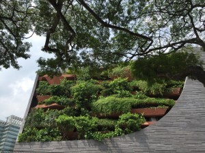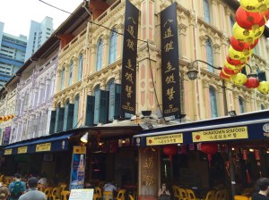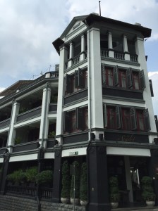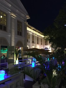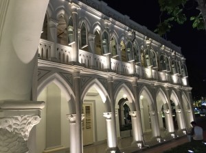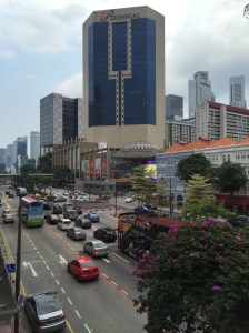 Singapour est indéniablement très verte mais elle est aussi une vraie forêt de buildings! C’est surtout en l’observant de haut que cela marque le plus. Et les ouvriers des chantiers ne sont jamais au chômage ici; il y en a quand même souvent deux ou trois qui regardent celui qui travaille – des constructions nouvelles énormes sont toujours au programme et avec elles, des lignes de métro qui se créent ou qui s’allongent. Les surprises ne manquent pas pour nous, la plus triste cette fois sera la grande rénovation en cours du Raffles – pas de Sling dans la cour mythique cette année. Au coin opposé du carrefour, Chijmes a lui retrouvé toute sa splendeur et son offre variée de pubs et de restaurants.