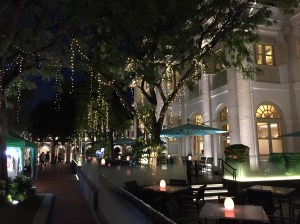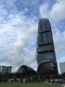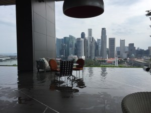 Un de mes plaisirs en Asie reste les séances de manucure-pédicure et les massages – les asiatiques ont des mains de fée qui me transportent; outre mes adresses préférées, j’en découvre de nouvelles à chaque visite. Le shopping n’a pas fait de gros trous dans le budget (principalement souci de taille vestimentaire;-) mais flâner dans les centres commerciaux ou sur Orchard reste plaisant et c’est mieux en semaine que le samedi pour le monde. Au dernier étage du centre Ion, j’ai déniché le Salt Grill & Bar qui offre une vue vertigineuse sur la ville – nous y prolongeons notre dégustation de bière ou vin, en attendant le retour du sec après un orage fracassant. Le climat nous a paru plus agréable que par le passé, moins suffocant, plus aéré .. avec même parfois la sensation d’un petit vent rafraîchissant … est-ce notre corps ou notre mental qui se souvient et s’adapte ?