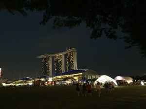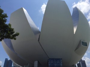 Dimanche après-midi, j’emmène Yves vers Marina Bay Sands, passage obligé; nous y achetons des tickets pour le festival de jazz et installés sur l’esplanade devant le centre commercial (d’ailleurs sur une scène qui s’élève comme une partie du ponton !), ce sera un très agréable moment musical dans une ambiance festive et calme à la fois. Les services de sécurité et de catering sont aux petits soins pour nous, la technique peine à se mettre en route mais une fois la mise au point affinée, le son déménage et parmi les artistes, ce sera Nik West, son hommage à Prince, sa toilette extravagante, son humour, son décor de scène, son rythme … qui nous enchantent et nous font oublier tout … sur des notes endiablées, bouquet final de notre séjour singapourien !