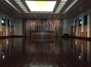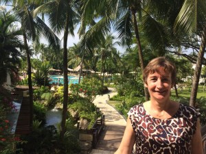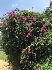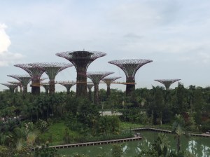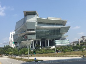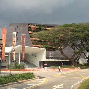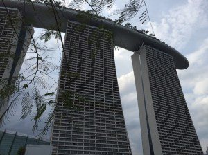 Le nouveau stade national, inauguré en juin 2014, est une réalisation dont Singapour est très fière ; le toit ainsi que les gradins sont rétractables, il permet d’accueillir jusqu’à 55’000 spectateurs pour du cricket, du football, du rugby, des concerts, des manifestations nationales. Le coin est magnifiquement aménagé avec une esplanade de palmiers (Marco pourrait se croire à Cannes!) et une vue sur les buildings de Singapour. La passerelle piétonnière enjambe la Geylang River qui rejoint ici la Kallang River, avant de se jeter dans Marina Bay. Et je pourrais même rejoindre en marchant le barrage – dommage qu’il fasse vraiment si chaud, il semble que nous soyons arrivés pendant les jours de canicule, avec un ressenti de 40 degrés et même plus.