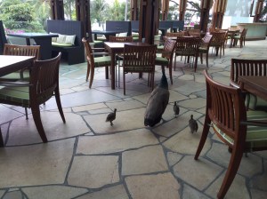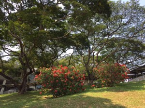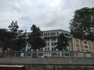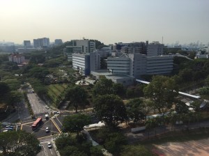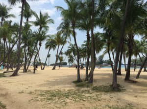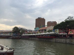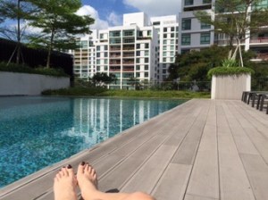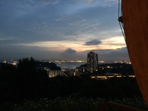 Ce soir nous sommes invités à dîner chez des amis qui habitent Pebble Bay, un quartier de condos résidentiels (aux toits rouge brique) à East Coast, qui à l’opposé de West Coast, permet des constructions plus élevées pour une vue dégagée sur l’océan et ses bateaux alors que de notre côté – plus populaire – nous profitons de tous les chantiers et grues du port de Singapour, probablement l’un des plus importants de porte-containers au monde.