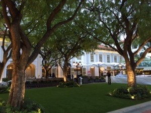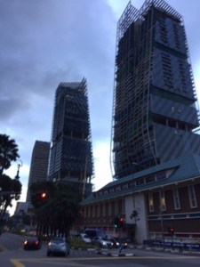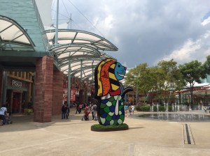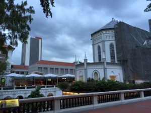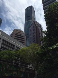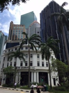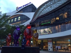 J’atteins Orchard par Stevens et Scott road – toujours de superbes buildings luxueux, de belles villas black&white traditionnelles, dans une végétation abondante … qui, je le sais, sert de logis aux serpents et aux cicadas, ces cigales d’Asie qu’on n’aperçoit jamais et qui sifflent d’un son aigu sans arrêt. Orchard, l’avenue du shopping de luxe, ne change pas; les devantures sont extravagantes comme dans mes souvenirs.