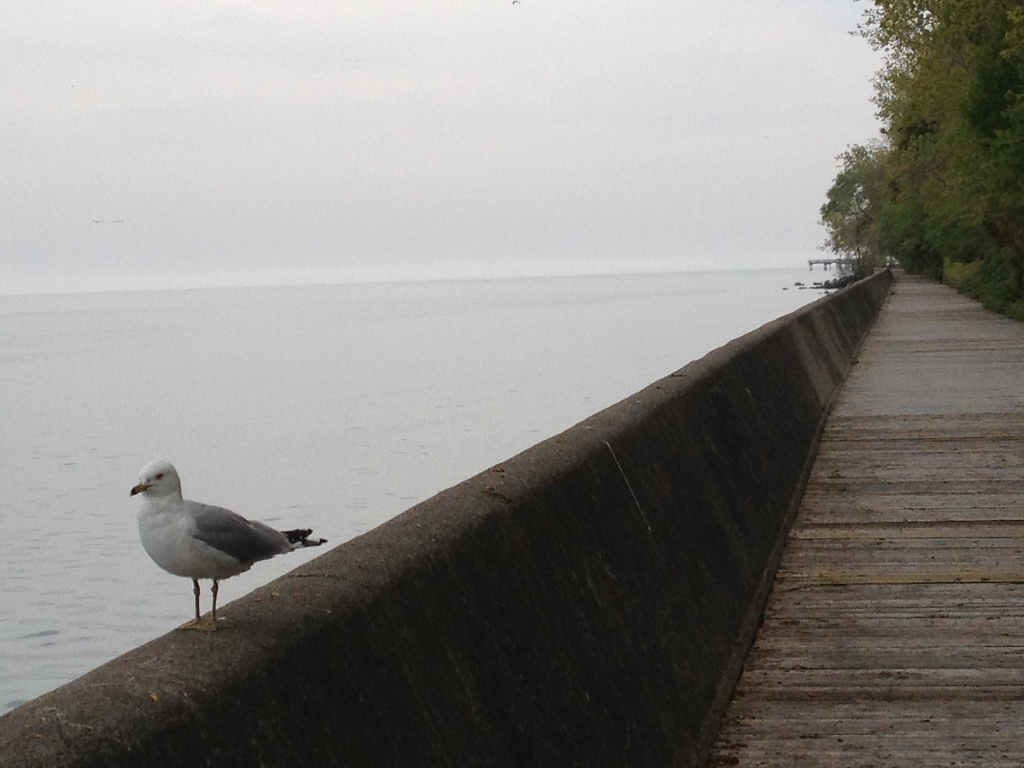 Il y a quelques plages, désertes ce jour et une longue promenade aménagée sur un chemin de bois en bordure du lac; les mouettes me tournent autour, les oiseaux chantent, j’observe le vol en ligne des canards et cela me fait presque penser à mes balades délicieuses à Préverenges avec Cristina ou Régula au bord du Léman.