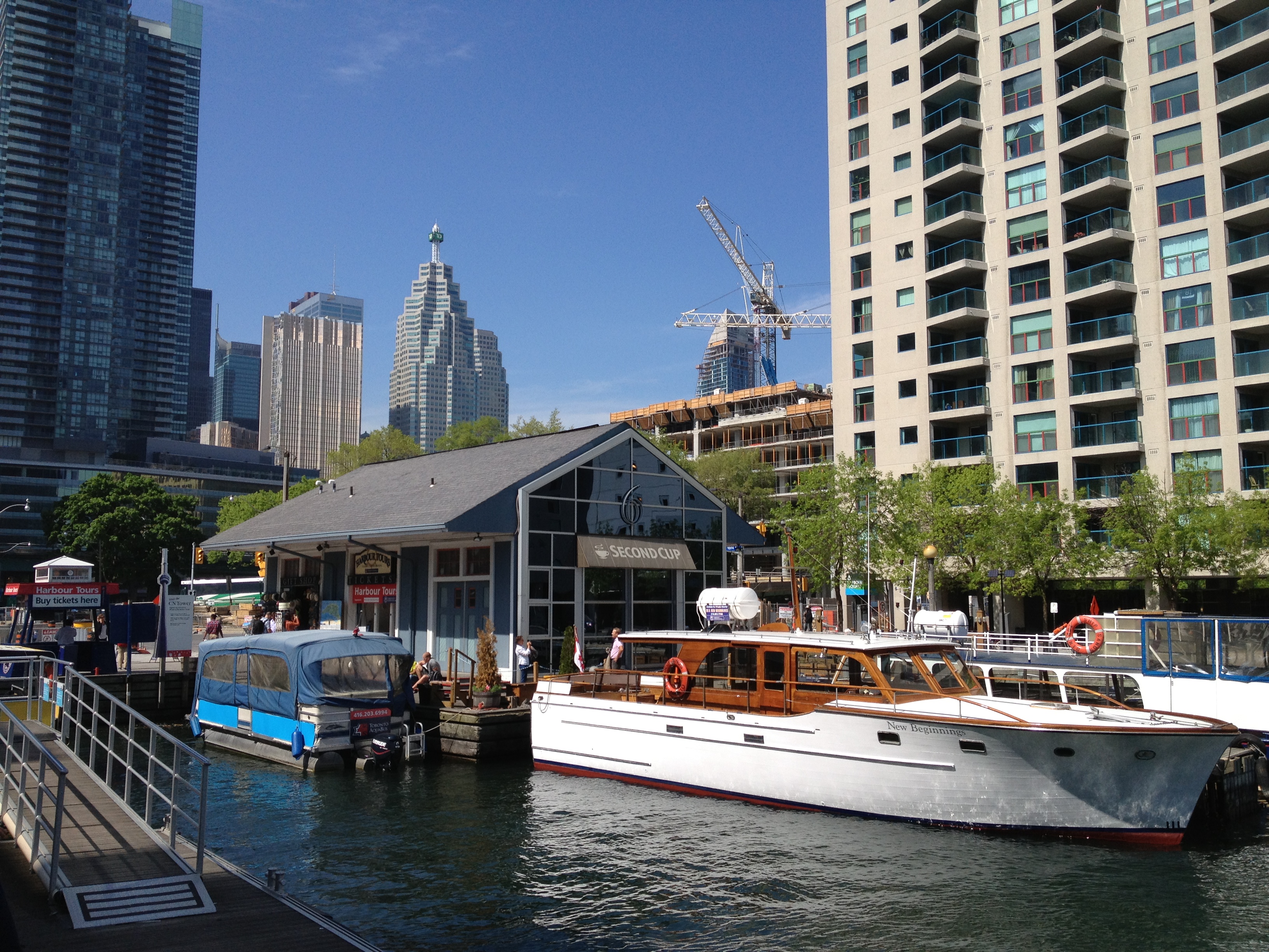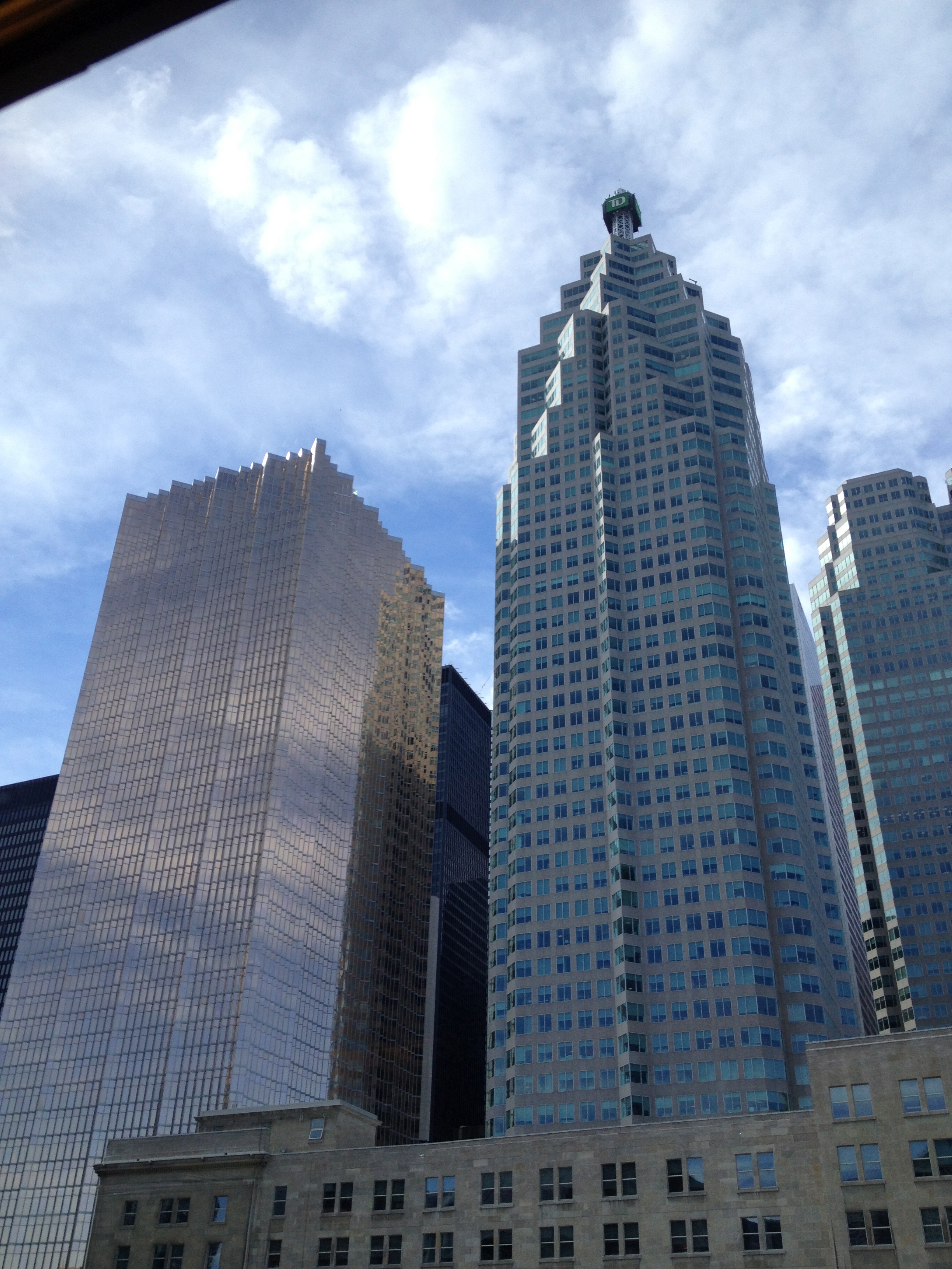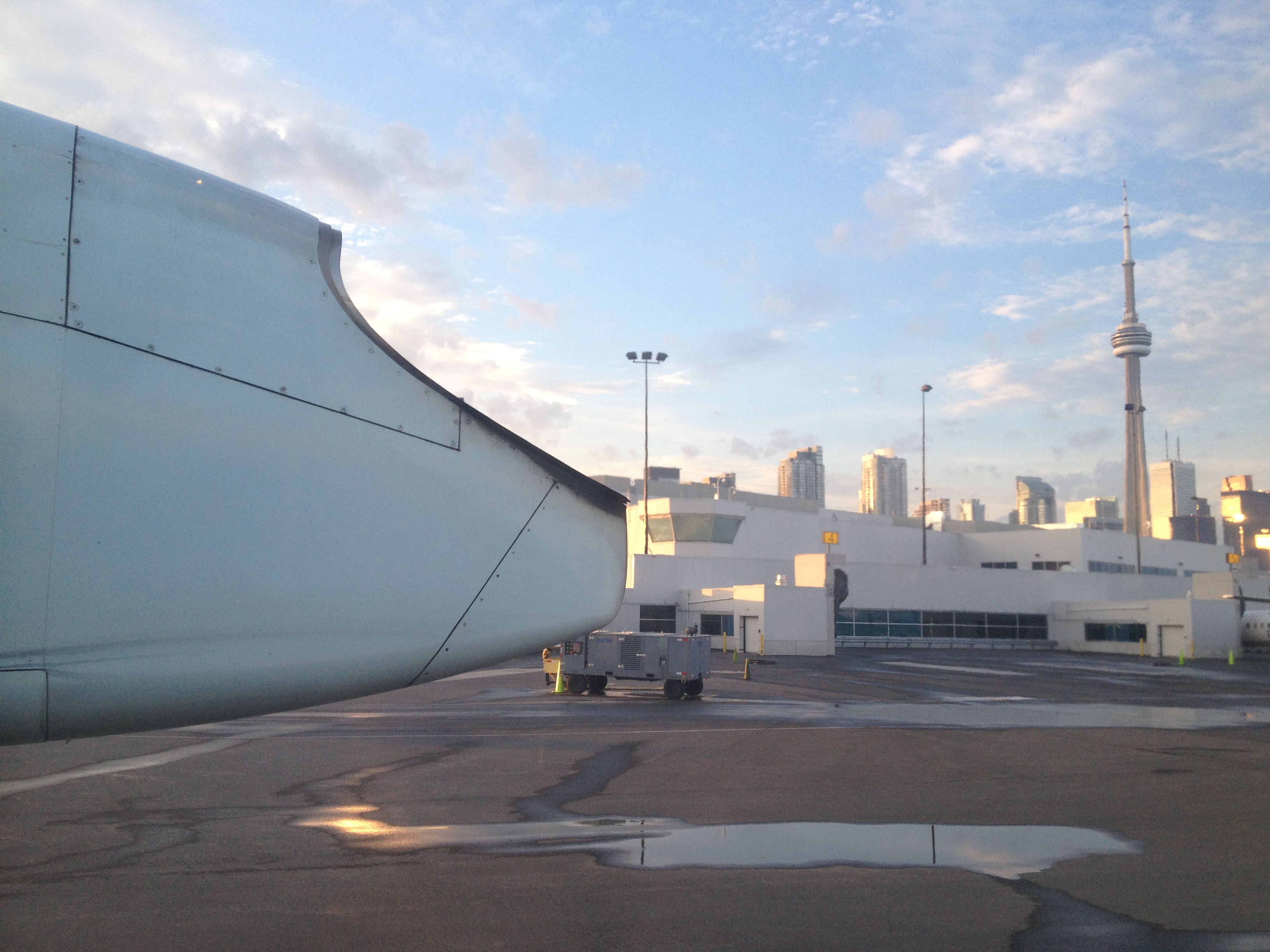 Yves a lui passé une bonne journée de travail, son séminaire du soir a eu beaucoup de succès à la ISchool. Nous nous retrouvons à l’hôtel pour partir ensemble chercher l’avion qui nous ramène à Montréal. Alors là, c’est un record de rapidité et d’efficacité. Le taxi nous emmène au hall du Porter AirPort, là un bac nous fait traverser le petit canal et au guichet d’enregistrement de Air Canada Express, l’employé nous propose une place dans le vol une heure plus tôt que prévu, soit dans dix minutes. Un contrôle de sécurité rapide, pas de longs corridors, nous montons à bord d’un avion Bombardier à hélices, qui va décoller trente minutes après notre départ de l’hôtel. Peu de passagers, un snack et une boisson, presque comme un jet privé et nous nous envolons par-dessus les îles où je laisse mes doux souvenirs de Toronto.