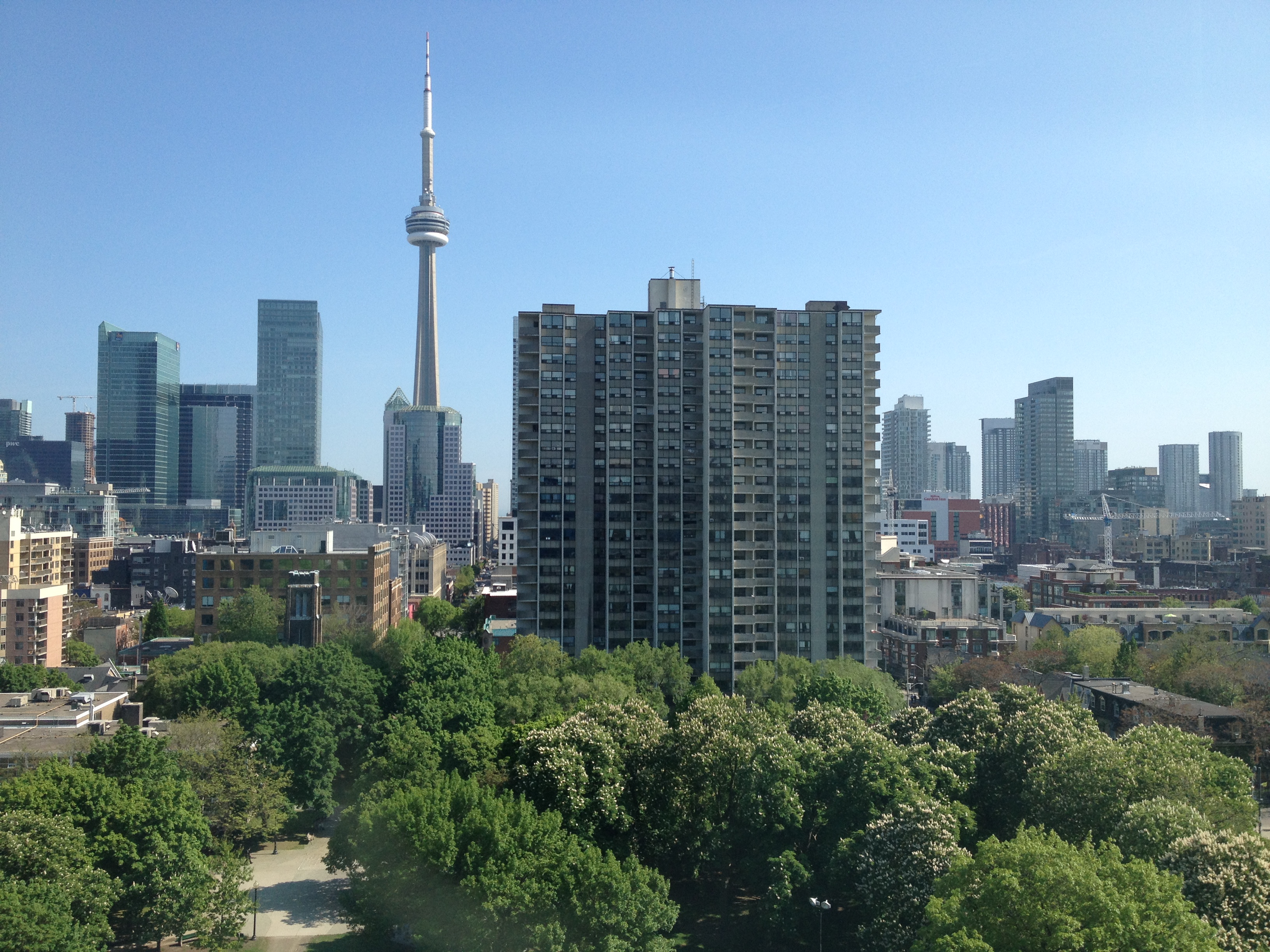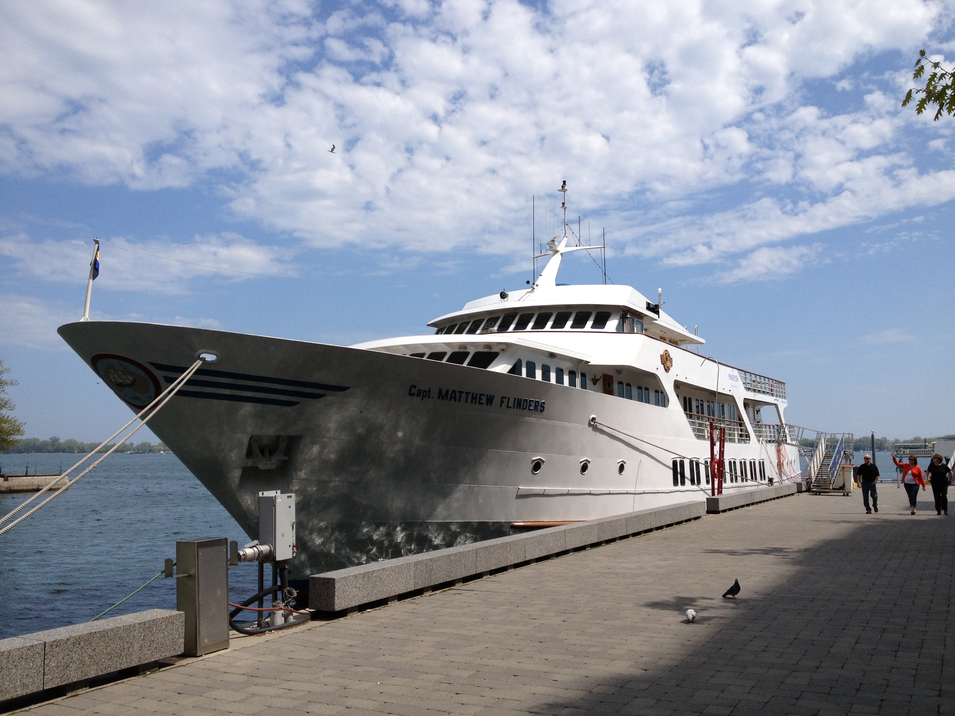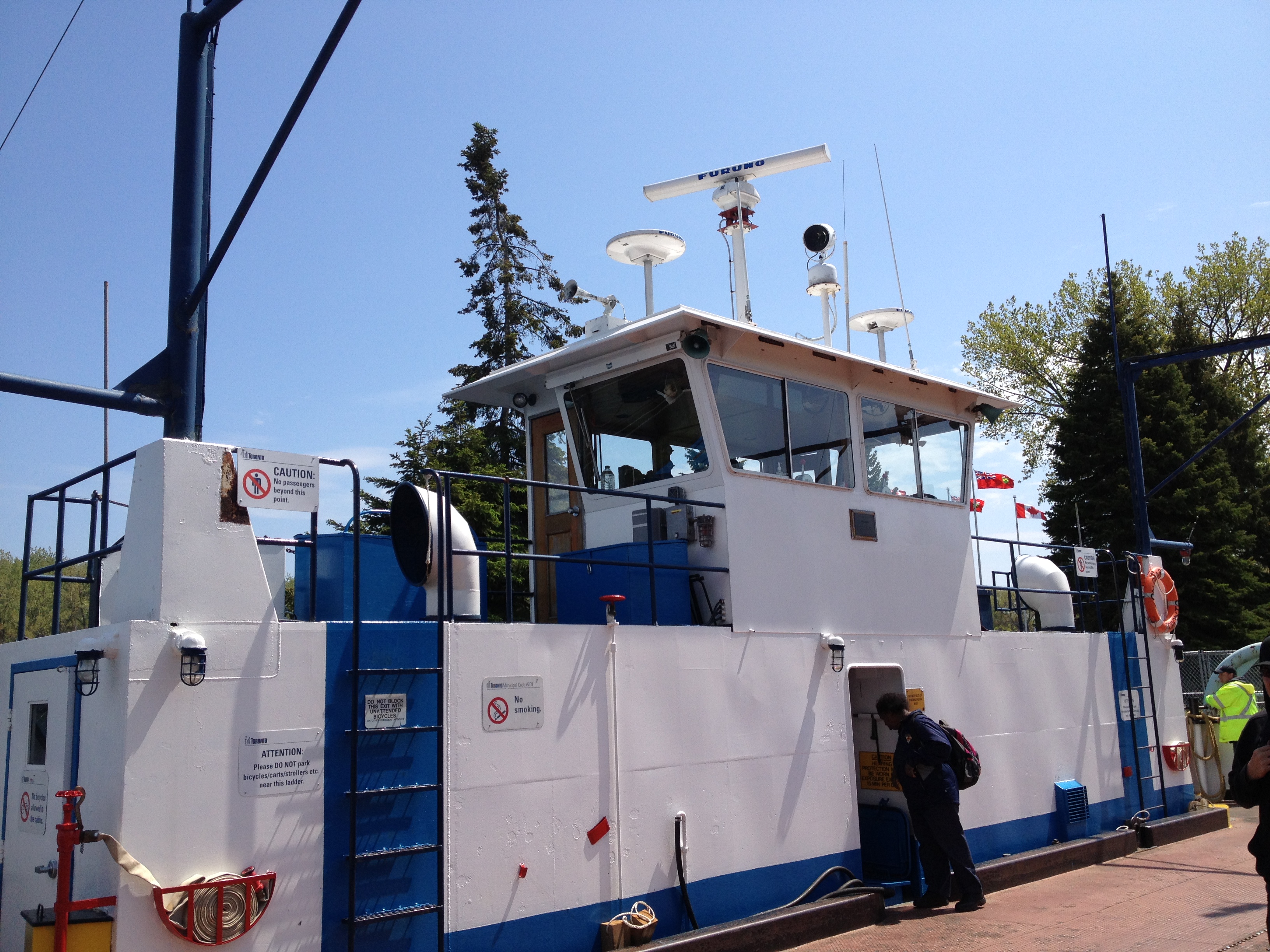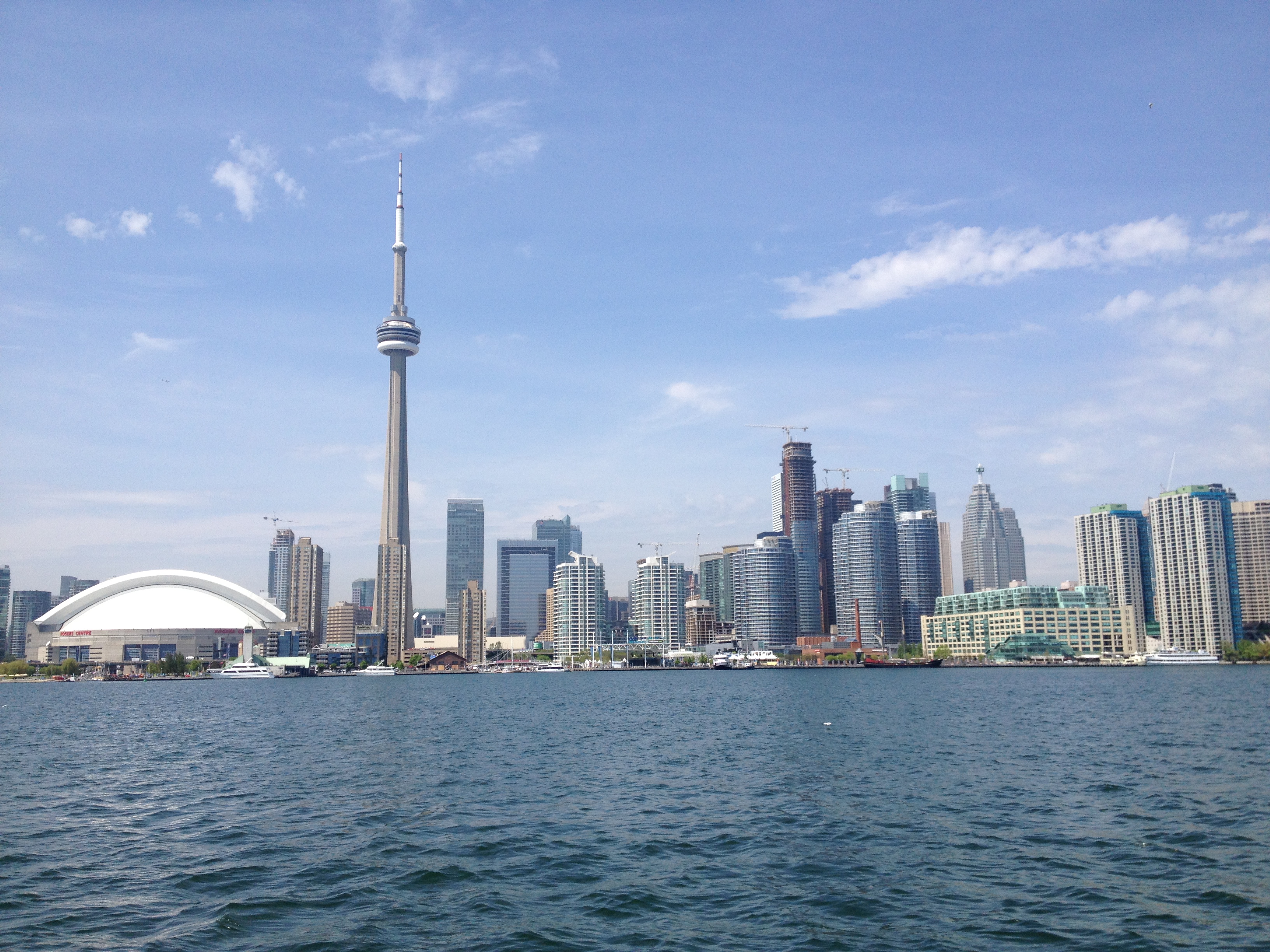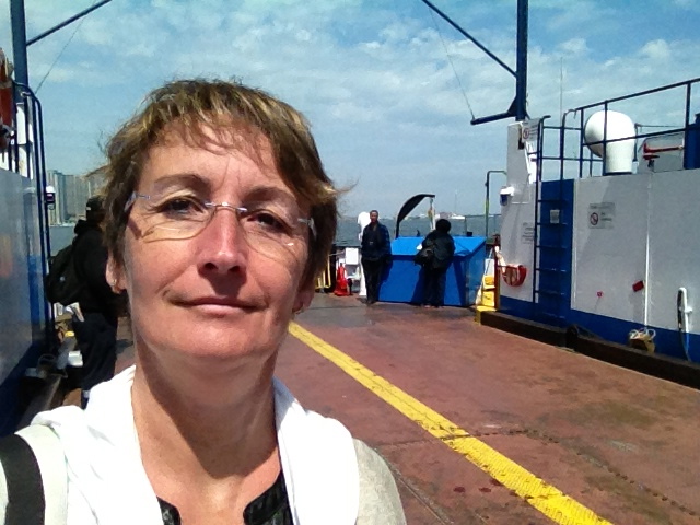 J’ai marché cinq kilomètres pour atteindre Halan’s point, l’autre extrémité du croissant et juste derrière la clôture, le petit aéroport urbain Porter. Les oies se dandinent en bandes sur les pelouses – vive la semelle de mes chaussures ce soir – et traversent les rues sans se soucier des véhicules; elles s’octroient la priorité! Un monument célèbre un rameur d’aviron installé ici au bout de l’île qui prit son nom; Ned Hanlan remporta de nombreuses compétitions de par le monde. Je me retrouve ainsi proche à vol d’oiseau de la CN Tower et du Centre Rogers, tels qu’ils apparaissent sur les photos typiques de Toronto. Le vent a balayé les nuages, il fait tellement beau quand je décide de retraverser le bras d’eau, cette fois à bord d’un bac, en compagnie d’ouvriers qui rentrent chez eux après leur journée de travail.