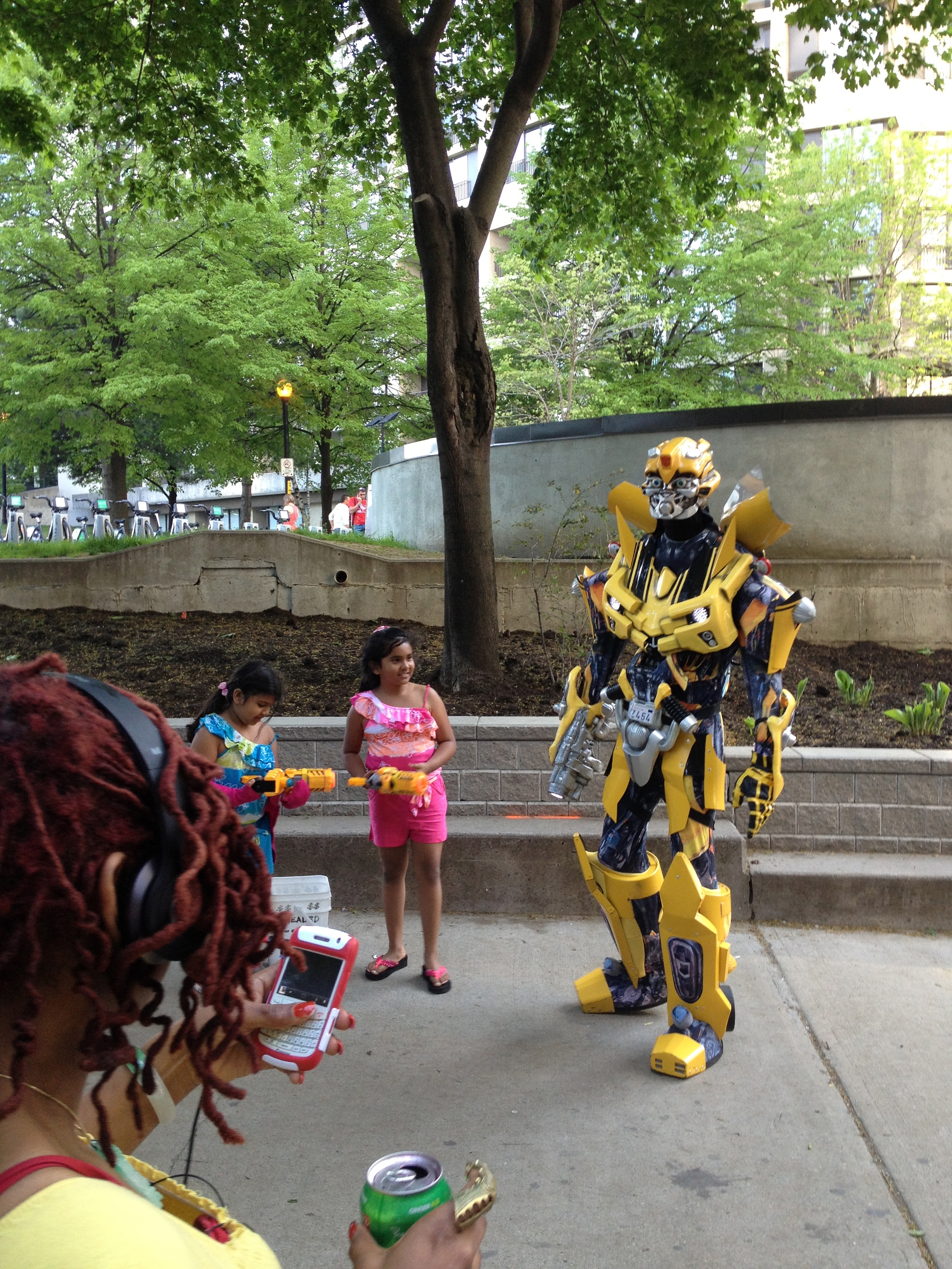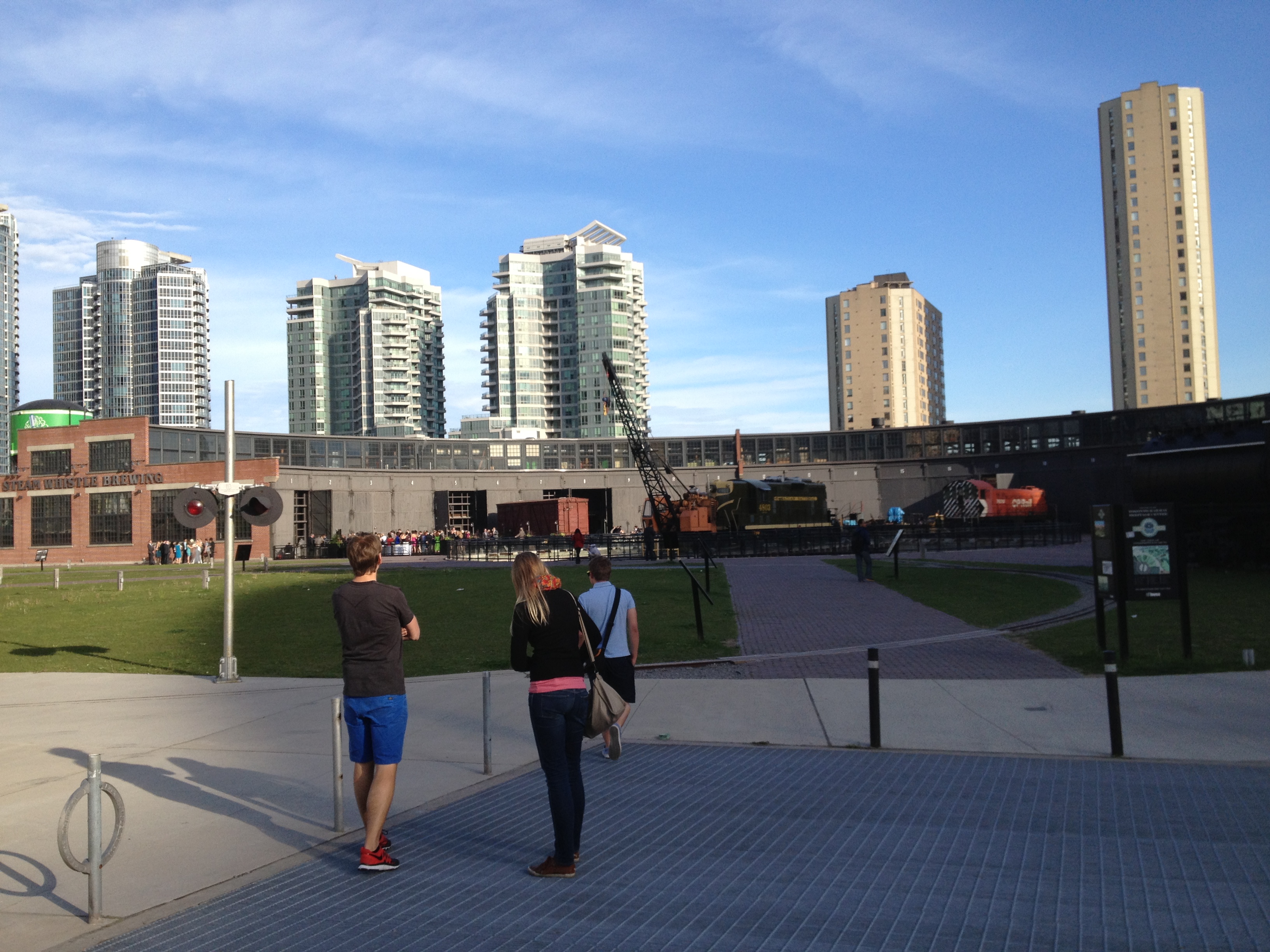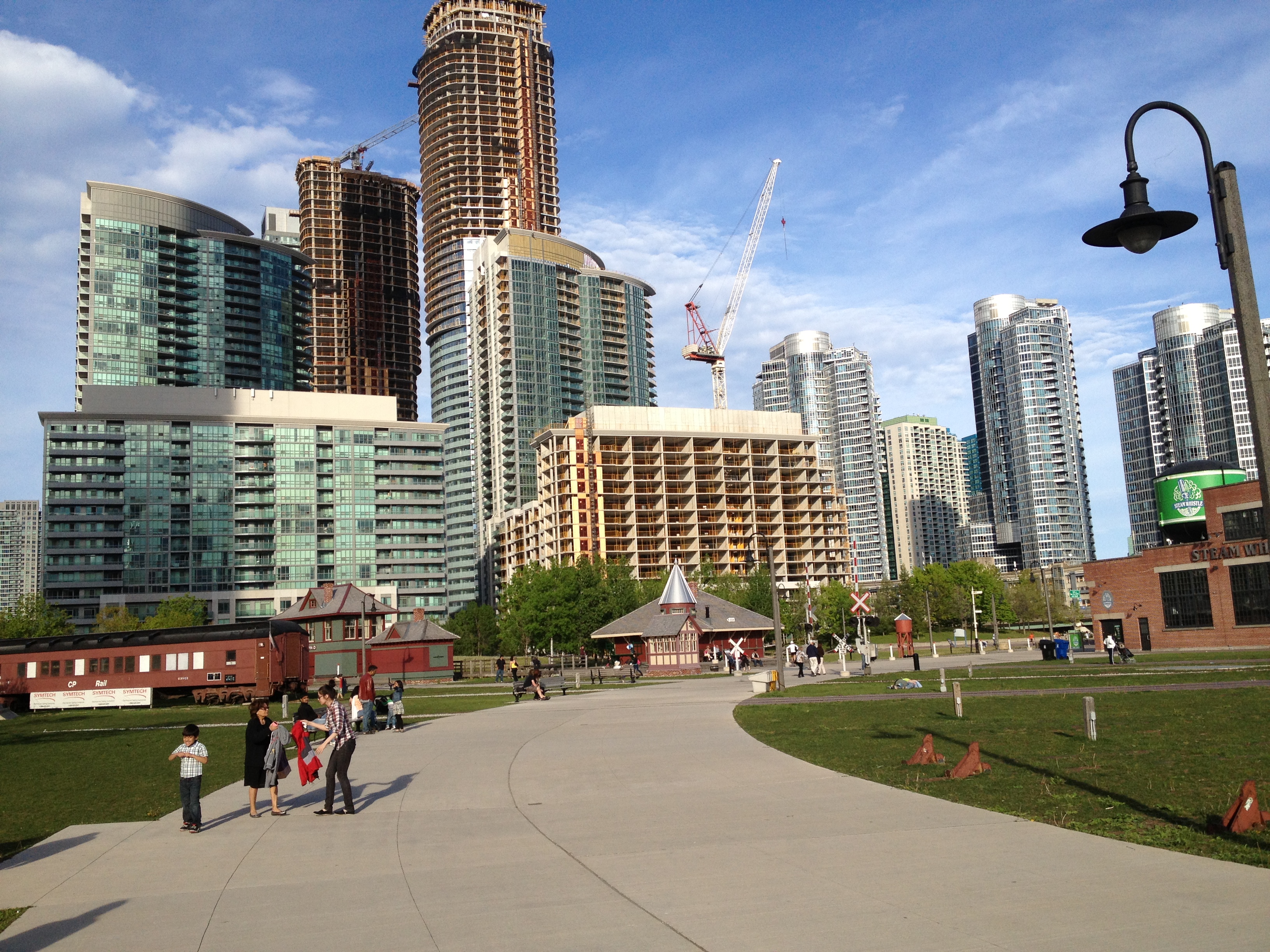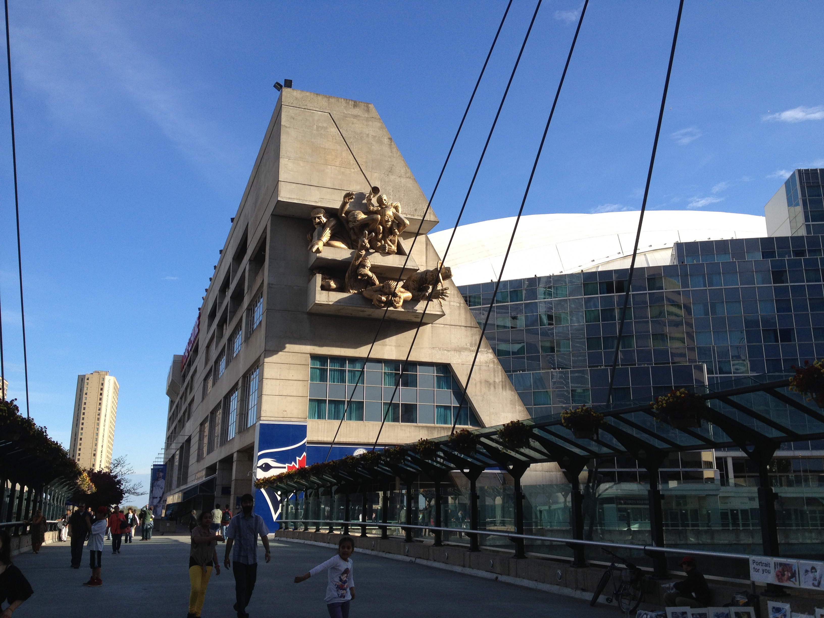 J’ai marché cinq kilomètres pour atteindre Halan’s point, l’autre extrémité du croissant et juste derrière la clôture, le petit aéroport urbain Porter. Les oies se dandinent en bandes sur les pelouses – vive la semelle de mes chaussures ce soir – et traversent les rues sans se soucier des véhicules; elles s’octroient la priorité! Un monument célèbre un rameur d’aviron installé ici au bout de l’île qui prit son nom; Ned Hanlan remporta de nombreuses compétitions de par le monde. Je me retrouve ainsi proche à vol d’oiseau de la CN Tower et du Centre Rogers, tels qu’ils apparaissent sur les photos typiques de Toronto. Le vent a balayé les nuages, il fait tellement beau quand je décide de retraverser le bras d’eau, cette fois à bord d’un bac, en compagnie d’ouvriers qui rentrent chez eux après leur journée de travail.