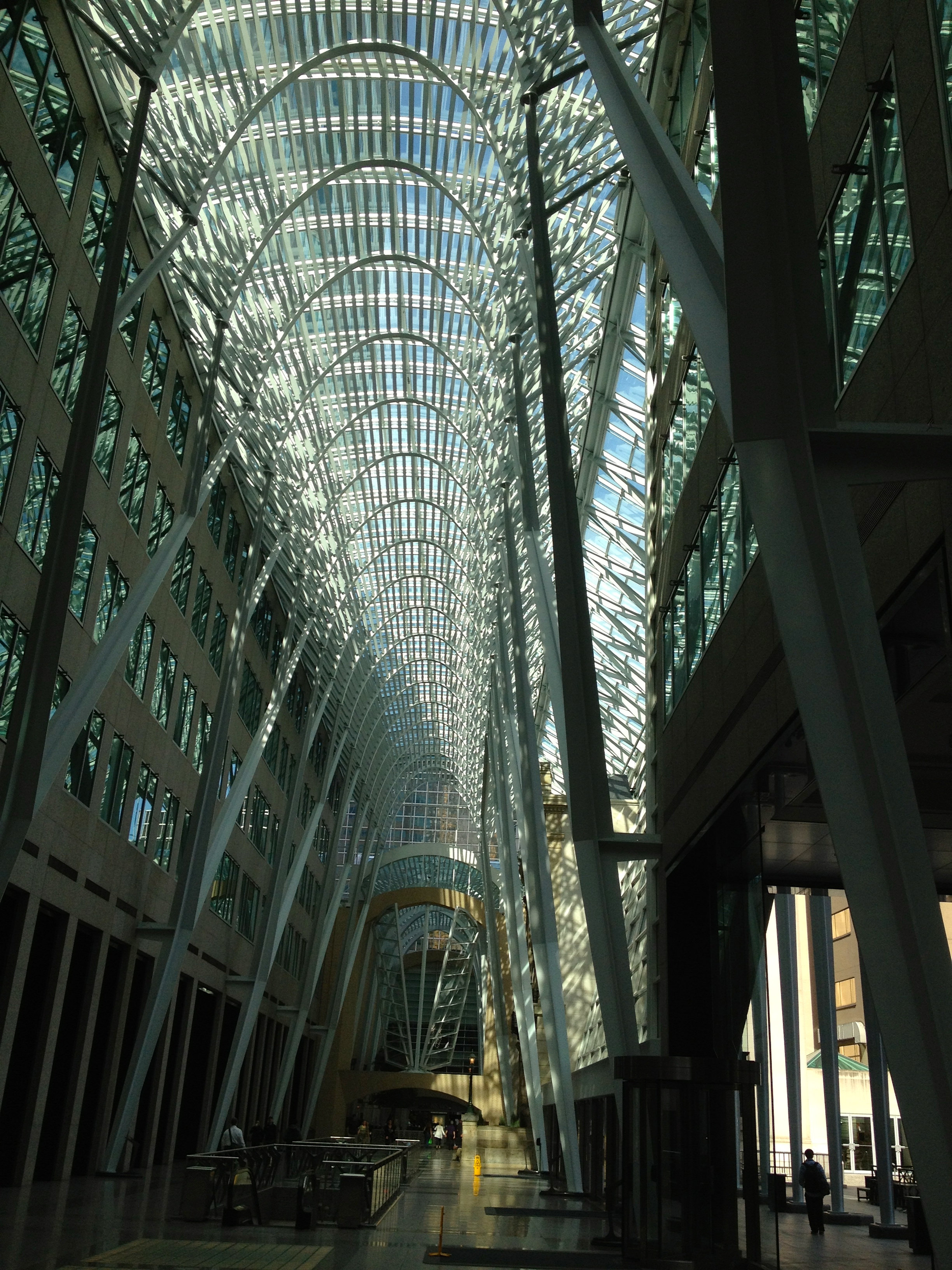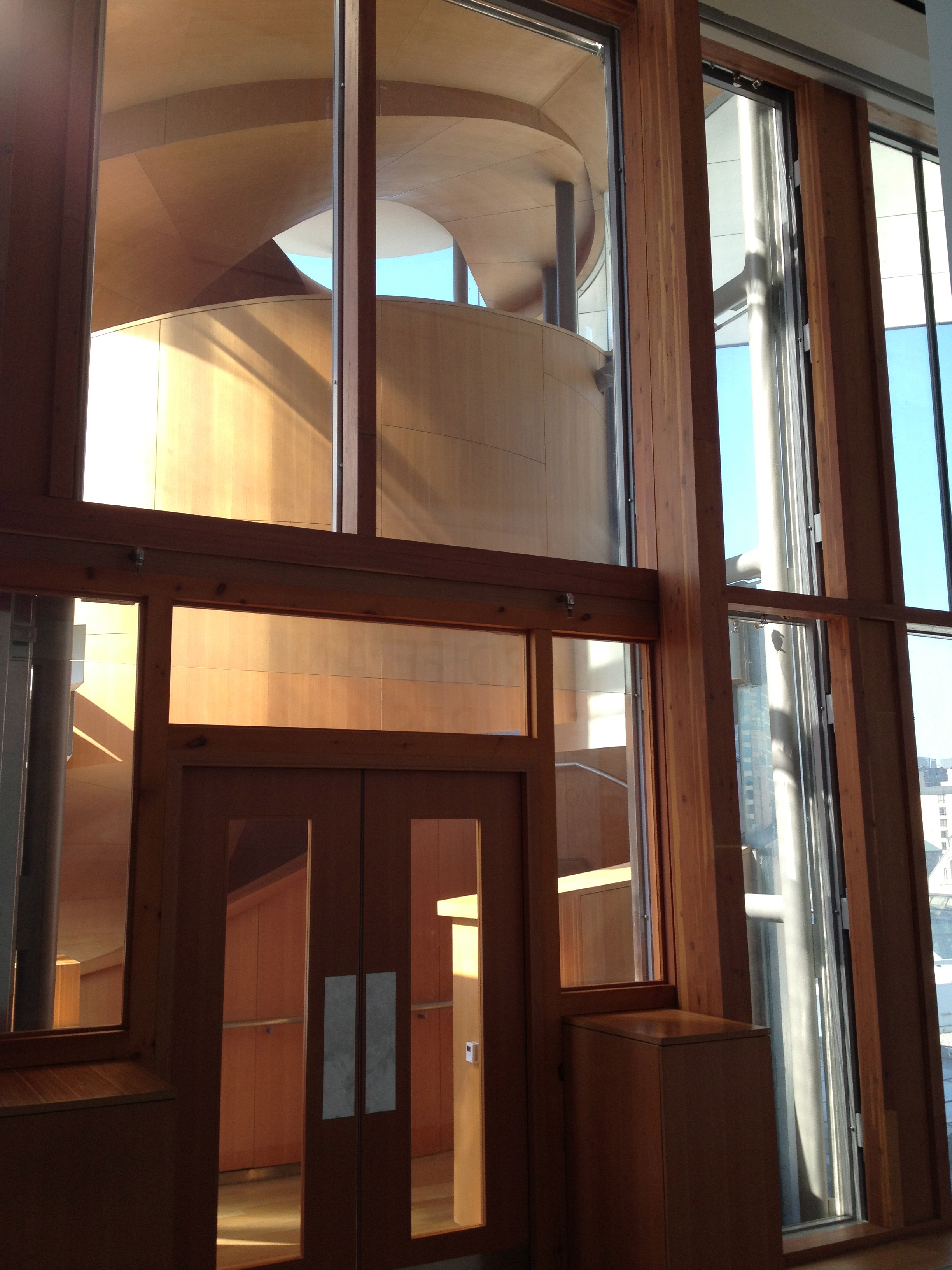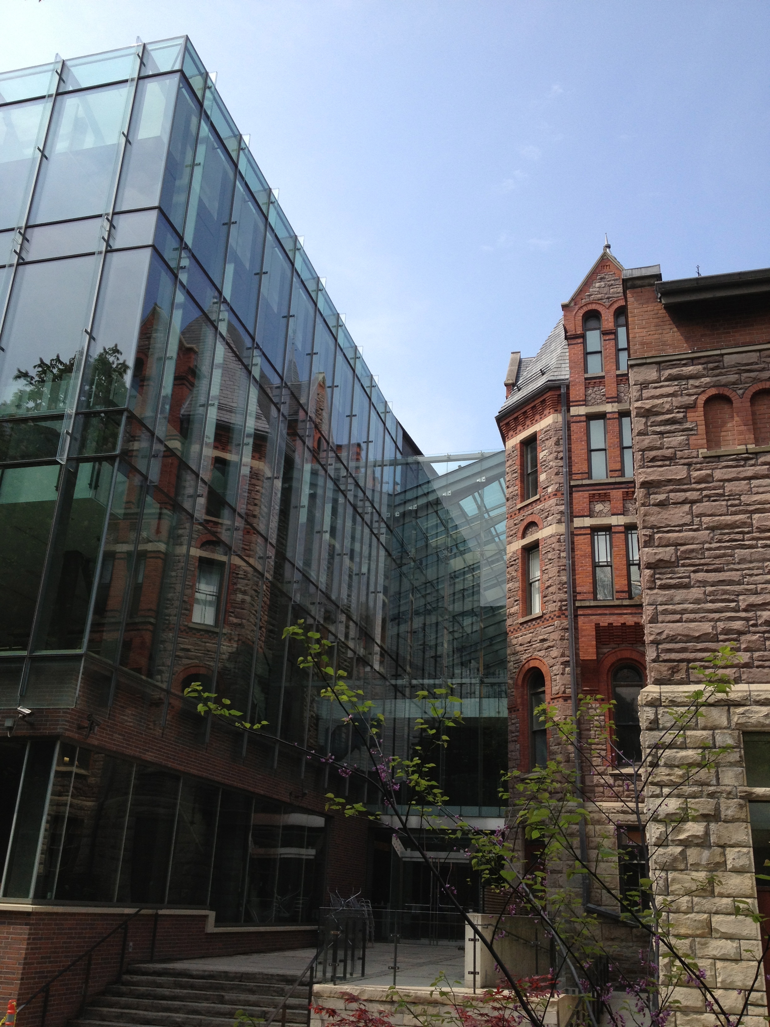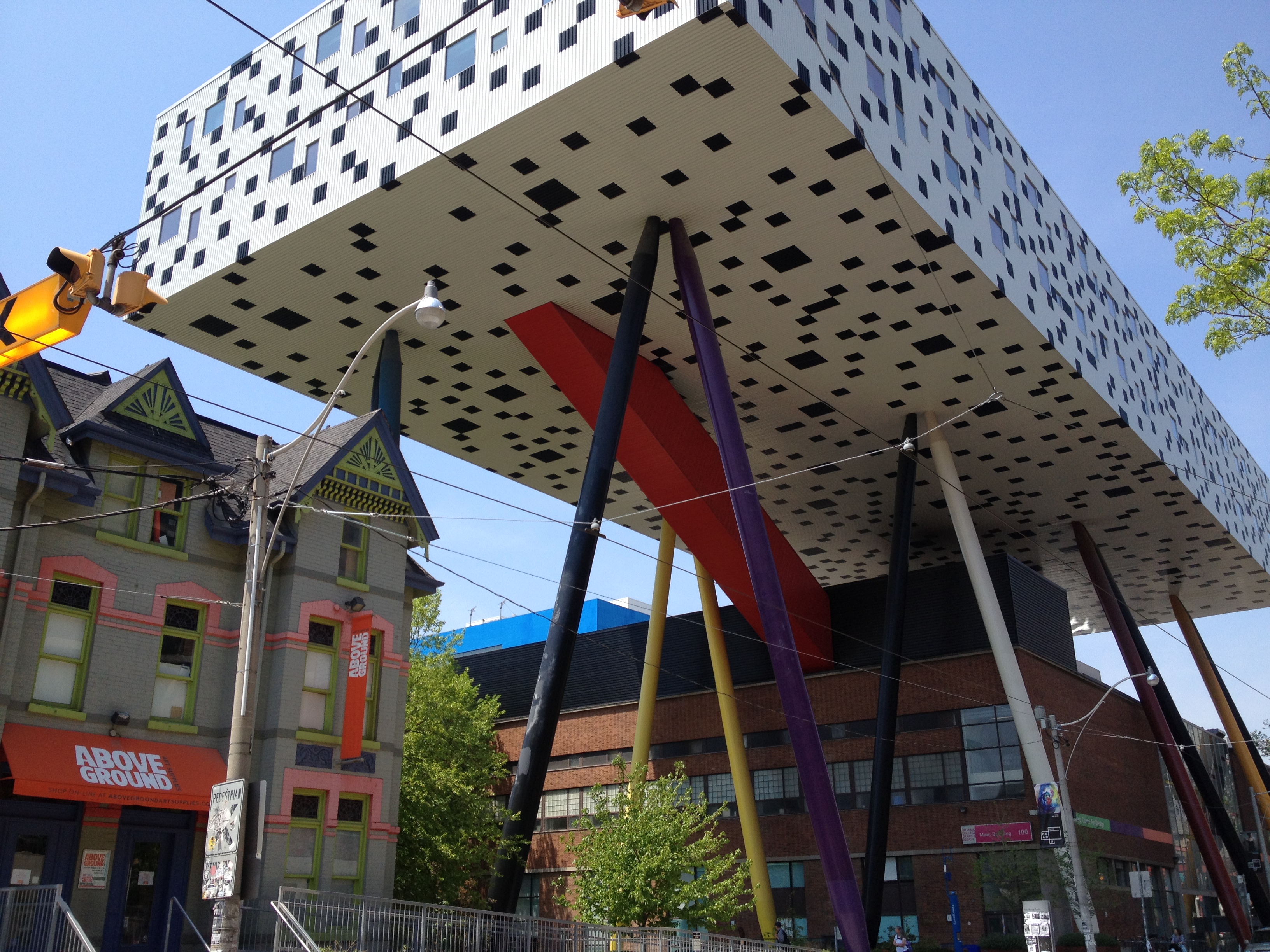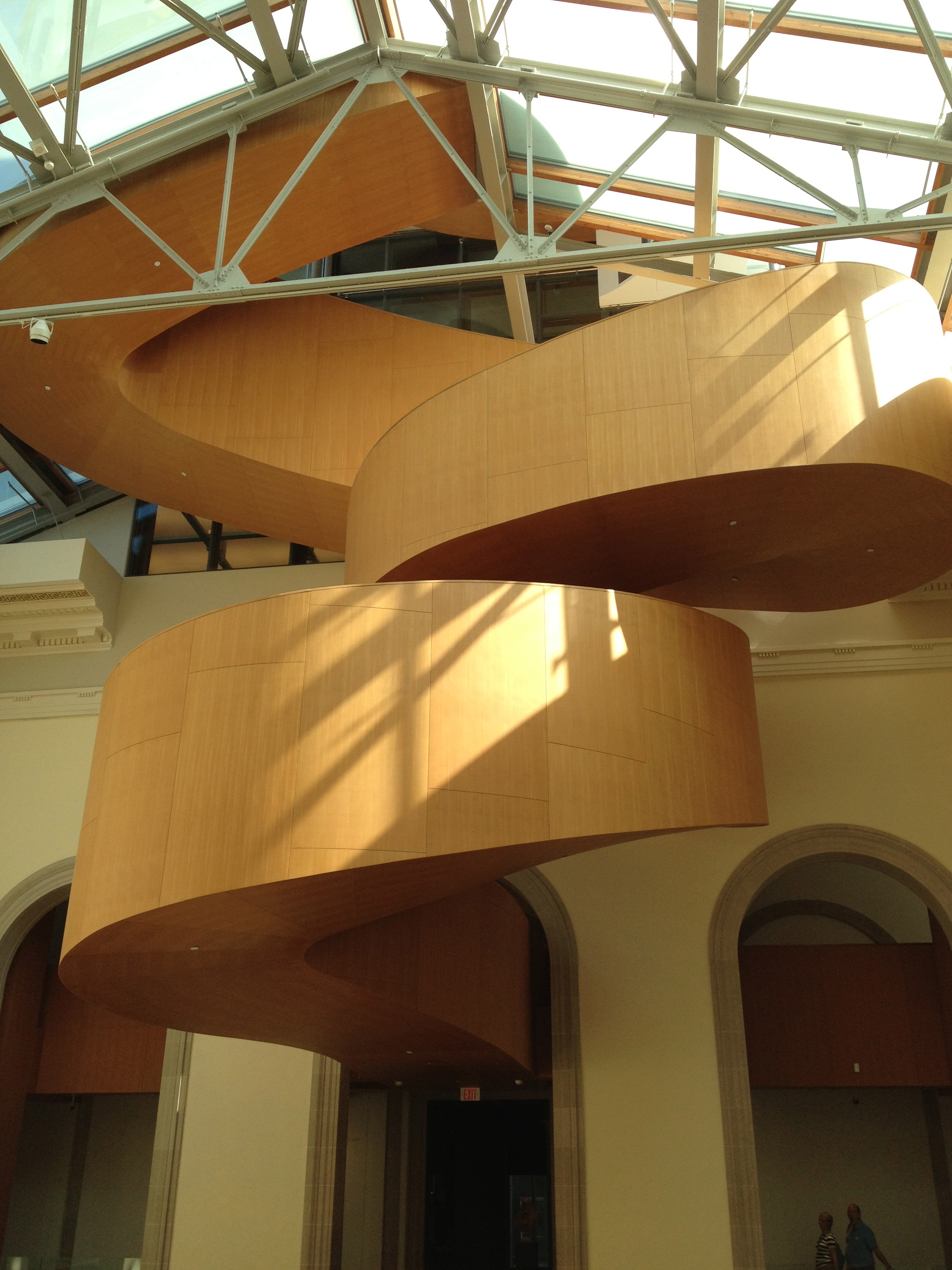A l’arrière du bâtiment un escalier monumental en colimaçon, tout de bois, tel un serpent qui s’entortille, incrusté dans l’ancienne façade avant de sortir en extérieur. Woah, la vue vers la ville, surplombant Grange Park, vers le cube sur pilotis de OCAD est superbe; je suis fascinée par cette architecture mais aussi par les collections que je prends le temps de parcourir.
