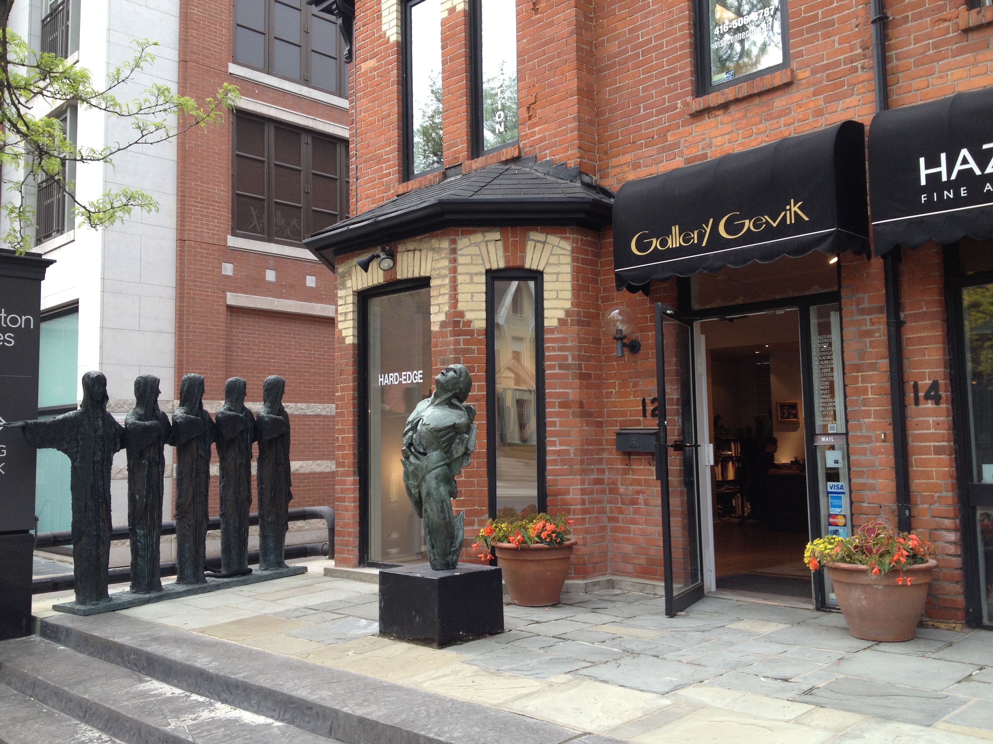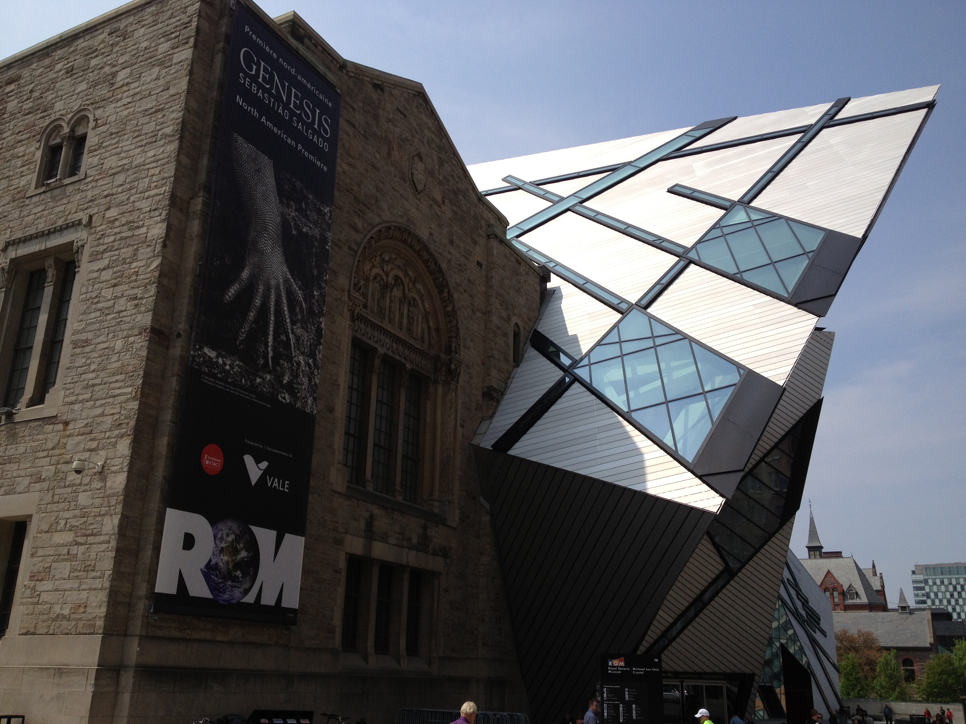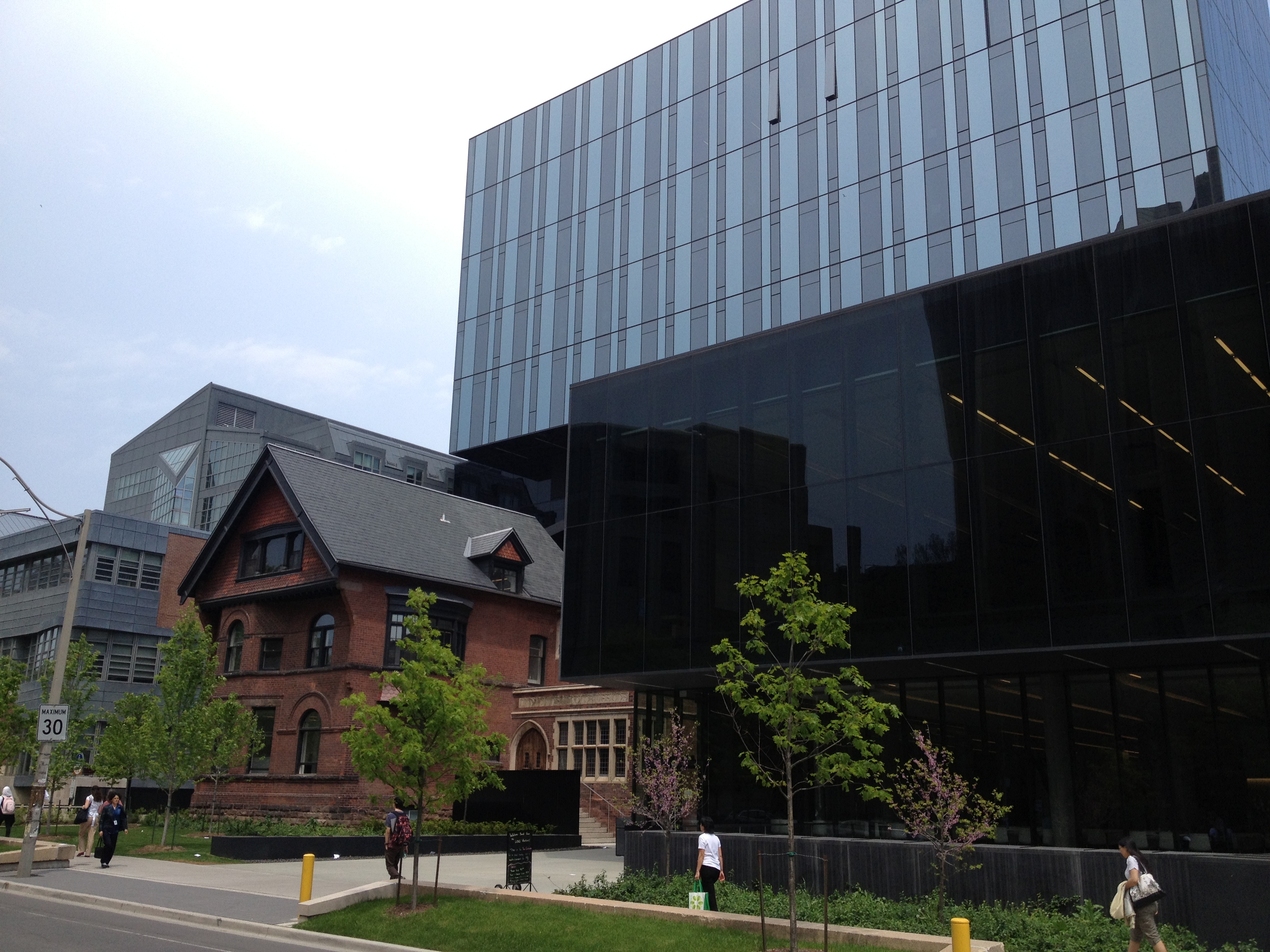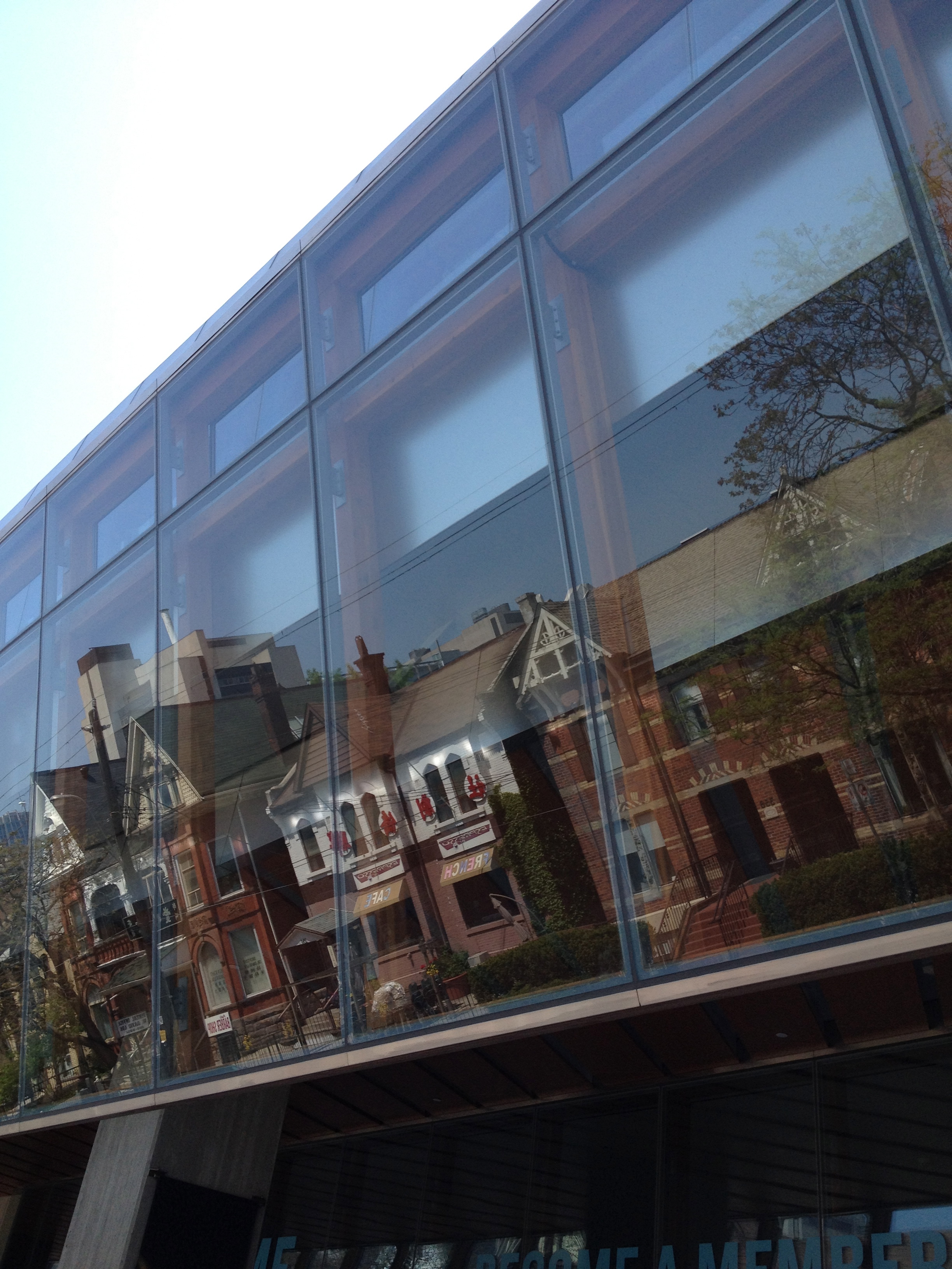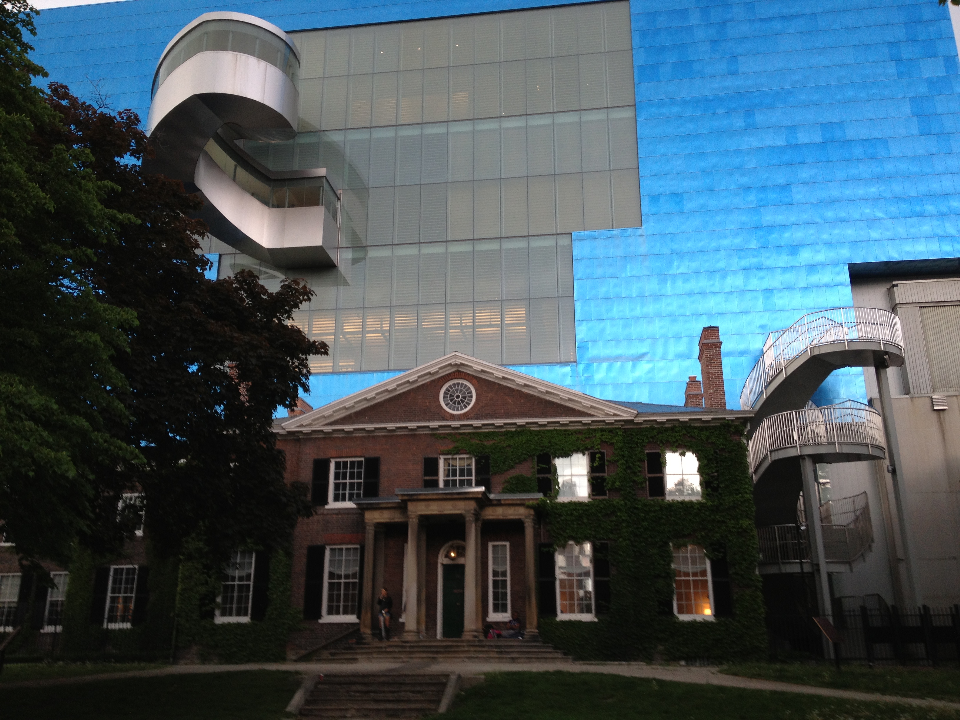 Sorel Etrog est lui un sculpteur très présent dans la ville; originaire d’une famille juive de Roumanie, il installe son atelier dans une ancienne fabrique d’habits à Toronto en 1963 et une dizaine de ses œuvres garnissent les espaces publics. J’aurais aimé avoir plus de temps pour m’intéresser à d’autres salles mais l’heure me pousse à renoncer. Je termine toutefois par la Grange, là où tout a commencé pour l’AGO; la maison familiale d’un ancien maire et membre du Parlement où artistes et intellectuels se sont réunis durant de nombreuses années. Sa veuve a légué la maison au début des années 1900 à ce qui est devenu la Art Gallery of Ontario; c’est la plus ancienne maison de briques de la ville. Depuis le parc Grange, cette demeure semble entourée d’un ciel bleu géant, la façade du Musée moderne.