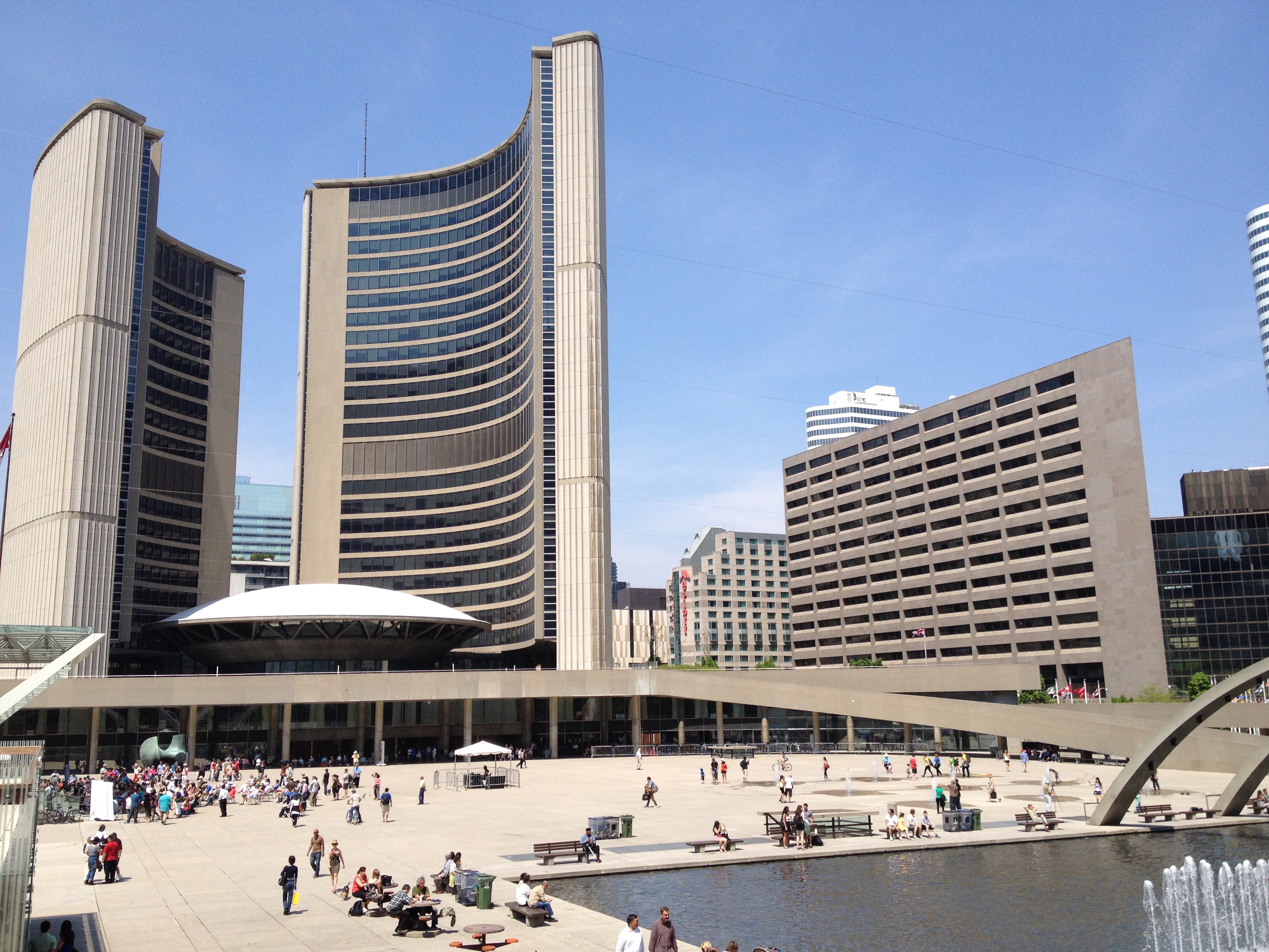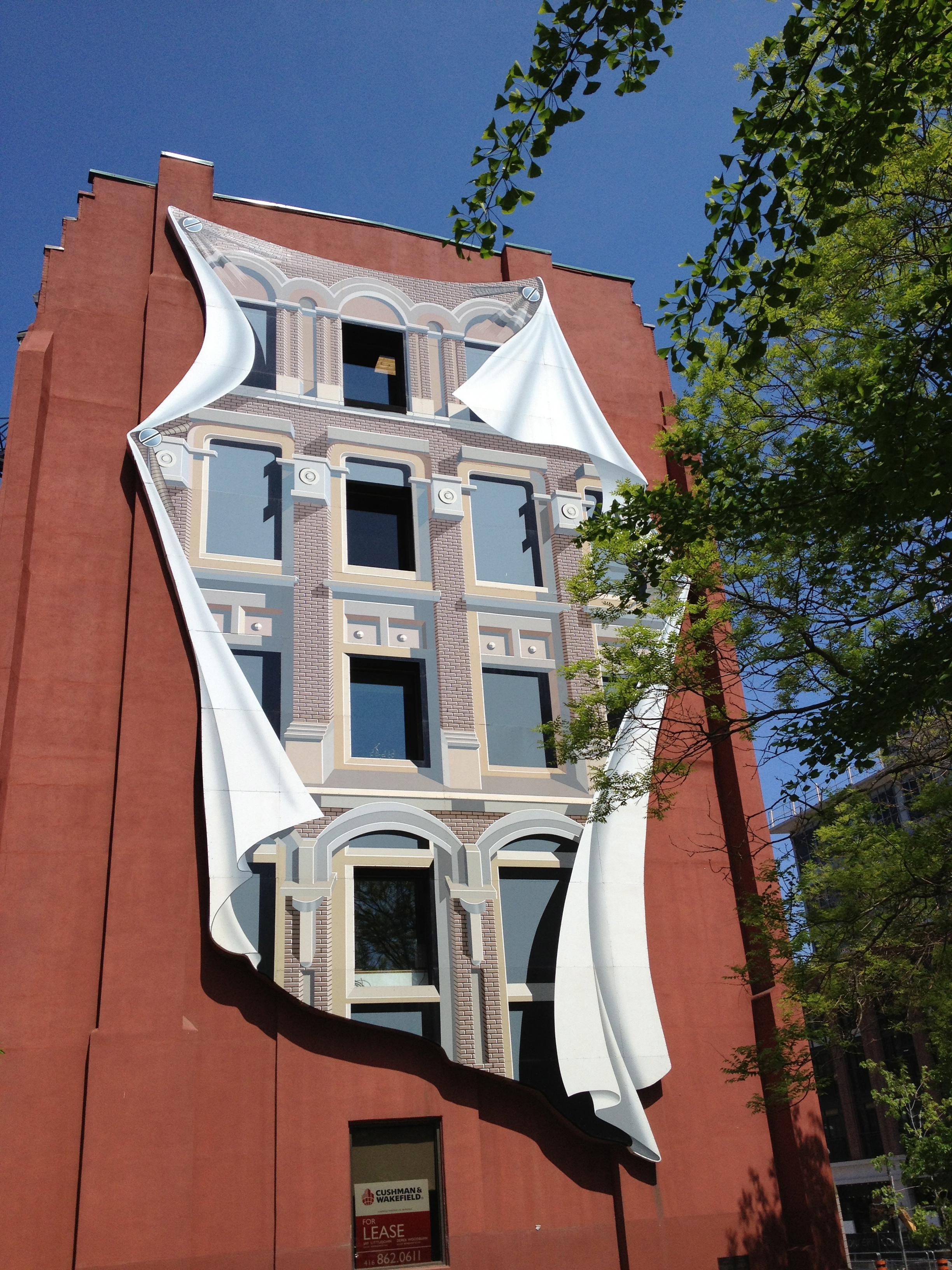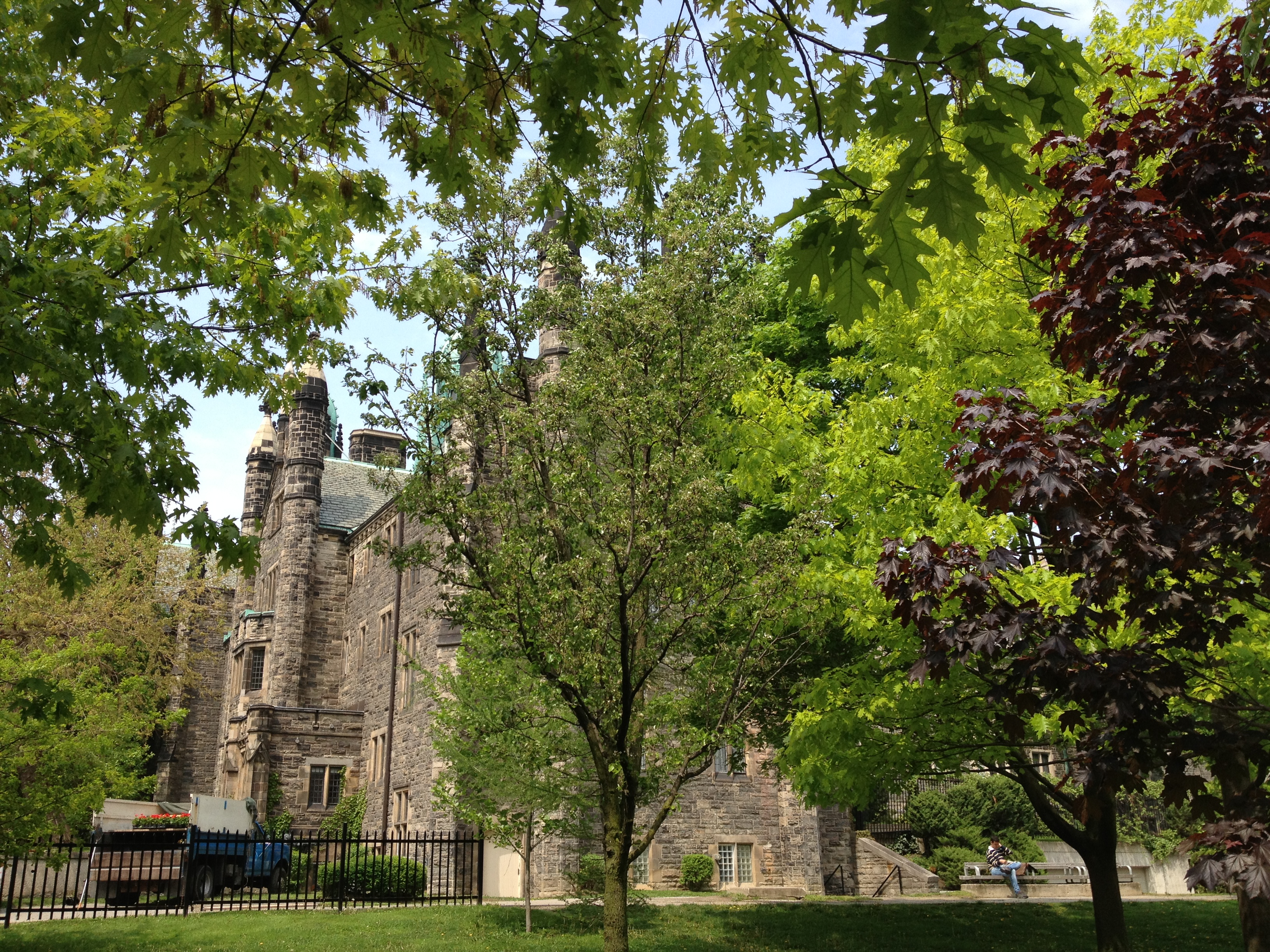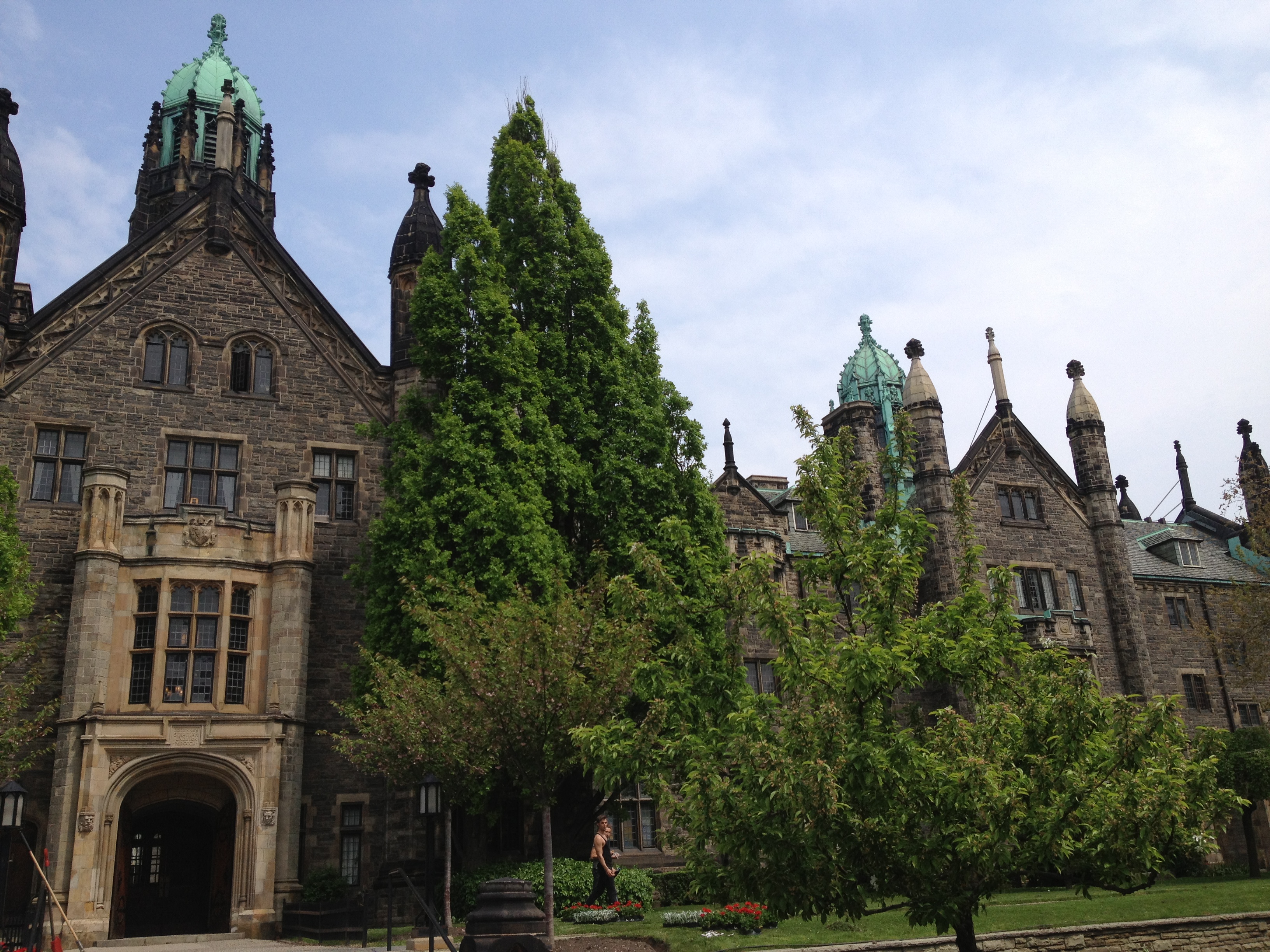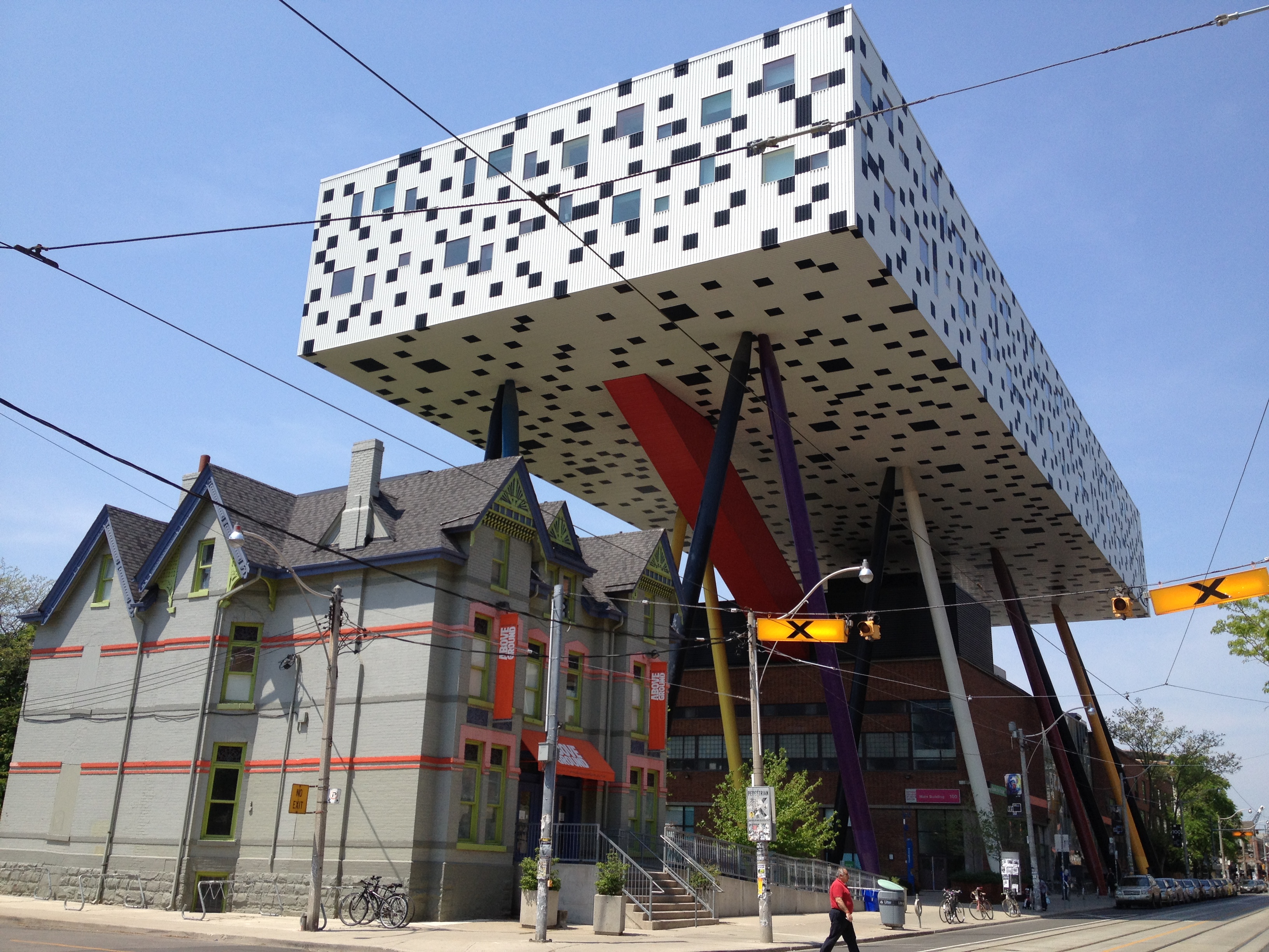 Sorel Etrog est lui un sculpteur très présent dans la ville; originaire d’une famille juive de Roumanie, il installe son atelier dans une ancienne fabrique d’habits à Toronto en 1963 et une dizaine de ses œuvres garnissent les espaces publics. J’aurais aimé avoir plus de temps pour m’intéresser à d’autres salles mais l’heure me pousse à renoncer. Je termine toutefois par la Grange, là où tout a commencé pour l’AGO; la maison familiale d’un ancien maire et membre du Parlement où artistes et intellectuels se sont réunis durant de nombreuses années. Sa veuve a légué la maison au début des années 1900 à ce qui est devenu la Art Gallery of Ontario; c’est la plus ancienne maison de briques de la ville. Depuis le parc Grange, cette demeure semble entourée d’un ciel bleu géant, la façade du Musée moderne.