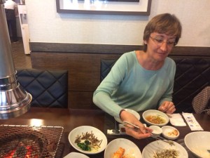 Angelica nous a été également d’un excellent conseil pour les restaurants. A l’heure du lunch (où nous sommes toujours les premiers avec nos montres suisses ;-), nous dégustons au MM450, un assortiment de ceviche. Ce régal est une spécialité des côtes pacifiques; du poisson cru, coupé en cubes, marinés dans beaucoup de citrons, avec des avocats, des fruits, des feuilles de coriandre et autres épices savoureuses … miam miam. Le soir ce sera au Mito que nous mangerons une cuisine également chilienne (mélange de cuisine espagnole et mapuche, des populations natives), avec une purée de pommes-de-terre et maïs, agrémentée de morceaux de tomates, d’oignons et d’épices formant un lit pour un délicieux poisson grillé.